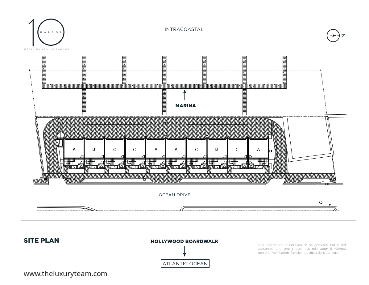 Each and every unit at 10 Harbor luxury residences opts to maximize its space. Every one features three full bathrooms in addition to a powder room for guests.Oversized private terraces allow for entertainment and even cooking outside overlooking beautiful marine vistas. Every outdoor space comes with a private hot tub. Floor to ceiling impact resistant glass windows and doors line each unit allowing for plenty of natural light, energy efficient heating and cooling, and beautiful panoramic views. Every kitchen is fitted with high-end gas ranges and wood cabinetry by Mia Cucina. Imported stone finished countertops add a nice complementary look. Every unit is pre-wired for high speed internet access and smart home technology.In addition to the beautiful interior design of each and every unit, 10 Harbor boats a sleek and modern exterior befitting of the surrounding natural landscape. Every community member may enjoy a private boat slip, private elevator entry, and a private 2 car covered garage. The intimate community of just 10 units provides for unique opportunities to get to know your neighbors and enjoy a small town feel in the budding city of Hollywood.Conveniently located just 10 minutes south of Fort Lauderdale and 10 minutes north of Miami, a residence at 10 Harbor puts you right in the middles of the best dining, entertainment, nightlife, and culture in South Florida. Just steps from Hollywood’s iconic boardwalk, 10 Harbor provides direct access to this one-of-a-kind oceanfront promenade. Hollywood is also home to the Yellowgreen Farmers Market each weekend, where people from all over South Florida flock to take in fresh farm-to-table produce. If you’re on the move, 10 Harbor is just a 10 minute drive from Fort Lauderdale International Airport. Don’t miss out on this opportunity to live or invest in the growing and vibrant Hollywood community!