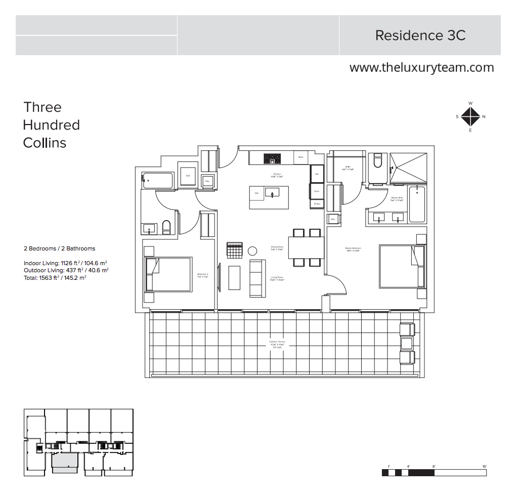 A 24 hour doorman will greet you and your guests and ensure your safety, after valet staff sees that your vehicle is parked securely for the evening. The concierge will see to all your reservations, entertainment or dining needs whether you head out on the town, enjoy lite snacks on the beach, cocktails after a dip in the 70ft private pool, or need a fresh towel after using the state of the art fitness center.When you finally head to your new home you will enjoy wide open, column free living spaces complimented by high ceilings, floor to ceiling impact glass windows, hardwood oak floors, a custom kitchen with Miele appliances and marble finished bath with Hansgrohe & Vola fixtures. South facing terraces will provide the best views and allow you to enjoy the South Florida weather every day. When you do find yourself entertaining inside a state of the art audio and video system will make your house the place to be. Townhouse residents will enjoy impressive 18ft ceilings, 1500 sq ft yard and a fully functioning outdoor kitchen. Penthouses will feature 9’-10’ ceilings throughout.When you live in Miami Beach the local atmosphere is as much an amenity as any features your builder can provide, and by living at 300 Collins you will find yourself perfectly situated to enjoy the best Miami Beach has to offer. Located near the famous Fountainbleau, surrounded by fabulous beaches and steps from a wide array of high end boutiques, local artist’s own galleries and fine dining provided by some of the world’s most famous chefs means every day will provide a different opportunity to explore and enjoy the Miami Beach spirit.Travel throughout the local area and abroad will be easy and near hassle free thanks to close proximity to area highways, including 1-95 & US1, Miami International Airport and Amtrak stations. Although once you spend a few days at 300 Collins it is doubtful you will ever want to leave.