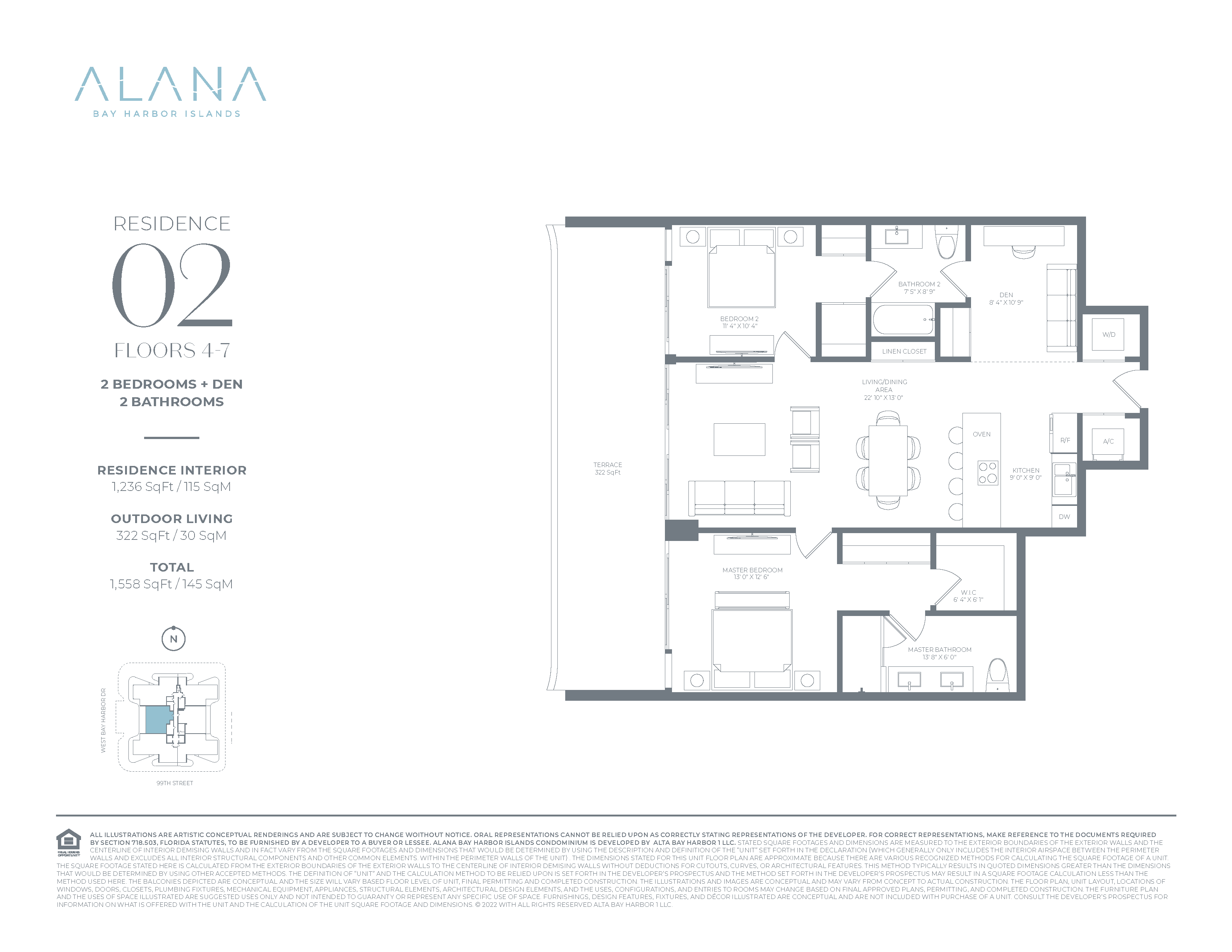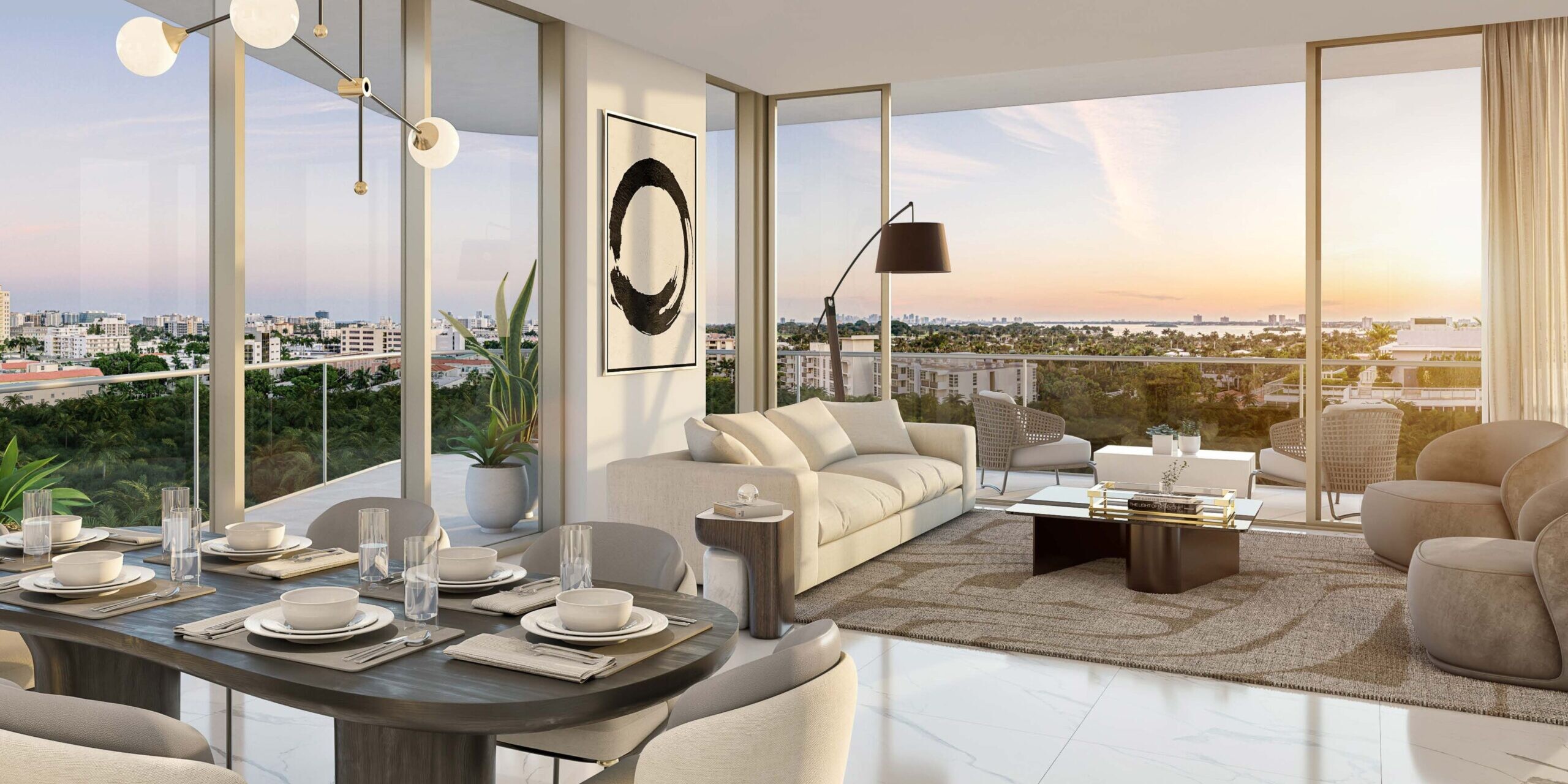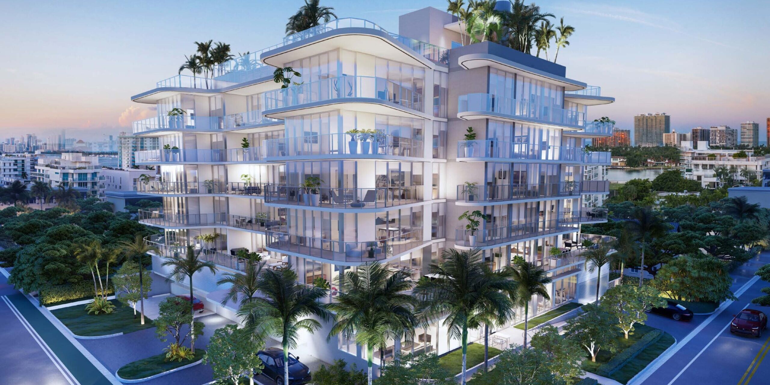 Alana Bay Harbor Islands stands as a beacon of refined island living, seamlessly blending luxury with the serene ambiance of its natural lush and green wetland surroundings. Nestled within the Bay Harbor Islands, this exclusive residential enclave features just 30 boutique residences in an upscale, off-the-beaten path location known only to locals and insiders. Crafted with meticulous attention to detail, Alana exudes modern elegance and timeless charm, making it the epitome of coastal living in South Florida.Alana Bay Harbor takes its inspiration from classic Miami Art Deco design, providing a classic, yet modern luxury living experience. Models come in two and three bedroom models ranging from 1,229 to 1,662 square feet. At just seven stories high, Alana Bay Harbor has all of the elegance and opulence of Miami high rise living in a smaller boutique version.Within Alana, residents are treated to an unparalleled living experience characterized by spacious and exquisitely designed residences. Each home boasts expansive terraces that capture breathtaking views of the bay and the city skyline, while the interiors are bathed in natural light and adorned with premium finishes. Italian kitchens with quartz countertops, Bosch appliances, and floor-to-ceiling windows create an atmosphere of contemporary luxury, where every detail is meticulously curated to enhance the living experience. All residences come with a parking space, electric vehicle charging stations on site, bicycle racks, and plenty of storage for your kayaks, paddleboards, etc.