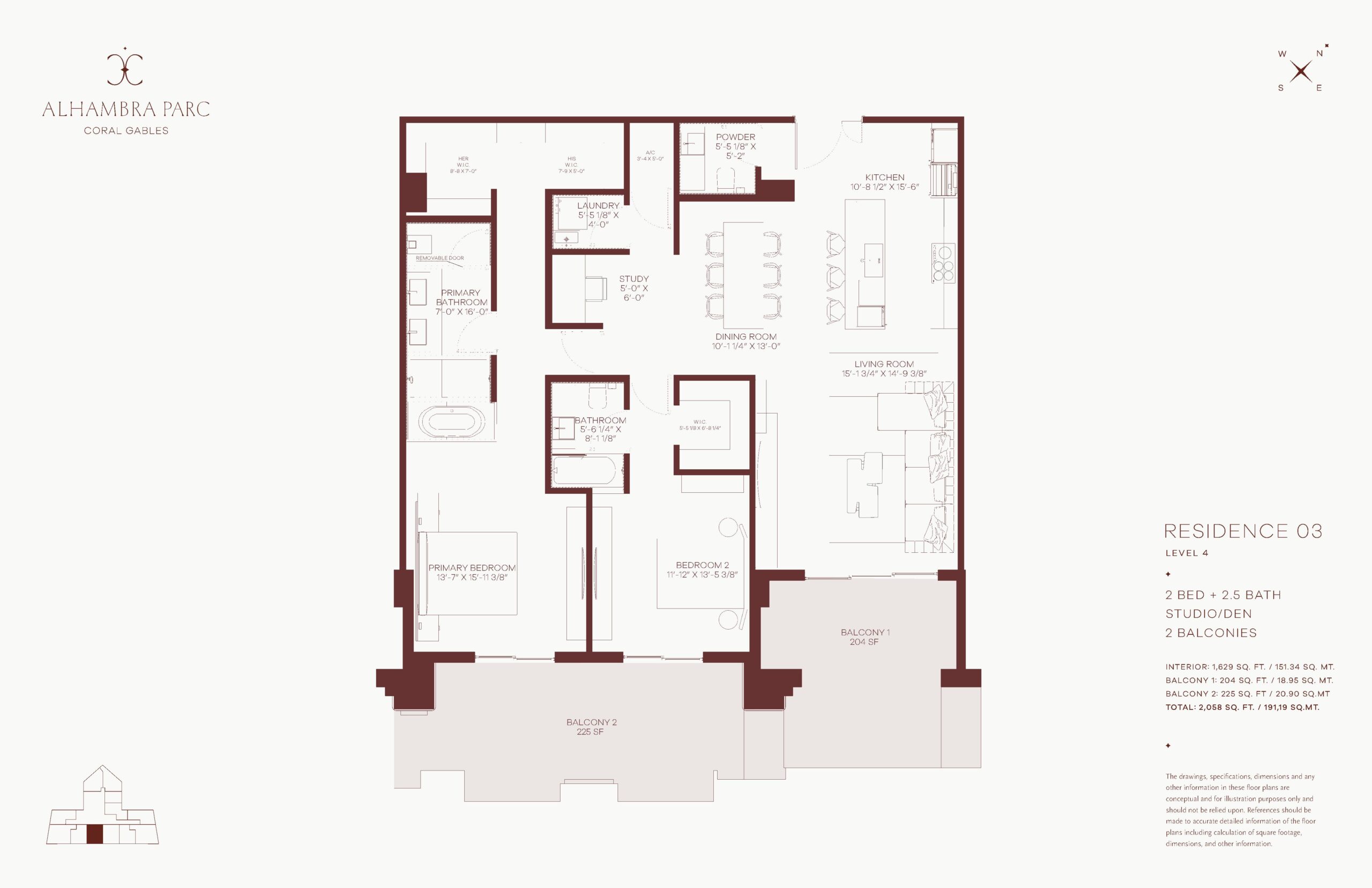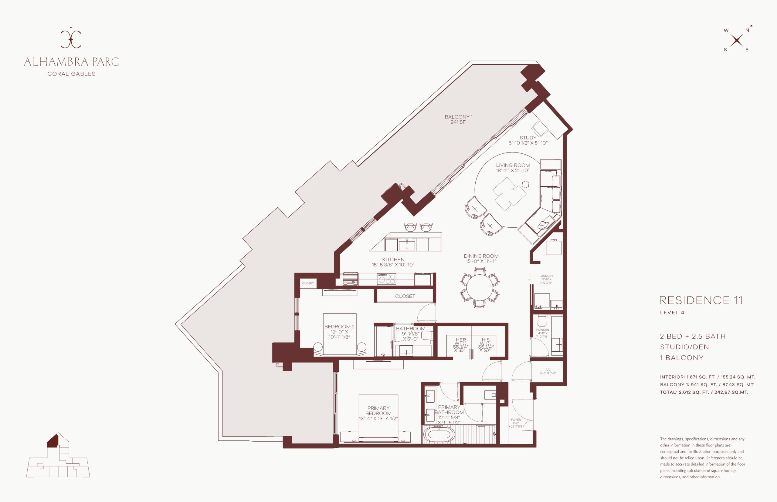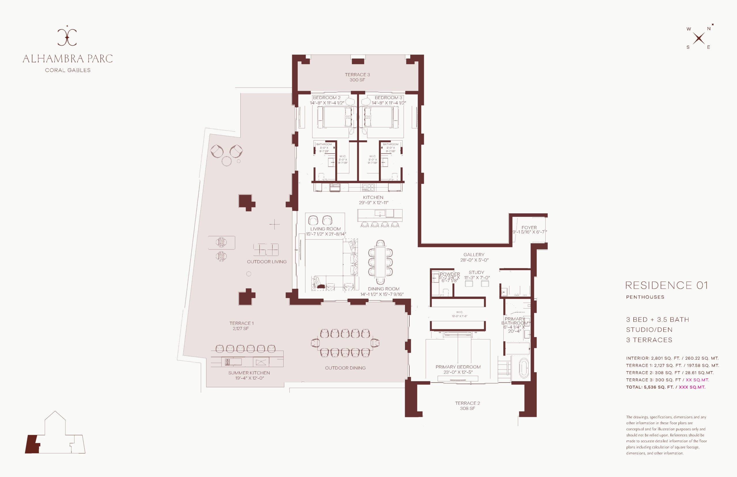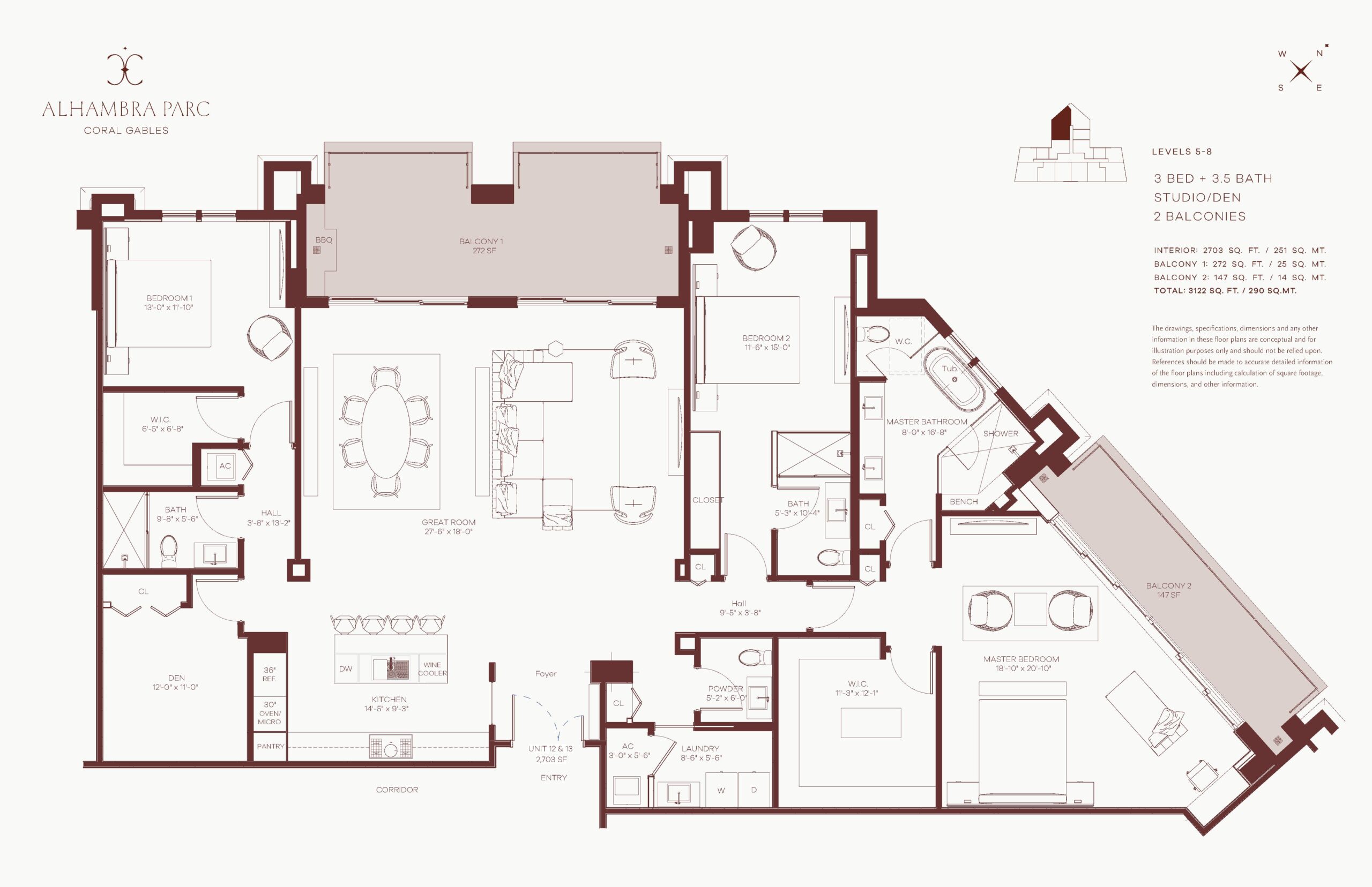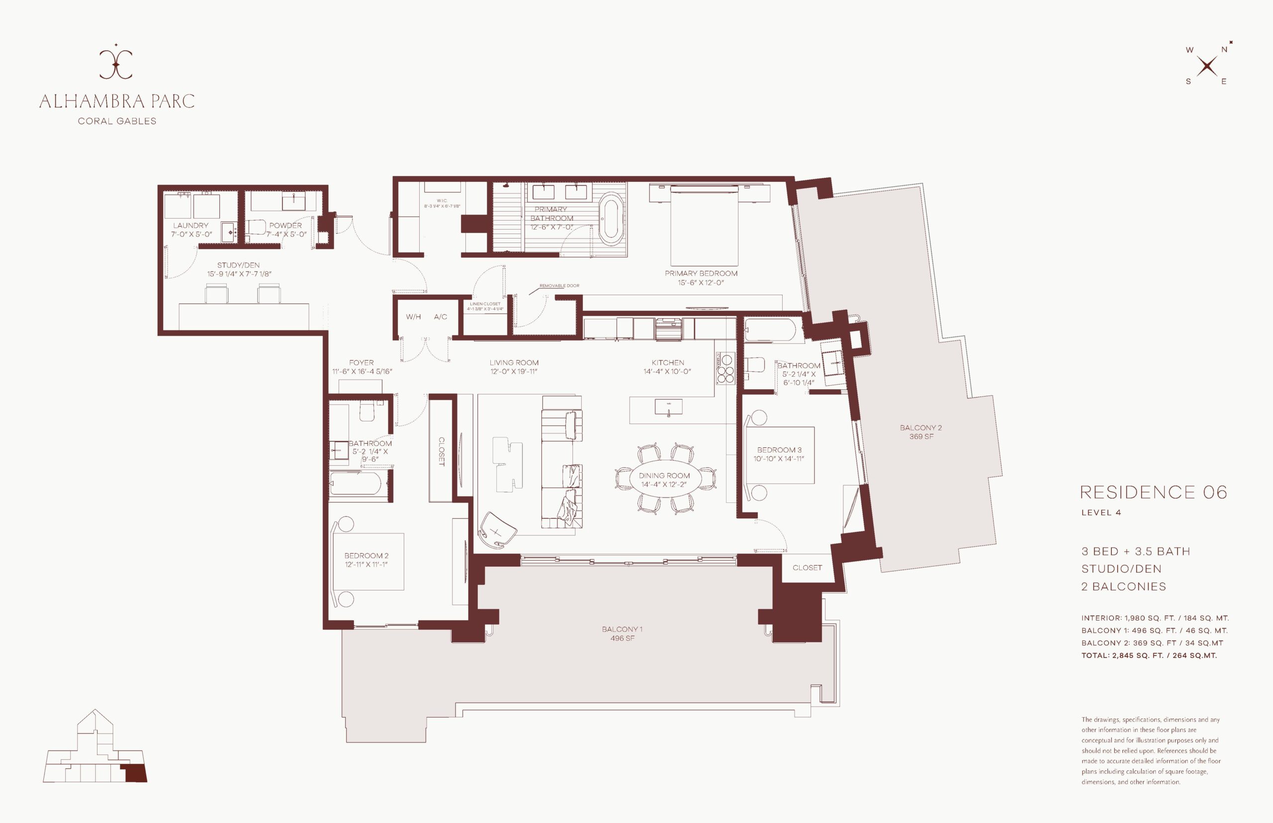 Amenities at Alhambra Parc are distributed across three levels and centered around an elevated residential experience. The atrium serves as a welcoming focal point, featuring a public park accented by museum quality sculpture and a beautifully designed lobby with staffed reception. Residents enjoy concierge and valet services, secure garage parking with two assigned spaces per residence, package and mail rooms, and twenty four seven security. Social and professional spaces include a private resident library with lounge and bar, a chef’s kitchen with wine wall, and an executive center designed for meetings and business use. Wellness offerings include a state of the art gym with outdoor fitness lawn, dedicated spaces for yoga and pilates, a spa with sauna, steam, and massage rooms, and a tranquil meditation garden. The rooftop completes the lifestyle with a resort style pool, private cabanas, expansive lounges, outdoor dining areas, serene water features, an outdoor cinema, and two summer kitchens.Located in the core of Coral Gables, Alhambra Parc places residents within walking distance of Miracle Mile, Giralda Plaza, and the neighborhood’s renowned dining, shopping, and cultural destinations. Tree lined streets, historic architecture, and nearby landmarks such as the Venetian Pool and Biltmore Hotel define the area’s timeless appeal. With close proximity to Downtown Coral Gables, Coconut Grove, and major business corridors, the location balances residential charm with urban convenience, making Alhambra Parc a compelling address for refined city living.