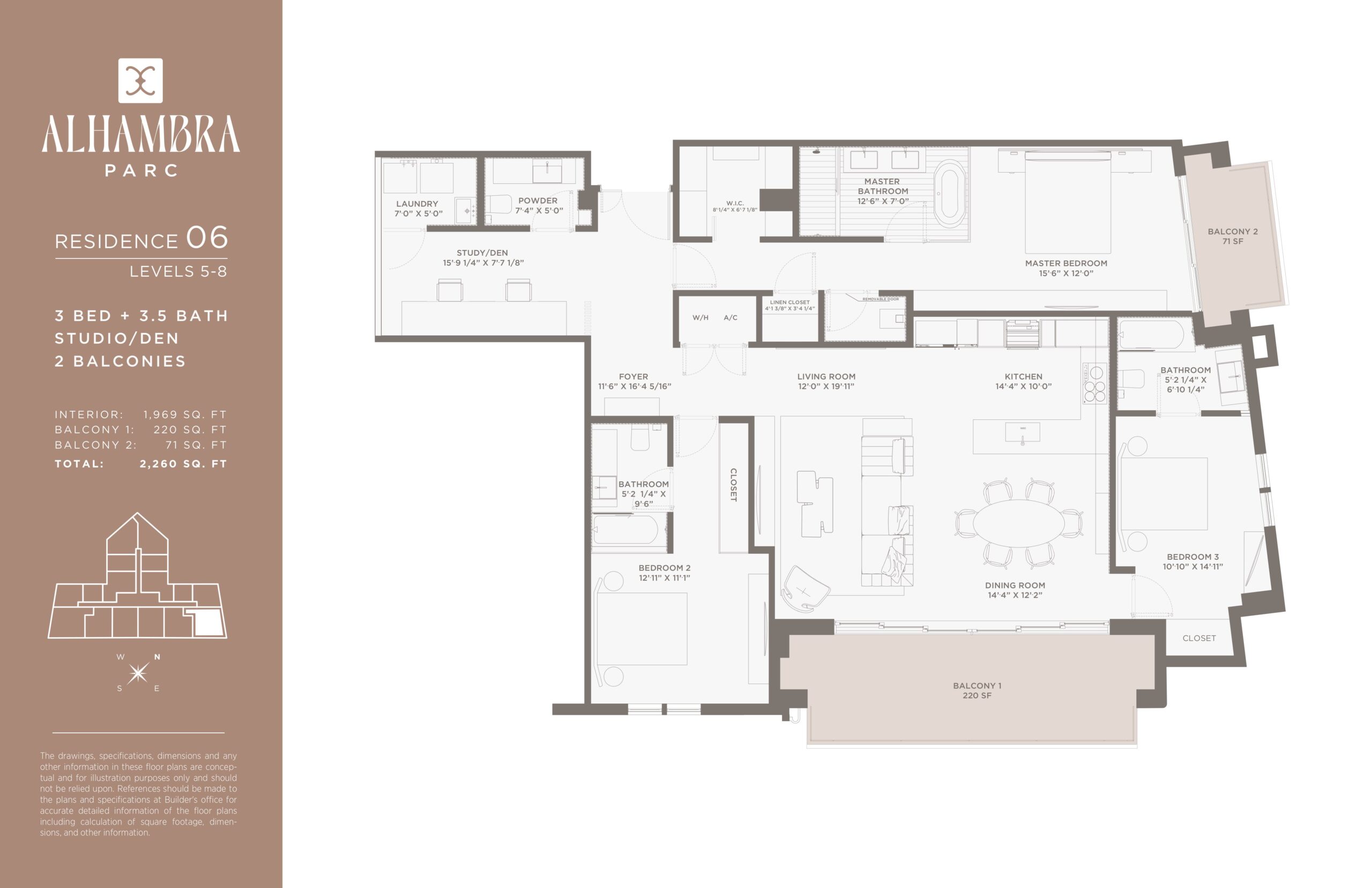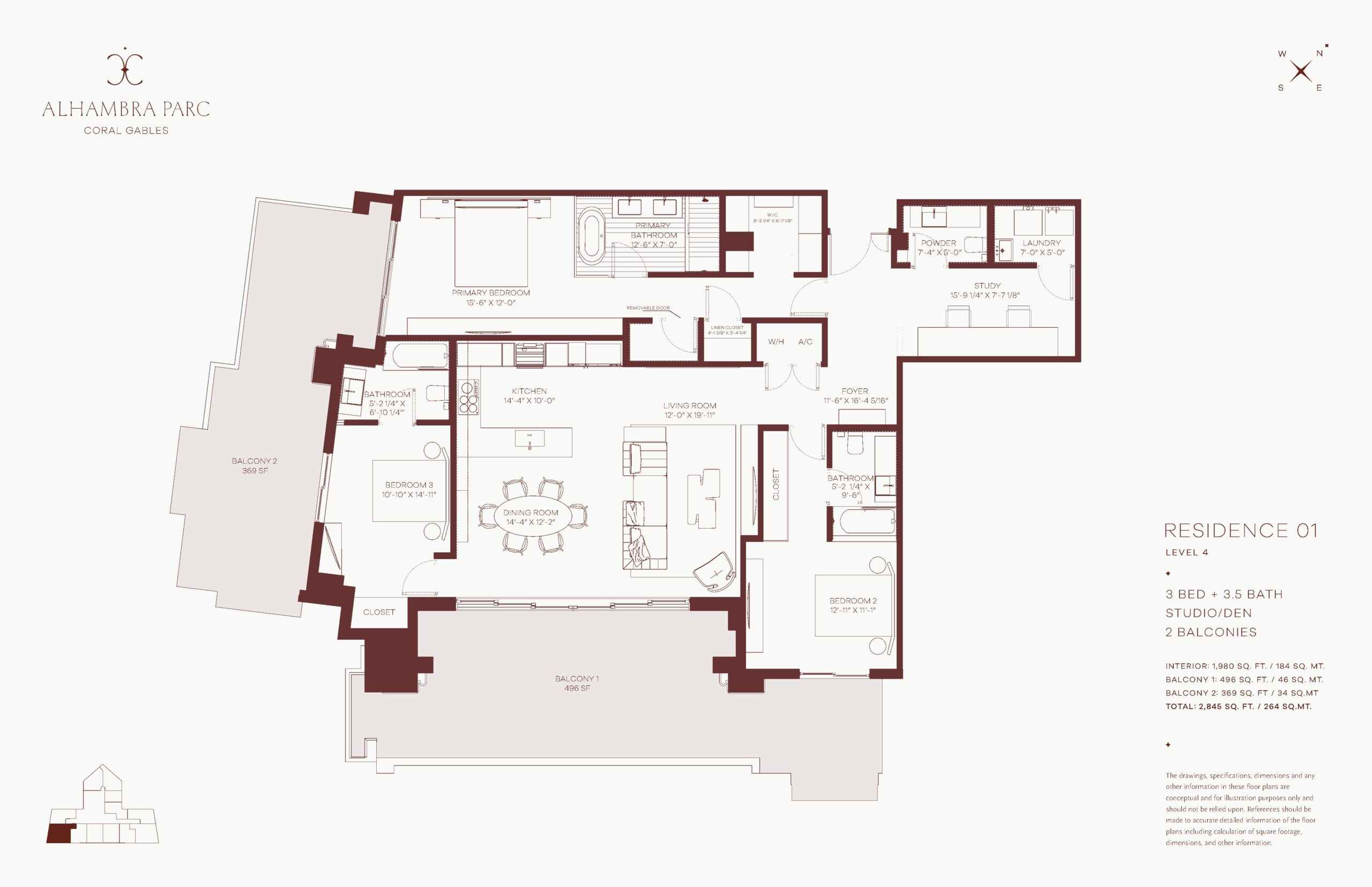 Alhambra Parc is a boutique luxury condominium introducing a refined residential offering in the heart of Coral Gables at 33 Alhambra Circle. The project is composed of just 78 residences across nine levels, creating a private, low density environment designed for elevated city living. Floor plans range from one to three bedroom layouts starting at approximately 845 square feet, with spacious configurations that emphasize north and south exposures for balanced natural light. Generous terraces span from roughly 322 to 1,440 square feet, extending living spaces outdoors and reinforcing the building’s relationship with its surrounding streetscape. Developed by MG Developer and Vertical Developments, Alhambra Parc reflects a carefully curated vision that aligns with the architectural heritage and sophistication of the City Beautiful.Residences at Alhambra Parc are defined by thoughtful layouts and high caliber interior finishes that support both everyday comfort and elegant entertaining. Interiors feature ten foot ceilings, with penthouse residences offering ceilings up to thirteen feet, creating an airy and expansive atmosphere. Italian kitchens are outfitted with quartz countertops and a full Miele appliance suite, blending clean design with professional grade performance. Primary suites are graciously appointed with walk in closets and built in fixtures, while designer bathroom faucets and finishes elevate the private living spaces. Each residence includes a dedicated laundry room with full size washer and dryer, integrated smart home technology, and pre wiring for WiFi and motorized window shades. Flexible layouts allow space for a home office or private den, accommodating modern lifestyle needs.