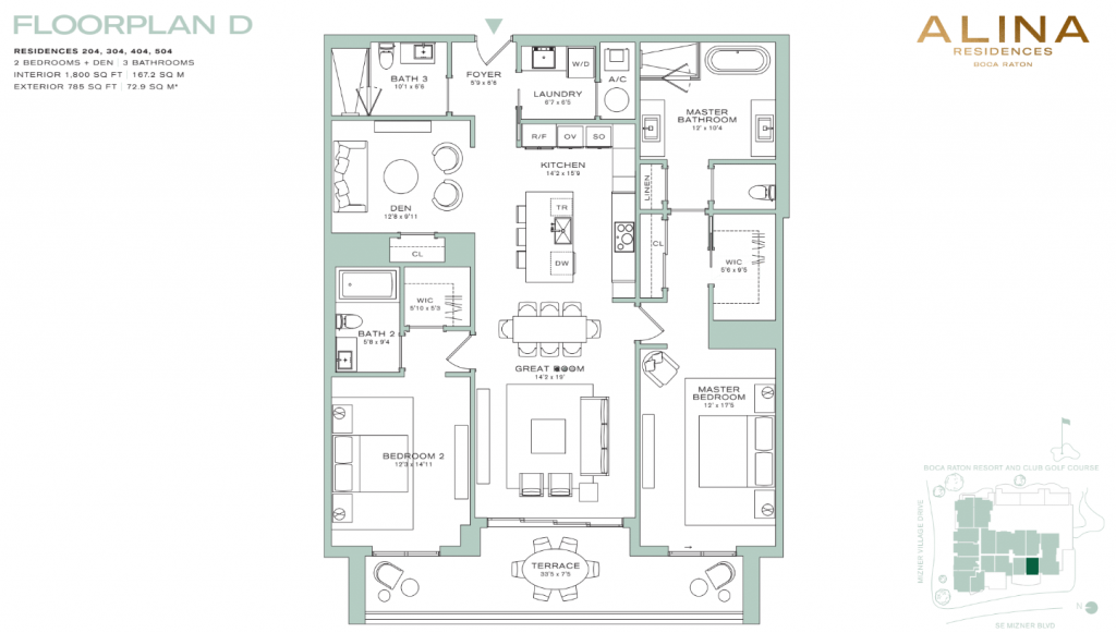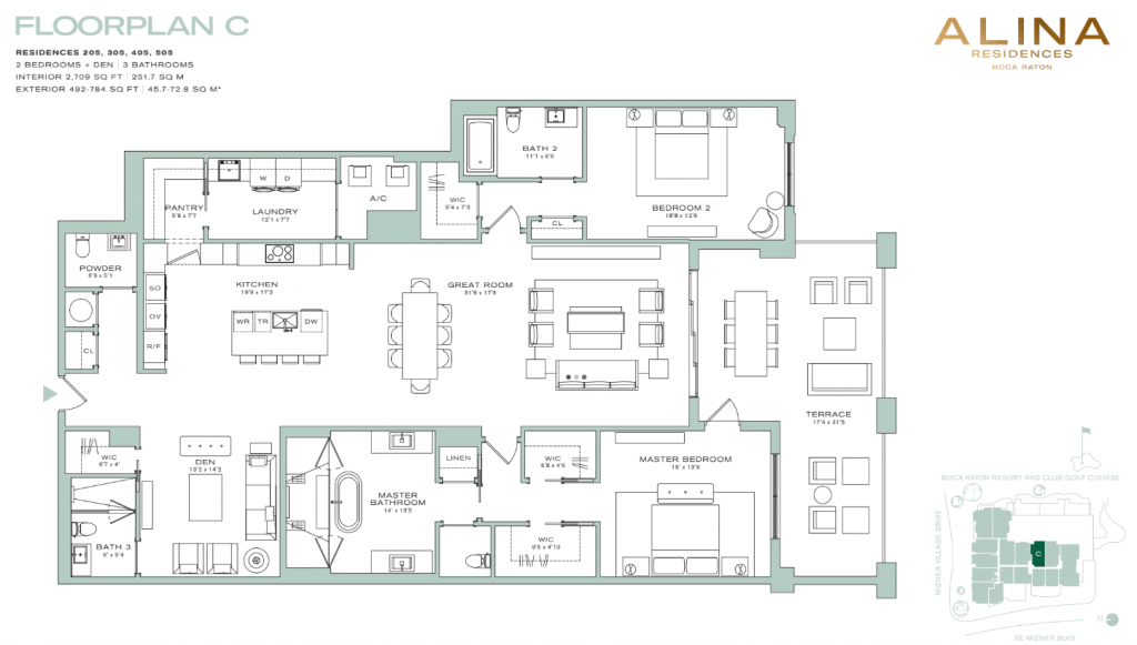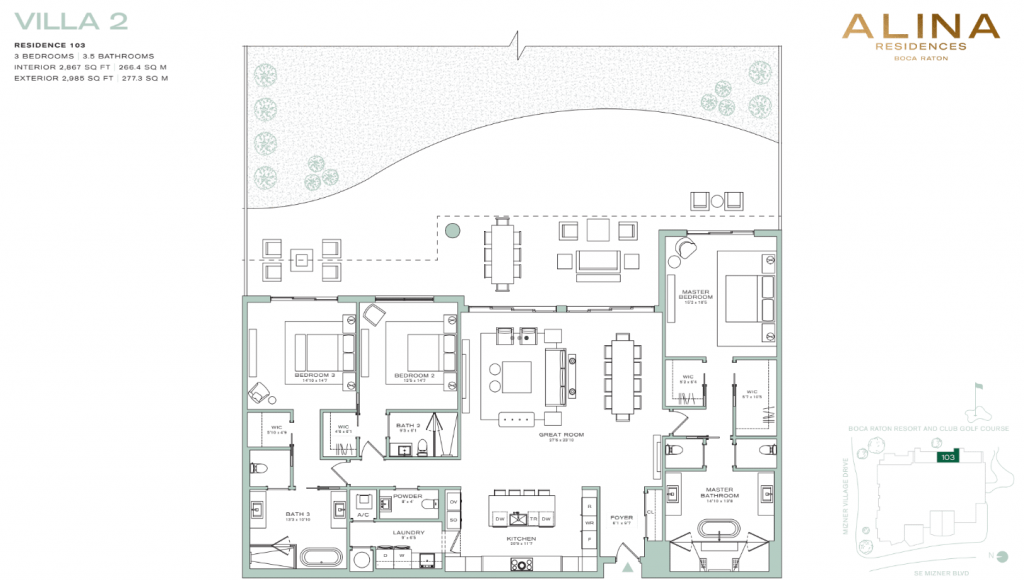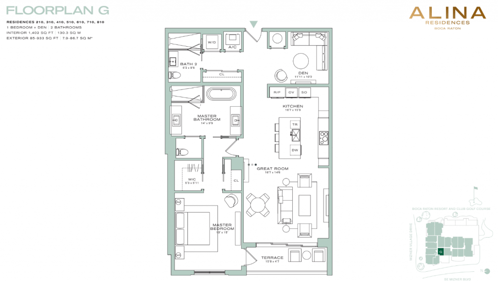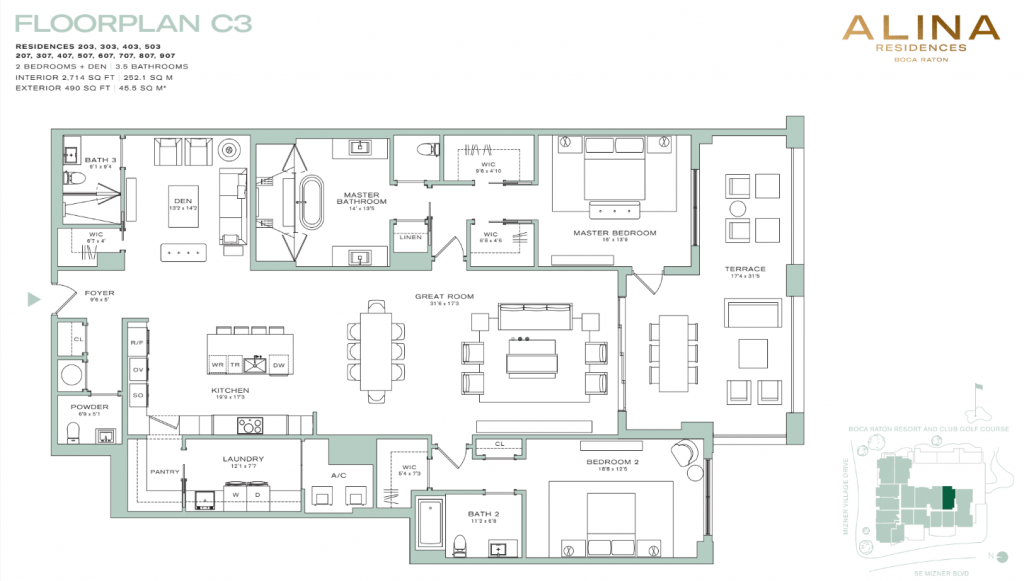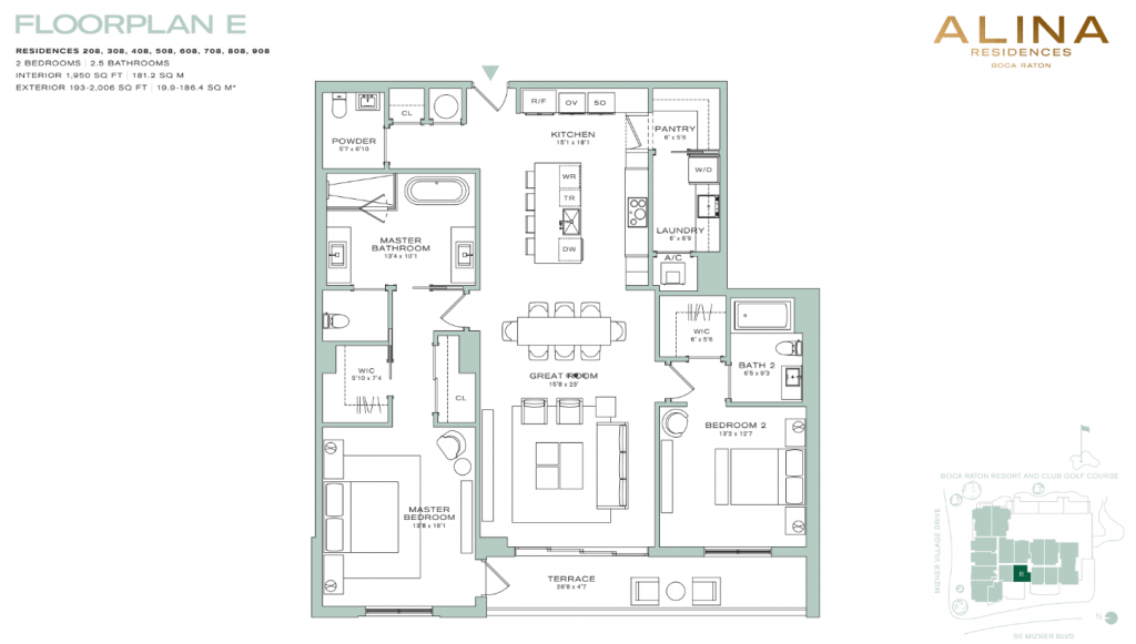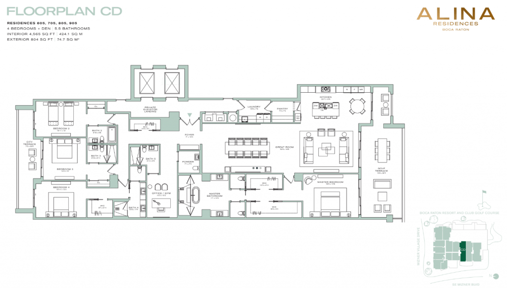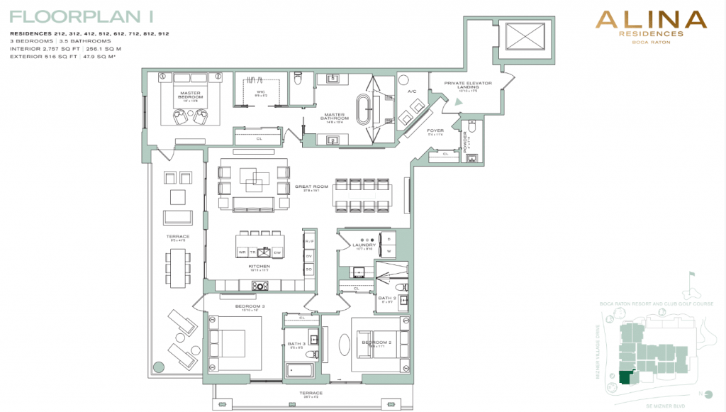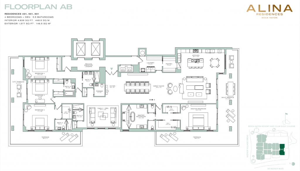 The luxury residences available at Alina in Boca Raton include all of the latest and greatest in design and functionality. All living areas include soaring 11-foot high ceilings in addition to floor-to-ceiling hurricane resistant glass to allow for the most natural light. Kitchens include European-style fixtures with marble countertops and a center island for congregating with friends. Walk out directly to expansive terraces with breathtaking views of the neighboring golf course or Atlantic Ocean. All units include either a private or semi-private elevator access. Master bedrooms include luxurious walk-in closets, and all units come with a plethora of options, including customizable porcelain designer flooring.In addition to the very best in design and amenities in each unit at Alina luxury residences in Boca Raton, all community members may enjoy some of the best upscale living options available in Boca Raton and all of South Florida. Alina includes 32,000 square feet of private outdoor space including dining and lounge areas, cabanas, and more. The sculpture garden is ideal for an outdoor yoga session or meditation. All residents enjoy secure on-site parking in an indoor garage and plenty of storage space for bicycles and other toys. The entire building at Alina luxury residences in Boca Raton is prewired for high speed WiFi and smart building technology.Located directly on Mizner Boulevard, Alina puts you directly in the middle of the action in Boca Raton. Just steps from Mizner Park and Royal Palm Place, you’ll enjoy countless options for dining and entertainment. The Boca Raton Museum of Art is located just around the corner, and of course you’ll be just a few blocks from the beautiful beaches of Boca Raton, rated some of the best in all of South Florida. Additionally, Alina luxury residences in Boca Raton is close to US-1 and I-95, providing direct access to other vibrant neighboring beach communities as well as Fort Lauderdale and Miami International Airports. If you are looking for the most cutting-edge opportunity for luxury living in Boca Raton, look no further than Alina luxury residences.