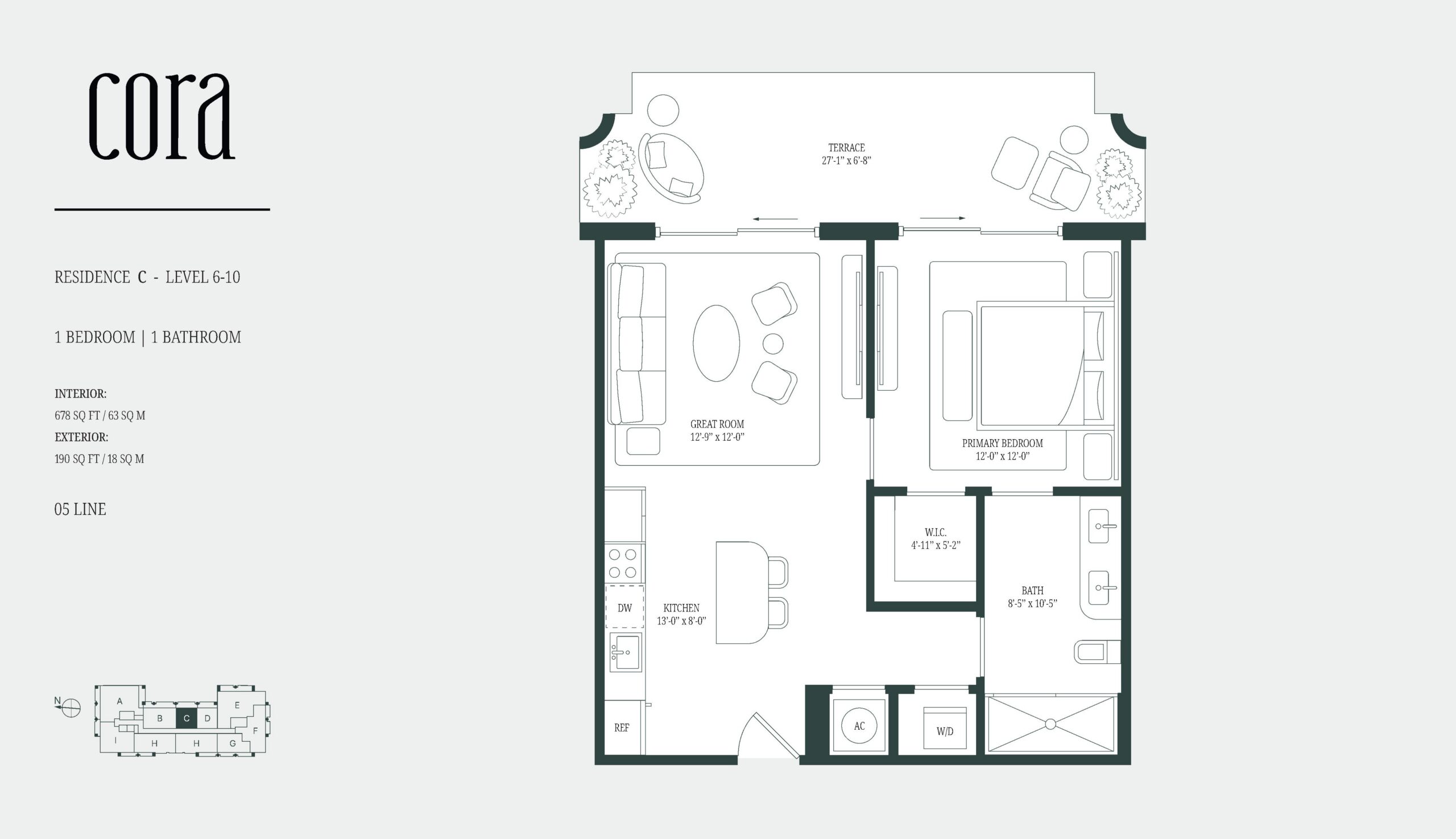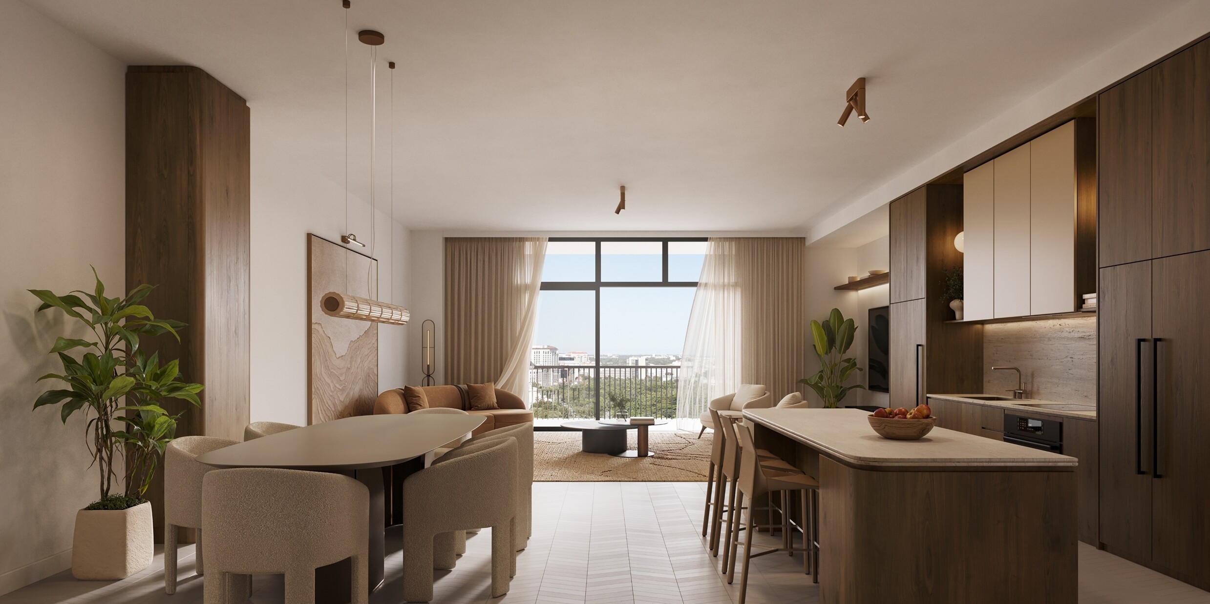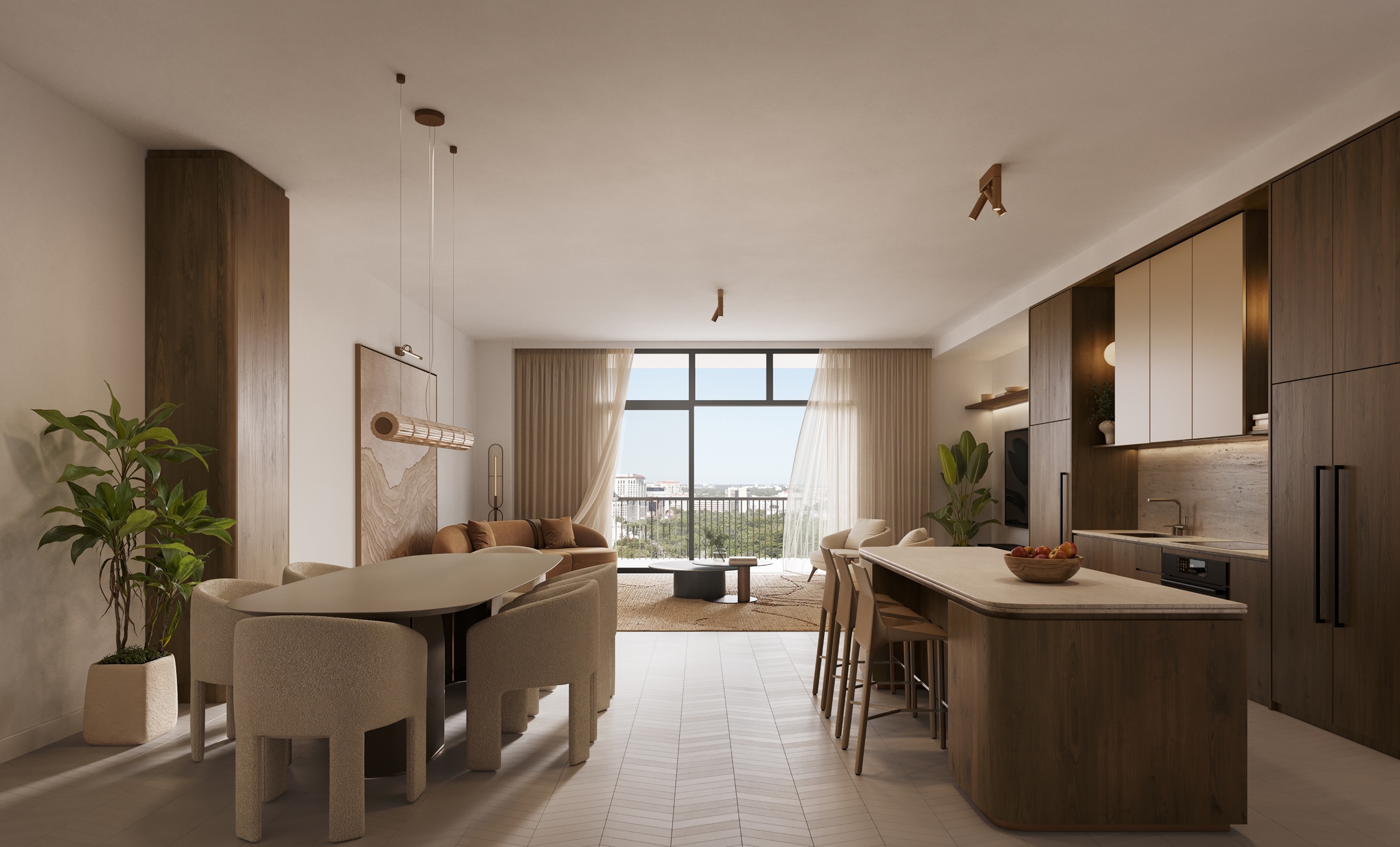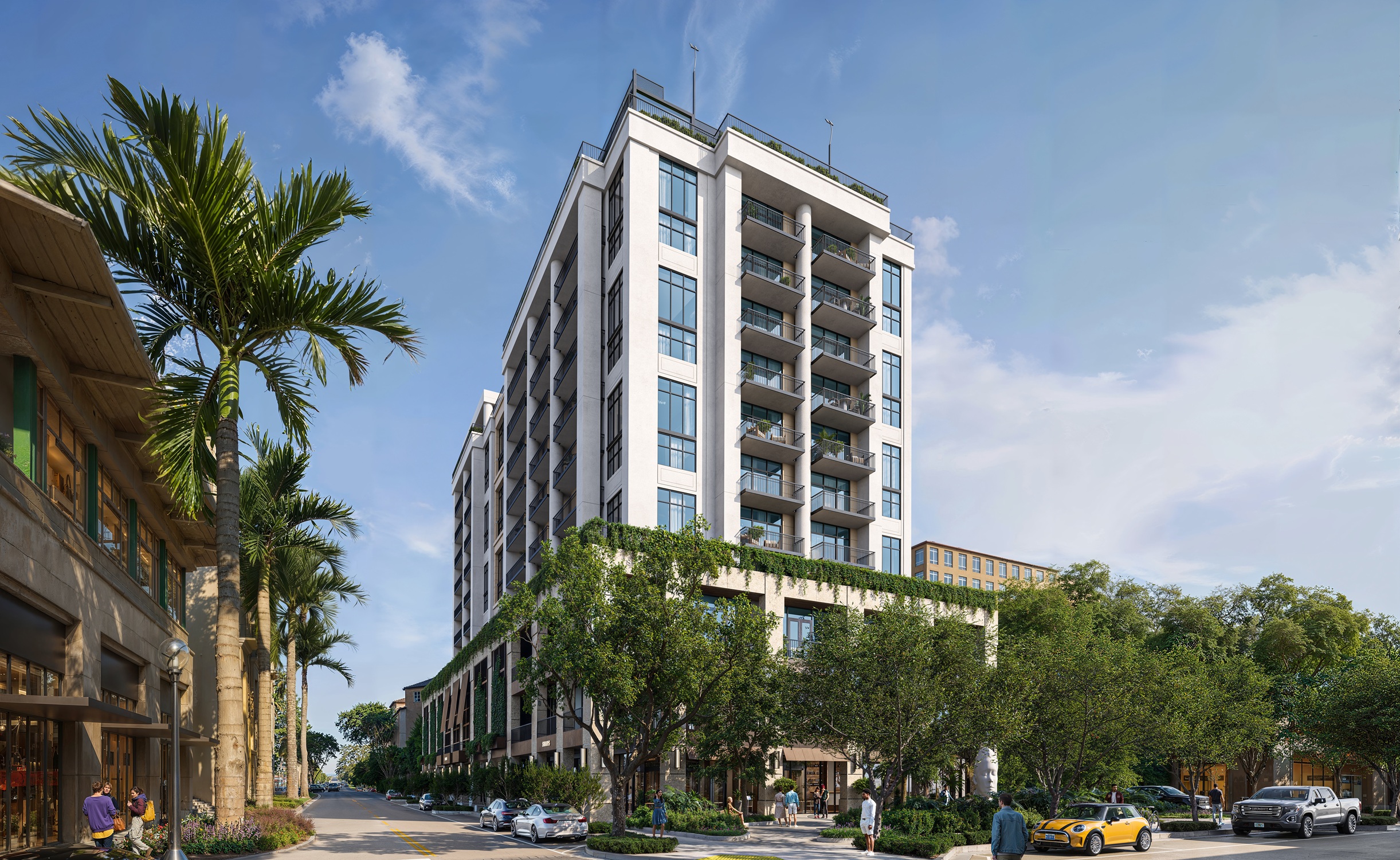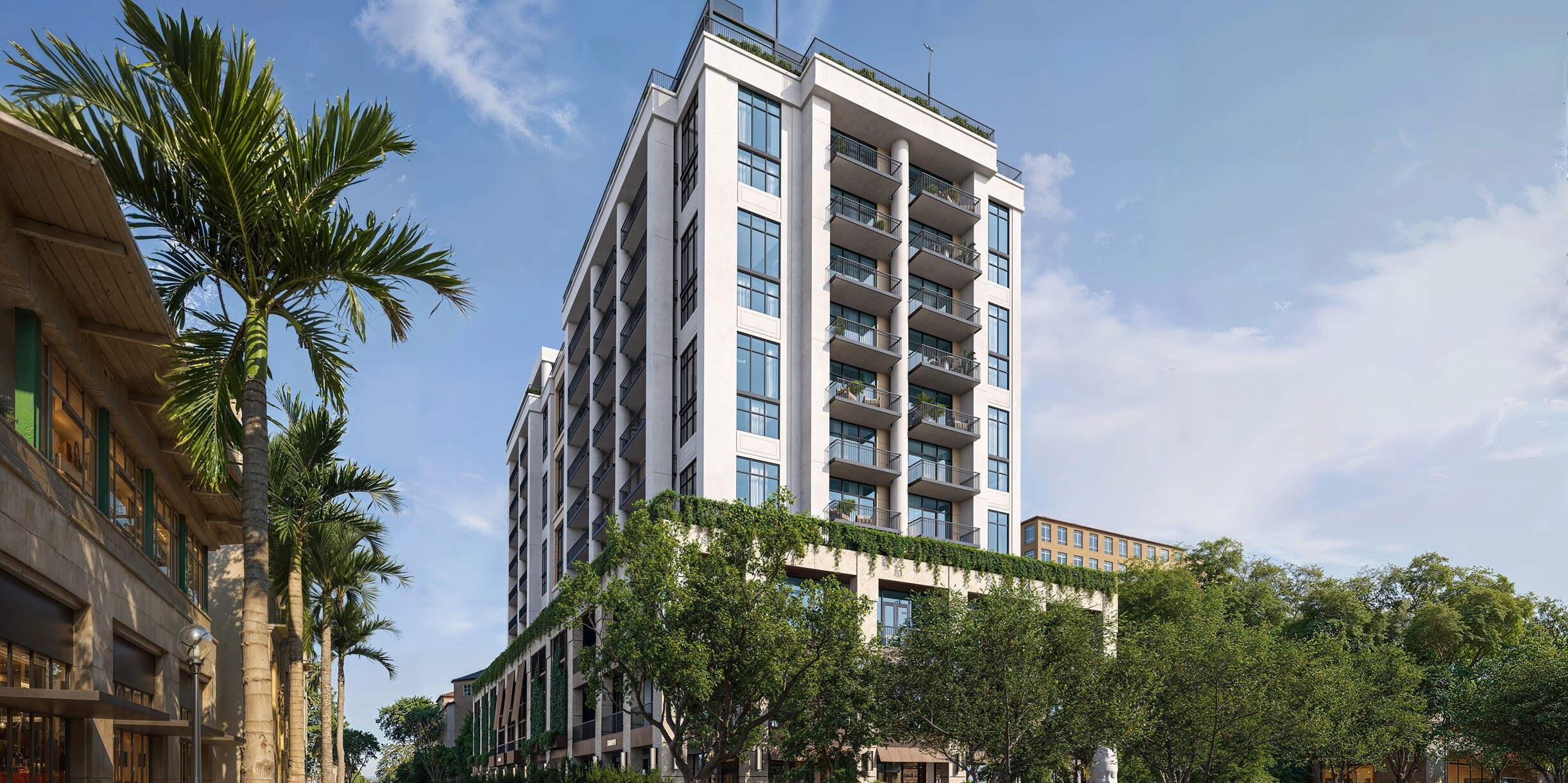 Cora Merrick Park is a boutique condominium bringing a wellness focused residential concept to one of Coral Gables’ most established locations. The building is limited to 74 residences, offering one to three bedroom layouts, including select homes with dens, with interiors generally ranging from the high six hundreds to over 2,600 square feet. Contemporary Mediterranean architecture gives the project a refined presence that fits naturally into its surroundings, while the intimate scale creates a quieter, more private living experience. Located in the heart of Aurora Street, the property is directly connected to the Shops at Merrick Park, placing dining, shopping, and daily essentials within immediate reach. Designed as a WELL Certified building, Cora Merrick Park is positioned for buyers who value comfort, balance, and long term quality of life.The residences are designed with an emphasis on light, proportion, and thoughtful detailing. Approximately ten foot ceilings and floor to ceiling windows allow natural light to shape the interiors throughout the day, while open layouts support modern living and entertaining. Kitchens feature stone countertops, spacious islands, Italian cabinetry, and premium Sub Zero and Wolf appliances. Many homes include expansive private balconies, and select residences offer oversized lanais that extend the living space outdoors. Stone flooring, finished closets, and spa inspired bathrooms complete the interiors, with advanced air and water purification systems reinforcing the building’s wellness-driven design.