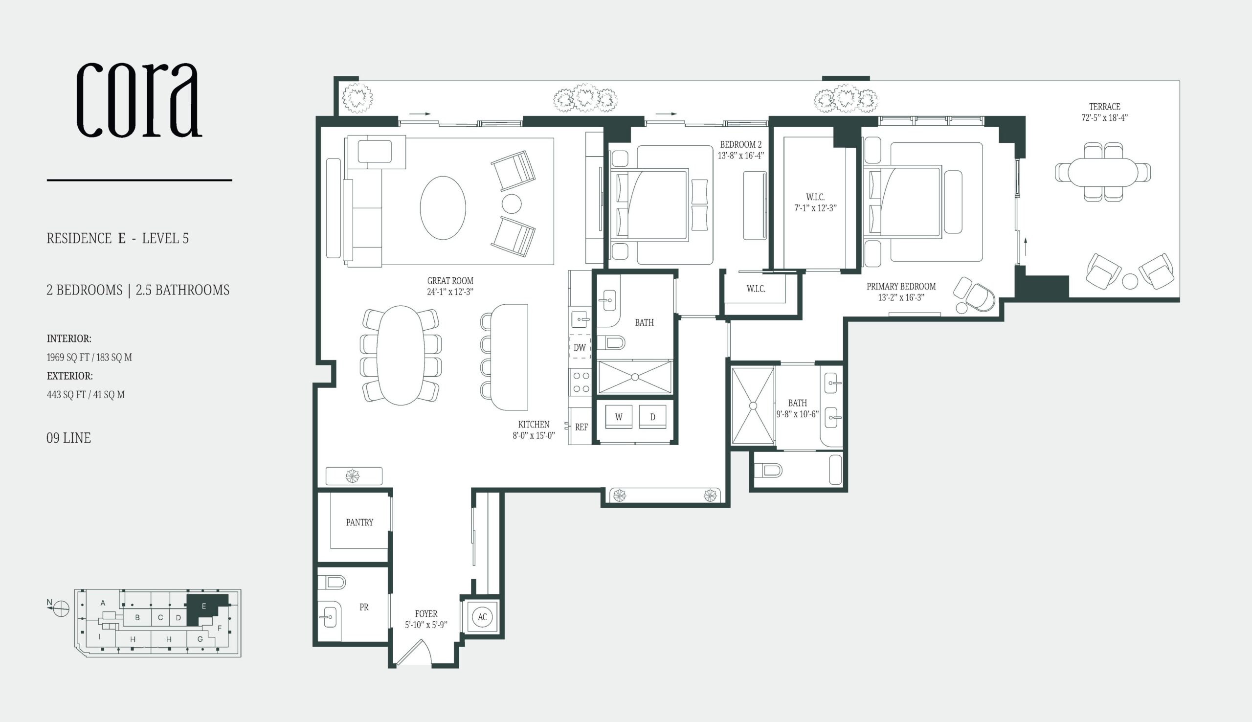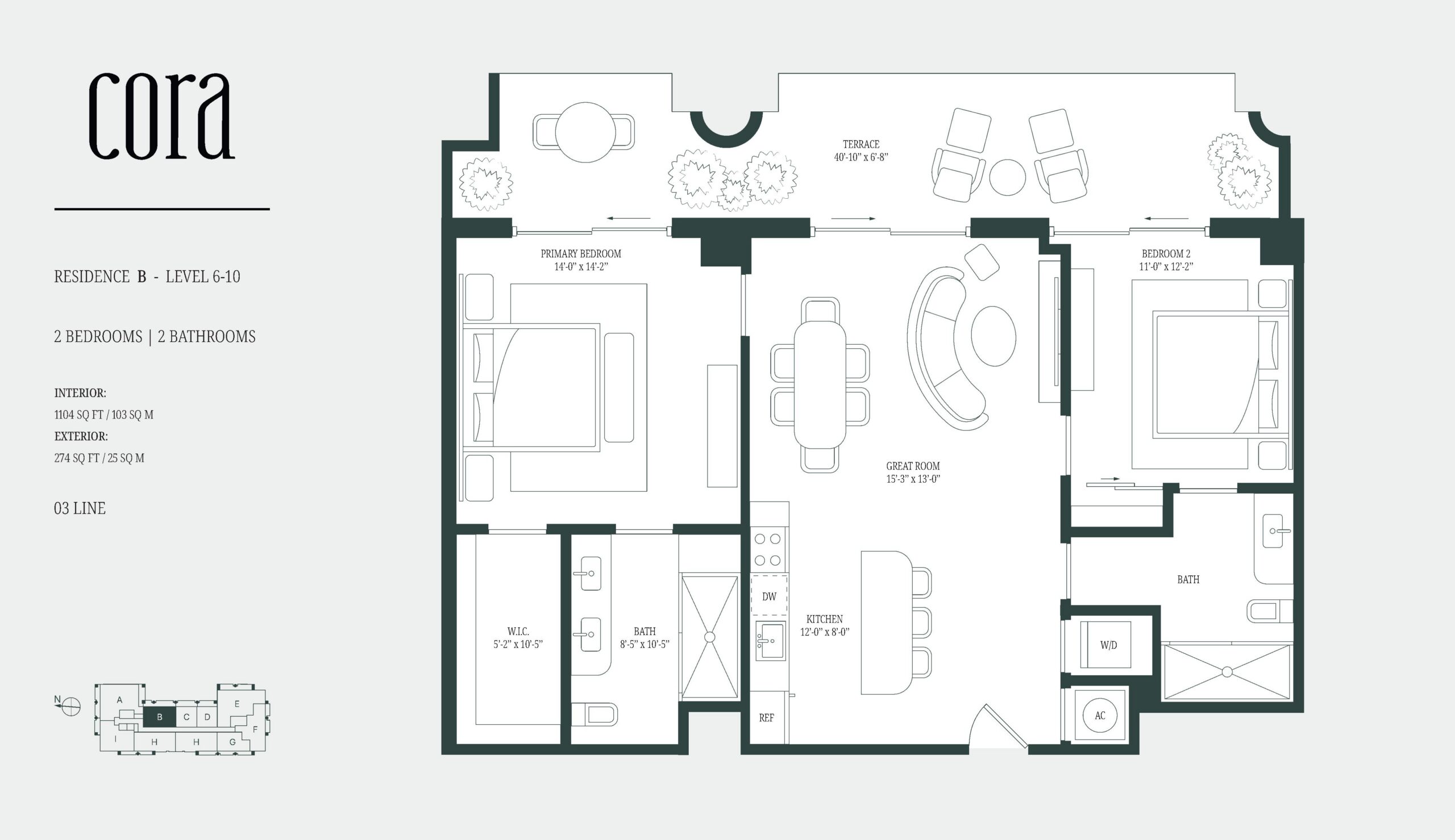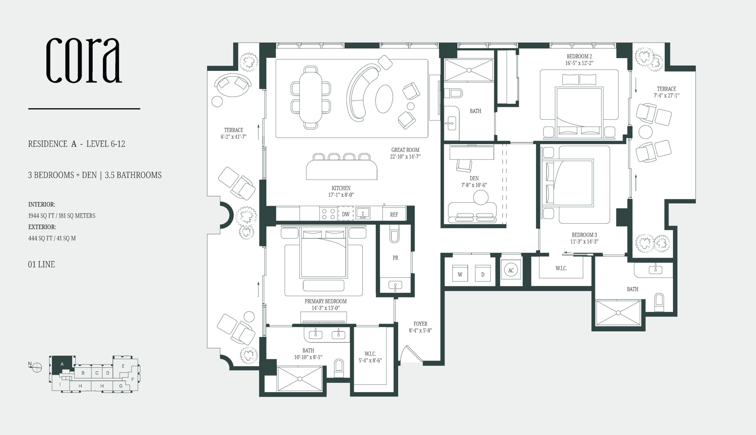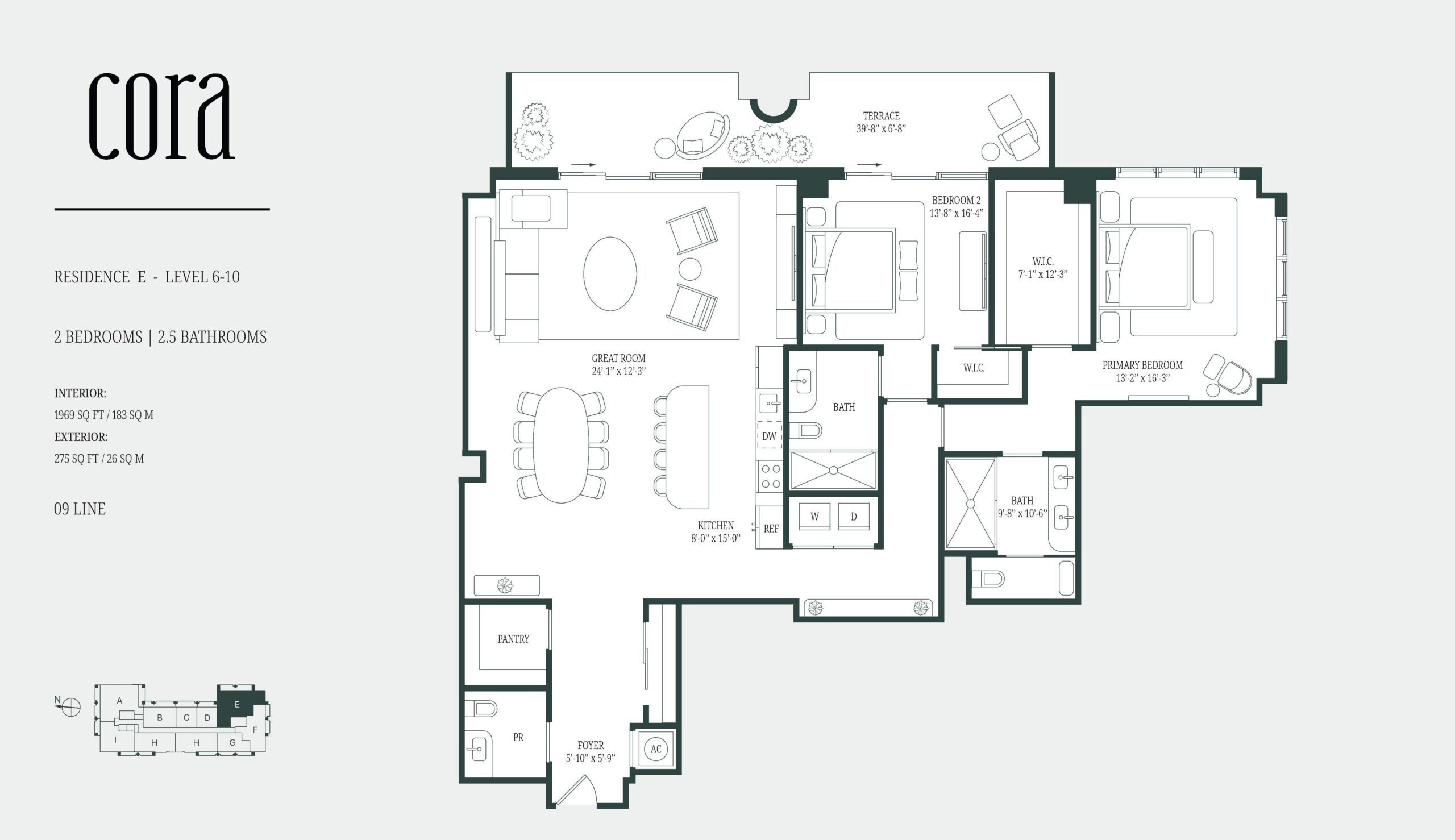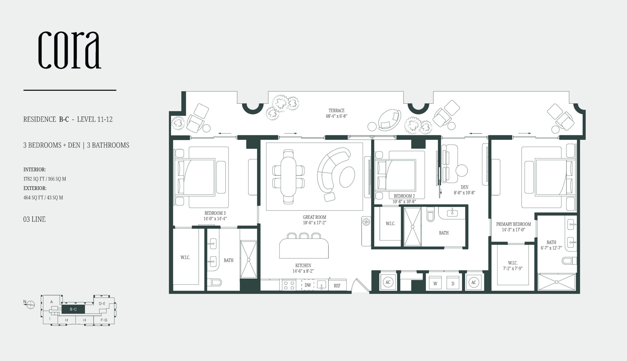 Cora Merrick Park is a boutique condominium bringing a wellness focused residential concept to one of Coral Gables’ most established locations. The building is limited to 74 residences, offering one to three bedroom layouts, including select homes with dens, with interiors generally ranging from the high six hundreds to over 2,600 square feet. Contemporary Mediterranean architecture gives the project a refined presence that fits naturally into its surroundings, while the intimate scale creates a quieter, more private living experience. Located in the heart of Aurora Street, the property is directly connected to the Shops at Merrick Park, placing dining, shopping, and daily essentials within immediate reach. Designed as a WELL Certified building, Cora Merrick Park is positioned for buyers who value comfort, balance, and long term quality of life.The residences are designed with an emphasis on light, proportion, and thoughtful detailing. Approximately ten foot ceilings and floor to ceiling windows allow natural light to shape the interiors throughout the day, while open layouts support modern living and entertaining. Kitchens feature stone countertops, spacious islands, Italian cabinetry, and premium Sub Zero and Wolf appliances. Many homes include expansive private balconies, and select residences offer oversized lanais that extend the living space outdoors. Stone flooring, finished closets, and spa inspired bathrooms complete the interiors, with advanced air and water purification systems reinforcing the building’s wellness-driven design.
