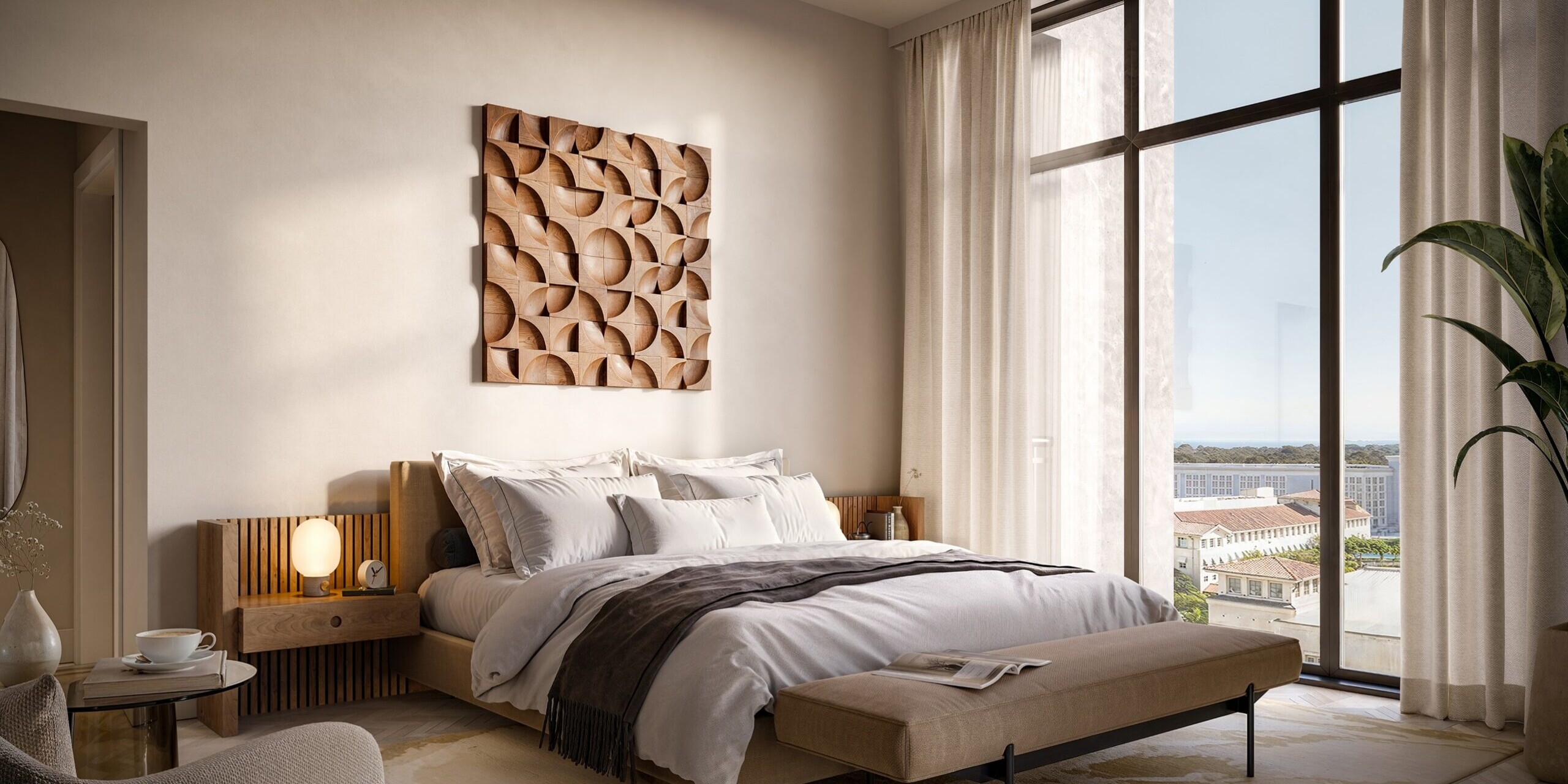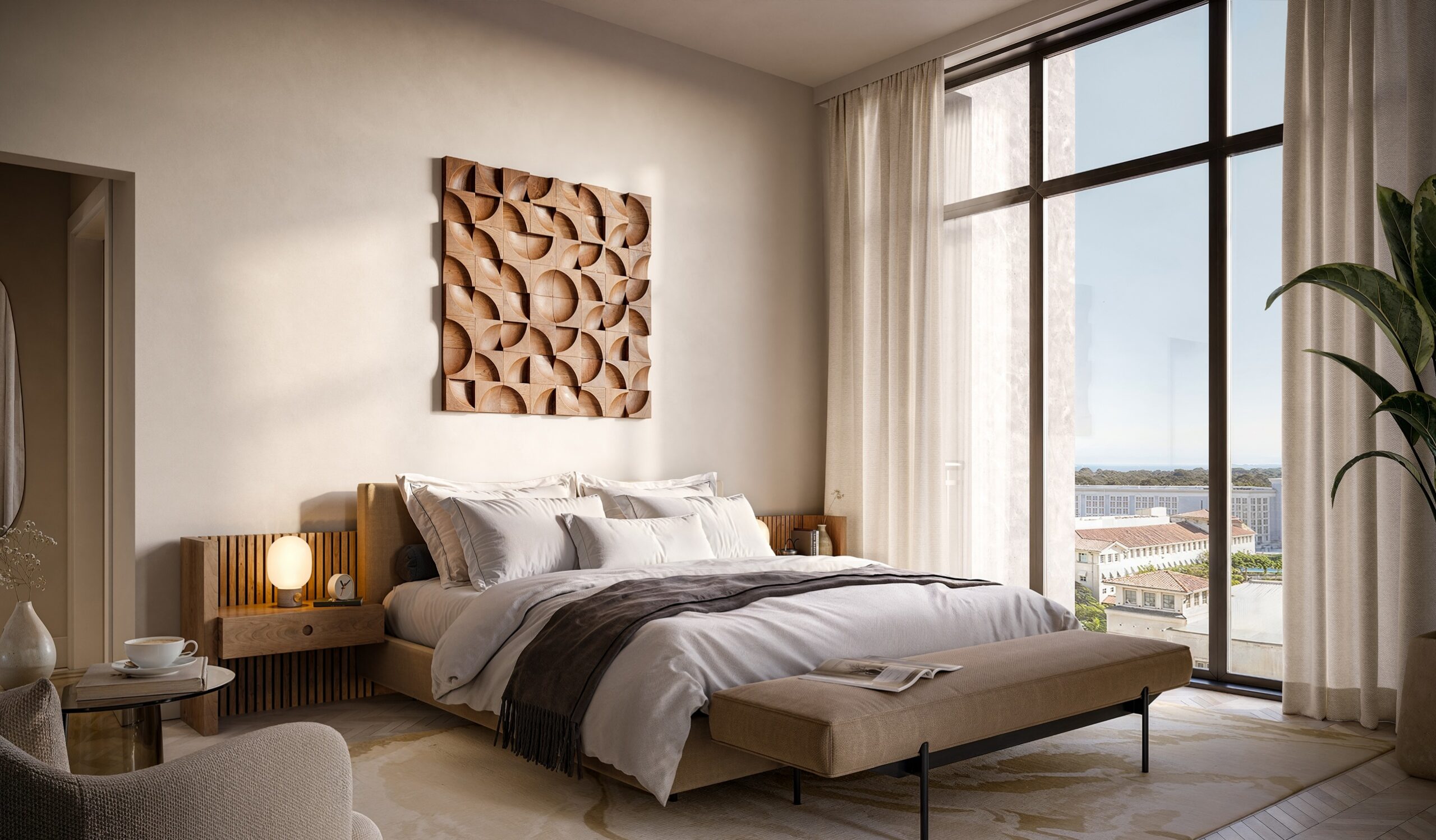 Amenities at Cora Merrick Park are curated to support both relaxation and productivity. Residents are welcomed by a lobby that blends lounge seating with coworking areas, creating flexibility for daily routines. A 5,000 square foot on site park anchors the property and features shaded seating and a signature art installation by Jaume Plensa. The rooftop includes a pool with cabanas, a padel/pickleball court, and a comprehensive wellness offering with a fitness center, hot and cold plunges, steam room, infrared sauna, red light therapy, and outdoor yoga terrace. Additional resident lounges, media spaces, and concierge services complete the experience.The surrounding Coral Gables neighborhood is defined by tree lined streets, Mediterranean inspired architecture, and a strong sense of place. The Shops at Merrick Park serve as a central hub with open air promenades, upscale boutiques, cafés, and restaurants just steps from the building. Nearby parks, cultural attractions, The University of Miami, and community events add depth to daily life, while proximity to business districts, universities, and medical centers enhances long term appeal. Cora Merrick Park benefits from this established setting, offering a wellness oriented home within one of South Florida’s most enduring and desirable neighborhoods.