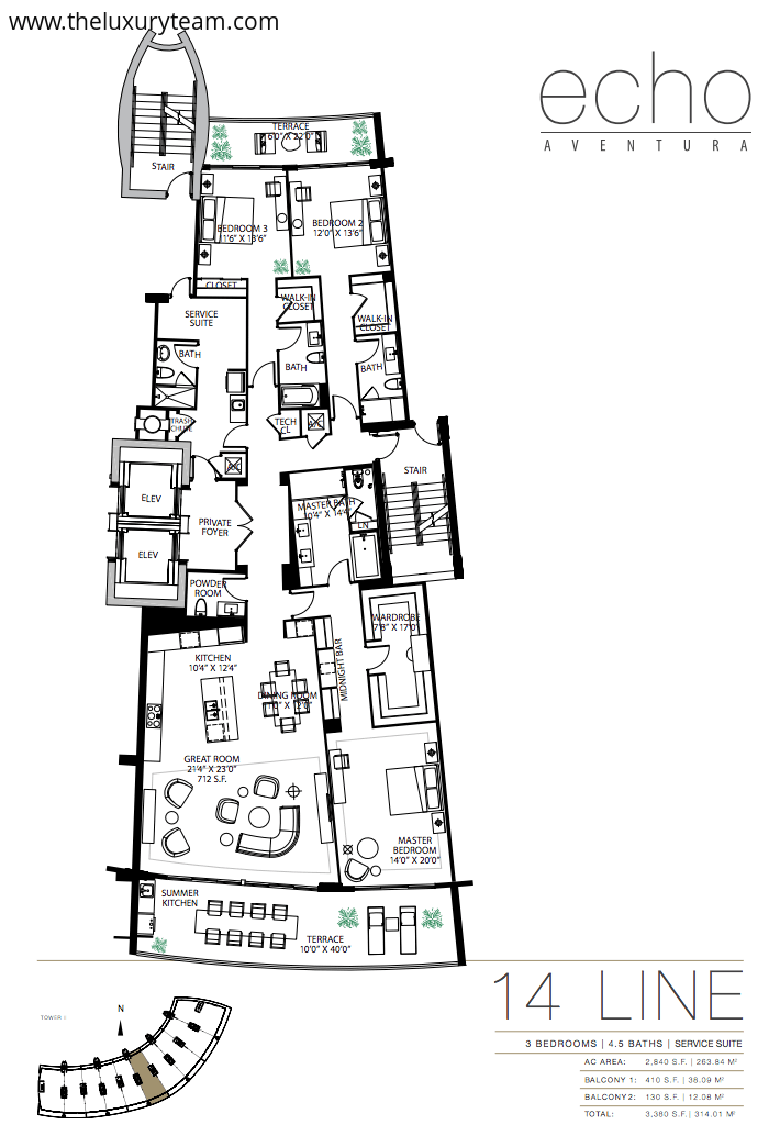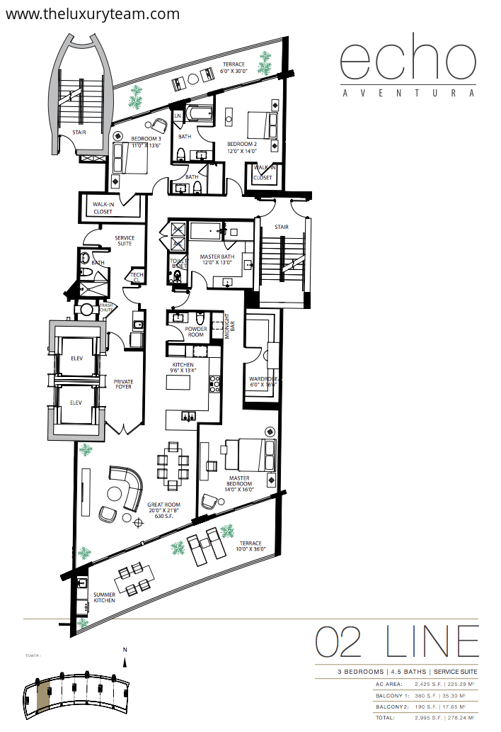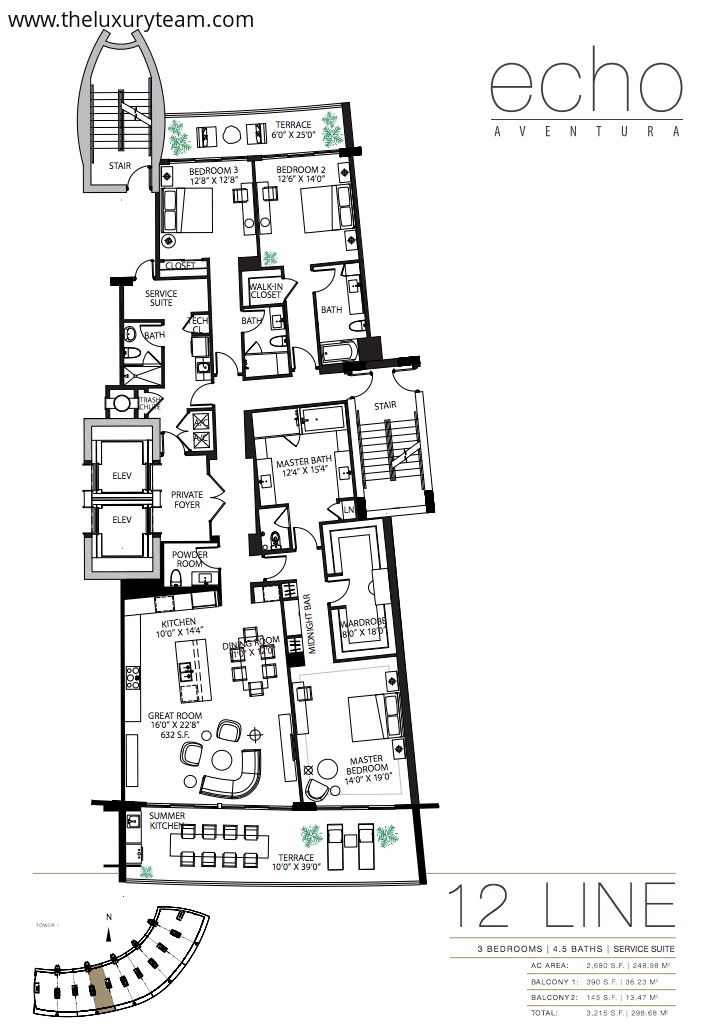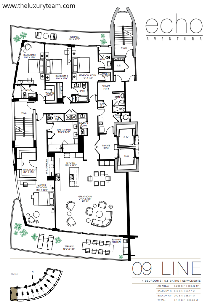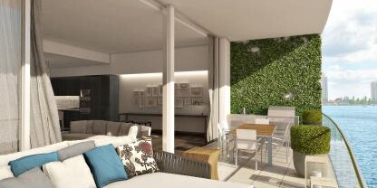 Every residence is back by Apple Home technology, allowing you to link up your smart devices and appliances for seamless control at home or on the go. Ten to fourteen foot floor-to-ceiling windows feature unobstructed water views. Every residence comes with a bay front terrace and outdoor summer kitchen. The interior feature beautiful stone craftsmanship in both the bathroom and kitchen and state-of-the-art appliances including Wolf gas stoves, SubZero appliances and wine storage, and modern Italian cabinetry. There is plenty of countertop space and a built in coffee and espresso machine.Building amenities include beautiful bay front views on an expansive five acres of land. The waterfront lounge area features an Infinity-Edge Pool with Atlantic Ocean views, private cabanas and lounge areas, and resort-style poolside service for breakfast and lunch. The unique and modern-style furniture is curated by acclaimed interior design firm Avenue Road. In addition to these beautiful outdoor amenities, the Echo Aventura features a 4,000 square-foot fitness center with state-of-the-art equipment and a designated yoga room. The Atrium event room features floor to ceiling glass and a private elevator, perfect for mingling with other residents or entertaining guests of your own. Each residence boasts a private elevator and two garage parking spaces. As if these weren’t enough, the Echo Aventura offers 24-hour concierge service with online accessibility, 24-hour valet and covered self parking, and 24-hour guarded entrance with security. Echo Aventura provides poolside breakfast for its residents everyday as well as pet walking services if you decide to go out of town.Floor plans range from 2 bedroom/3.5 bath lanai residences to 4 bedroom penthouse suites. Prices range from $2M-$3.2M. The project is currently 25% at contract, and the developers are offering 5% interest on all deposits from groundbreaking to completion. Completion is expected in December of 2015. Up to 60% of a full deposit on a property will be accepted! Don’t miss out on this incredible investment and living opportunity in Aventura.