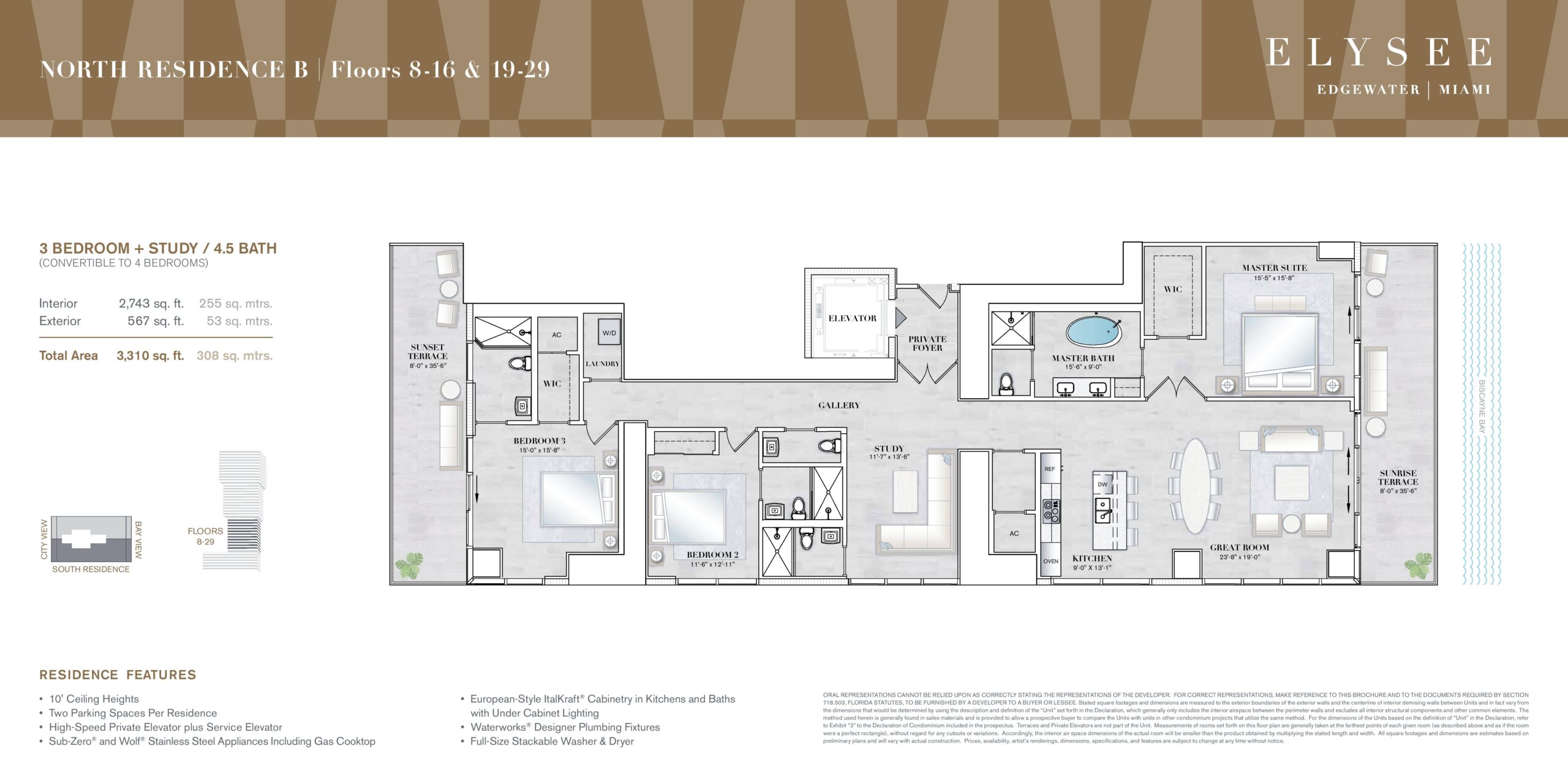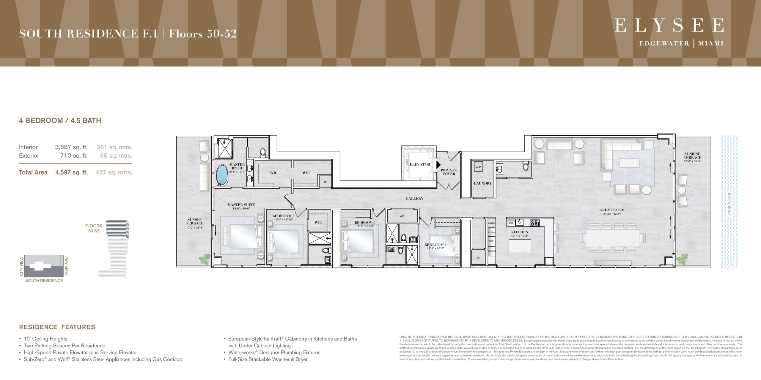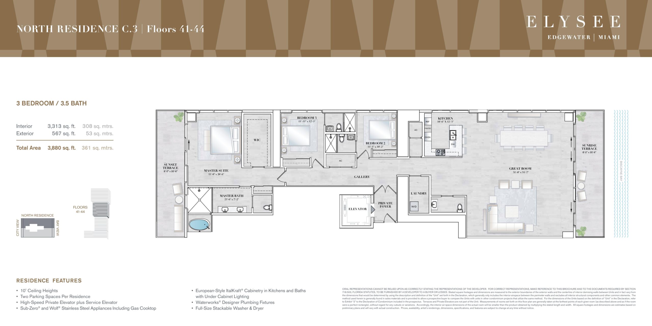 In addition to the beautiful design elements influenced by world-renowned design experts, The Elysee features a number of member amenities that are the best in South Florida. The Sky Lounge on the 30th floor offers 360 degree views of the Biscayne Bay, Atlantic Ocean, Downtown Miami, and more. The floor comes equipped with a salon, full bar, grand dining room, private theater/media room, a chef grade kitchen, and a teen lounge. All full time residents at Elysee will have access to the Luxury Attache, a premier concierge service that personalizes all amenities and features of luxury living at The Elysee. This full service concierge service includes 24 hour valet, dry cleaning, guest services, and security, all accessible remotely or in person.Perhaps one of the best features of the Elysee luxury residences is its location in one of the fastest growing and most vibrant neighborhoods in Miami. In this trendy, yet unpretentious neighborhood along the Biscayne Bay, residents can enjoy all of the same dining, nightlife, and entertainment options of Downtown, while still enjoying the small neighborhood feel of the community. Just steps from the beautiful white sand beaches, the Elysee also provides direct access to I-95 and other thoroughfares for easy access to airports and other neighboring South Florida communities. If you’re looking for the best in design and luxury remaining in an accessible neighborhood, look no further than the Elysee.