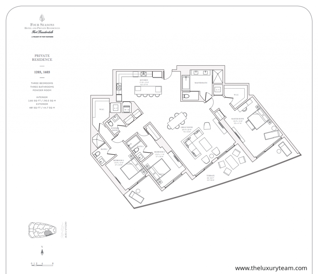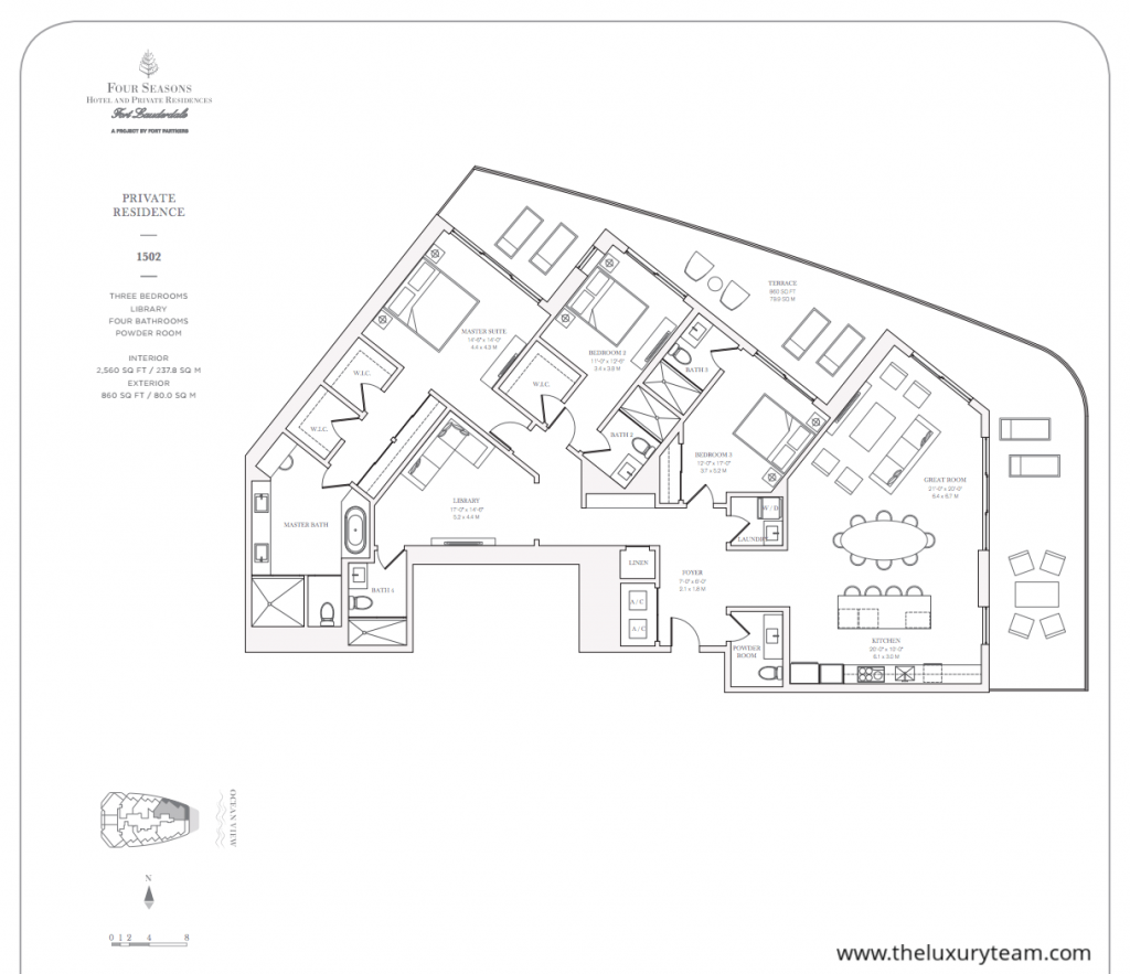 British designer Tara Bernard will bring her signature mixture of texture and color to the interior of rooms and common areas. With input from world-renowned designer Martin Brudnizki and landscape designer Fernando Wong, the entire experience at The Four Season Fort Lauderdale will accentuate the natural beauty of Fort Lauderdale’s beach.The complex will feature separate lobbies for hotel guests and permanent residents. However, amenities for residents will be parallel if not identical to the perks received staying at The Four Seasons as a hotel guest. Separate swimming pools and fitness areas will also help to keep down on the hotel crowd. Additional amenities will include a private beach club with towel and umbrella service, poolside cabanas with food and beverage service, spa, and a fitness center with state of the art equipment. The kids can enjoy games in the supervised children’s recreational room, and you can dance the night away or entertain guests in the professional ballroom. If you must do work while staying at The Four Seasons Fort Lauderdale, then conference rooms and meeting rooms are available.Centrally located along the strip in Fort Lauderdale, The Four Seasons Fort Lauderdale will provide direct access to a wide range of dining and shopping options. If you don’t feel like leaving your own personal paradise, there will be several restaurants right on the premises. You will be in close proximity to both I-95 and A1A major thoroughfares to Miami and other popular destinations in Florida like Boca Raton and Hollywood. Don’t miss out on this opportunity to own an exclusive piece of Fort Lauderdale!
