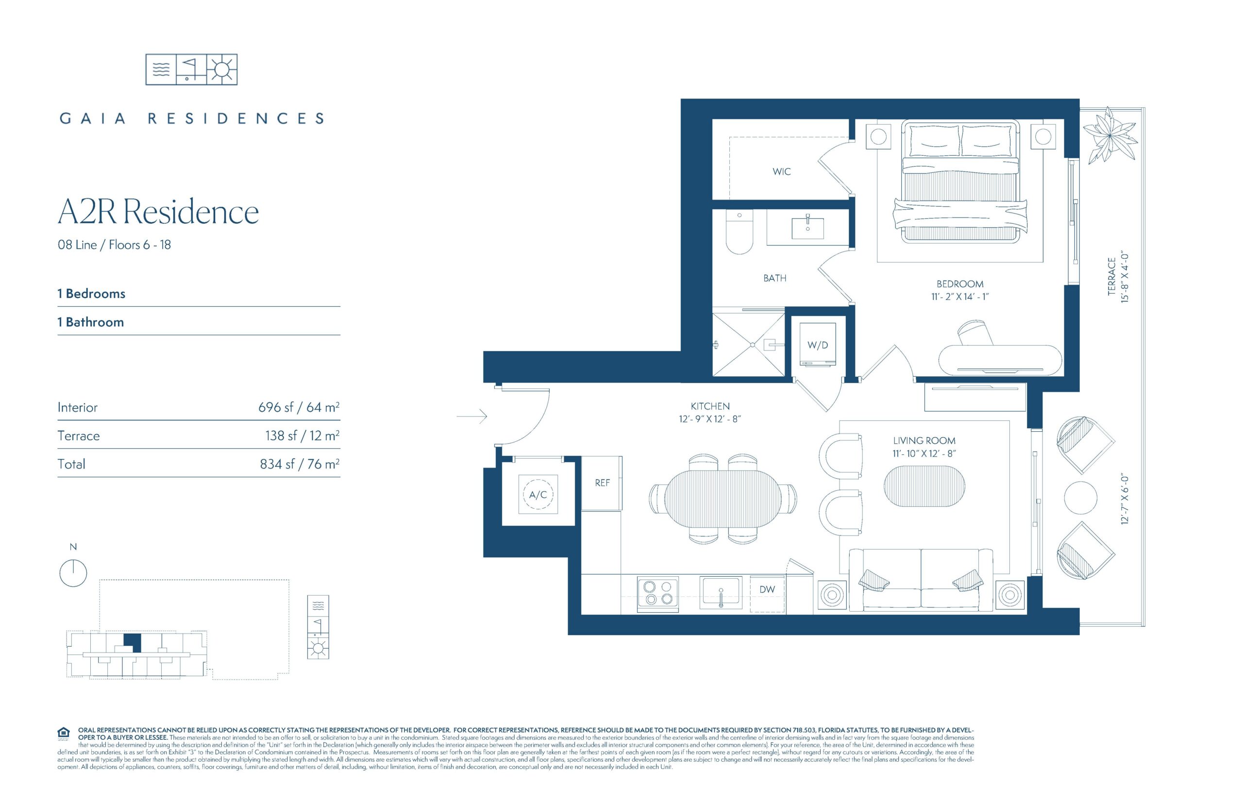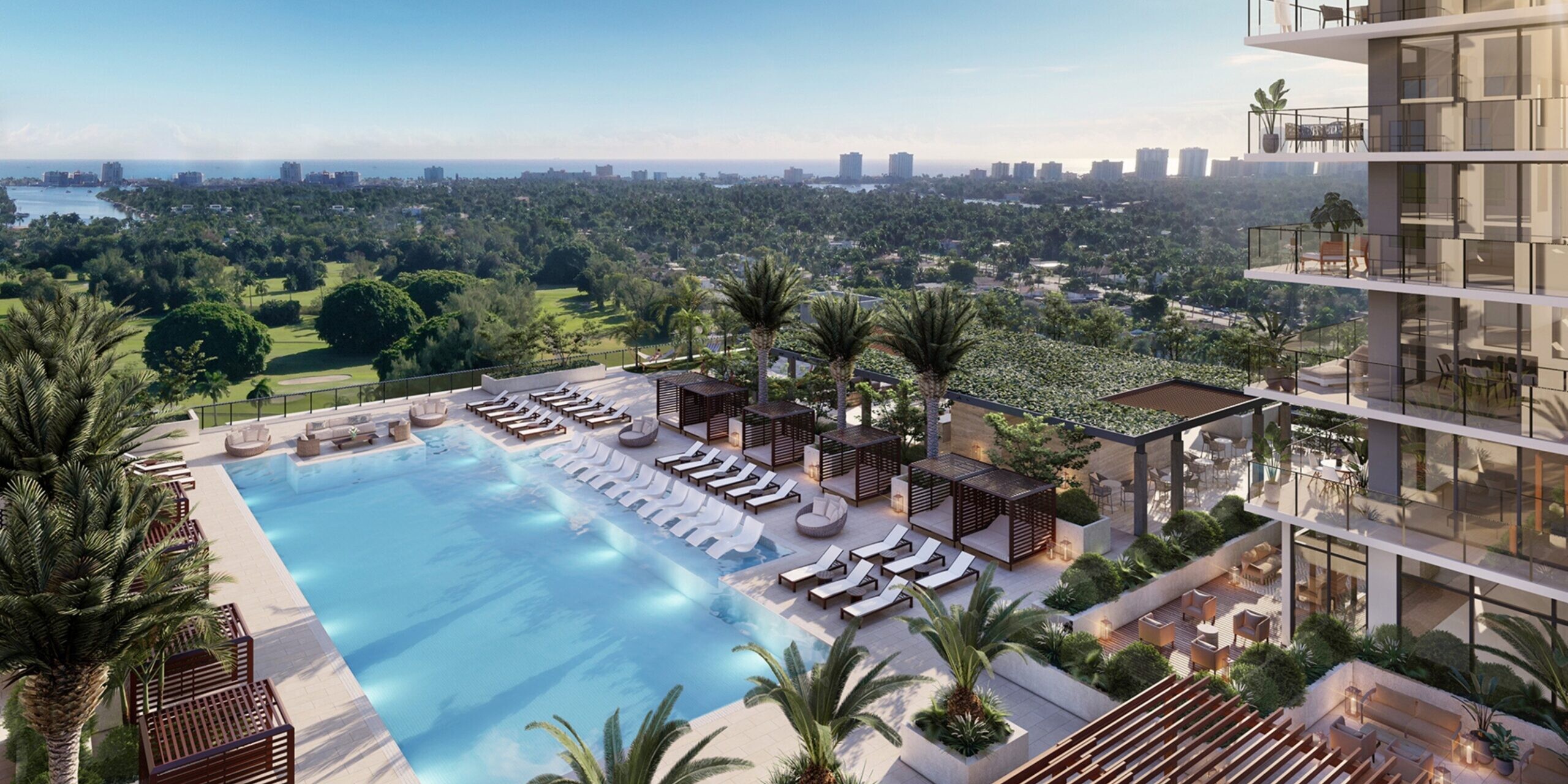 Gaia Residences introduces a fresh architectural presence to Hollywood, rising 18 stories above the city with sweeping views that stretch from the lush fairways of the Hollywood Beach Golf Club to the Atlantic Ocean beyond. Comprising 238 thoughtfully designed residences, the tower blends contemporary design with a calm, nature inspired setting positioned between Miami and Fort Lauderdale. Homebuyers can choose from a range of layouts spanning approximately 564 square feet to 1,300 square feet, accommodating a variety of lifestyles from efficient studios to expansive three bedroom homes. With nearly two acres of indoor and outdoor lifestyle amenities and a location that balances coastal energy with residential privacy, Gaia Residences offers a distinctive opportunity in one of South Florida’s steadily evolving waterfront communities.The residences reflect a refined, modern sensibility with curated interiors designed for both comfort and visual impact. Italian kitchens anchor each home with custom European cabinetry, integrated Bosch appliances, and seamless quartz countersplashes that create a cohesive, streamlined aesthetic. Large format imported porcelain flooring runs throughout the living areas, while floor to ceiling windows draw in natural light and open to private terraces that extend the living space outdoors. Ceiling heights ranging from approximately 9 to 13 feet enhance the sense of openness, creating airy, light filled interiors. Primary suites include built out closets, and bathrooms are appointed with quartz surfaces and backlit mirrors for a polished finish. Smart thermostats and in-unit washer and dryer appliances add everyday convenience to these carefully composed homes.
