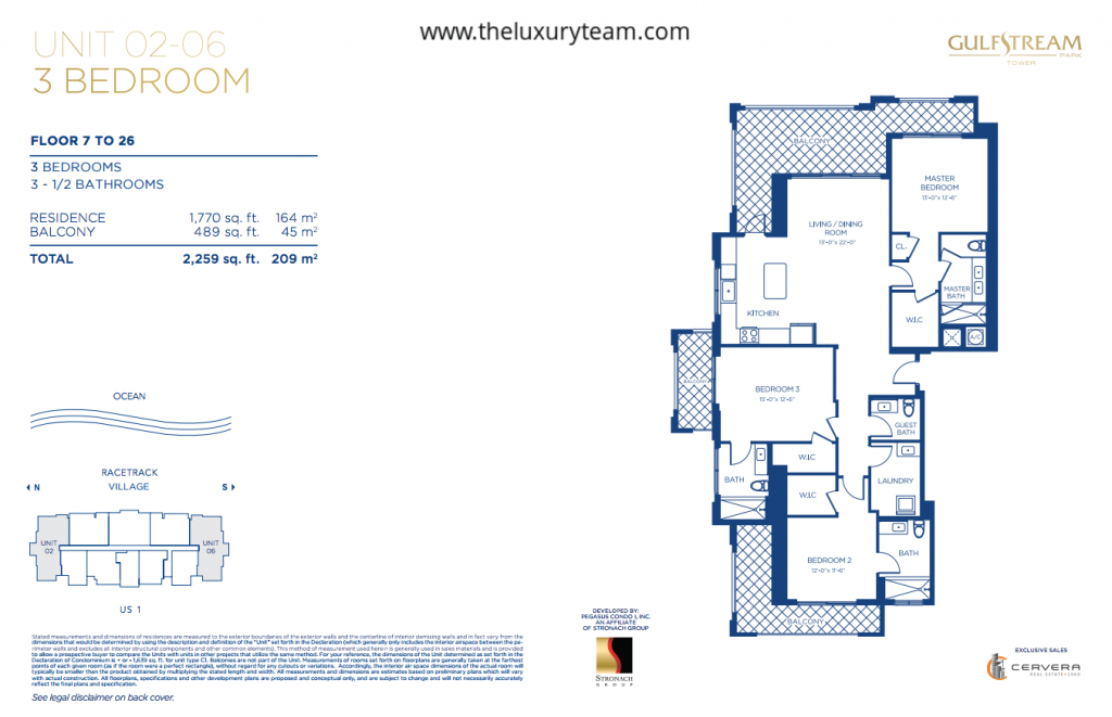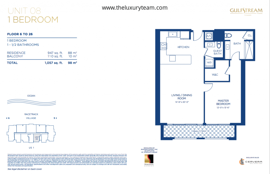 The Gulfstream Park Tower is a 21 story building in Hallandale Beach developed by The Stronach Group with Behar Font & Partners as architects. It is located in one of the most important horse racing venues in the United States, Gulfstream Park Racino (racetrack and casino). The Gulfstream Park Tower exudes a feeling of timeless, effortless elegance. At first glance, the tower’s timeless yet contemporary design provides you with a feeling of both modern elegance and a rich, magnificent history. Residents will enjoy sweeping ocean, racetrack, and city views. Every single aspect of the building’s style and design, both inside and outside, has been developed to guarantee your utmost convenience and pleasure. The residences consist of one, two, or three bedroom units for a total of 182 units. Prices range from $230,000 to $800,000. Some of the amenities found at Gulfstream Park Tower residences include a modern fitness center, a pair of swimming pools, and poolside cabanas.