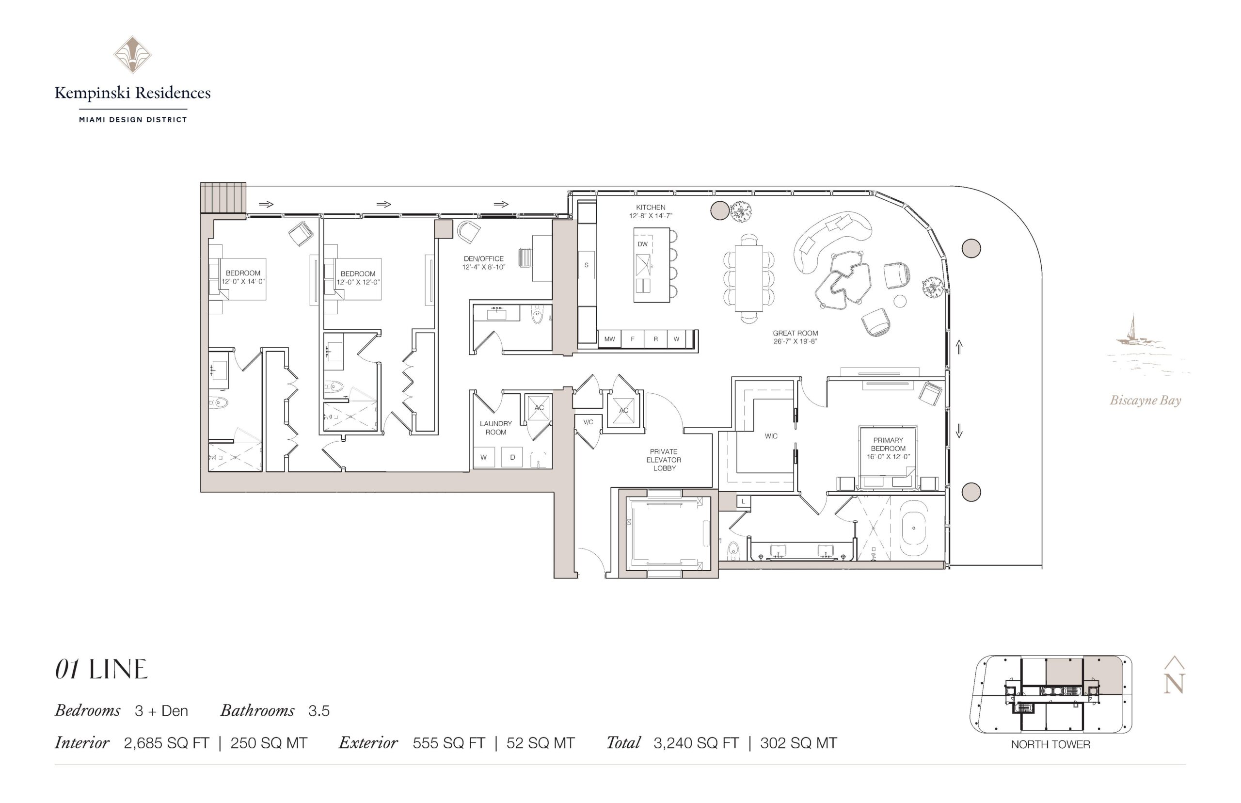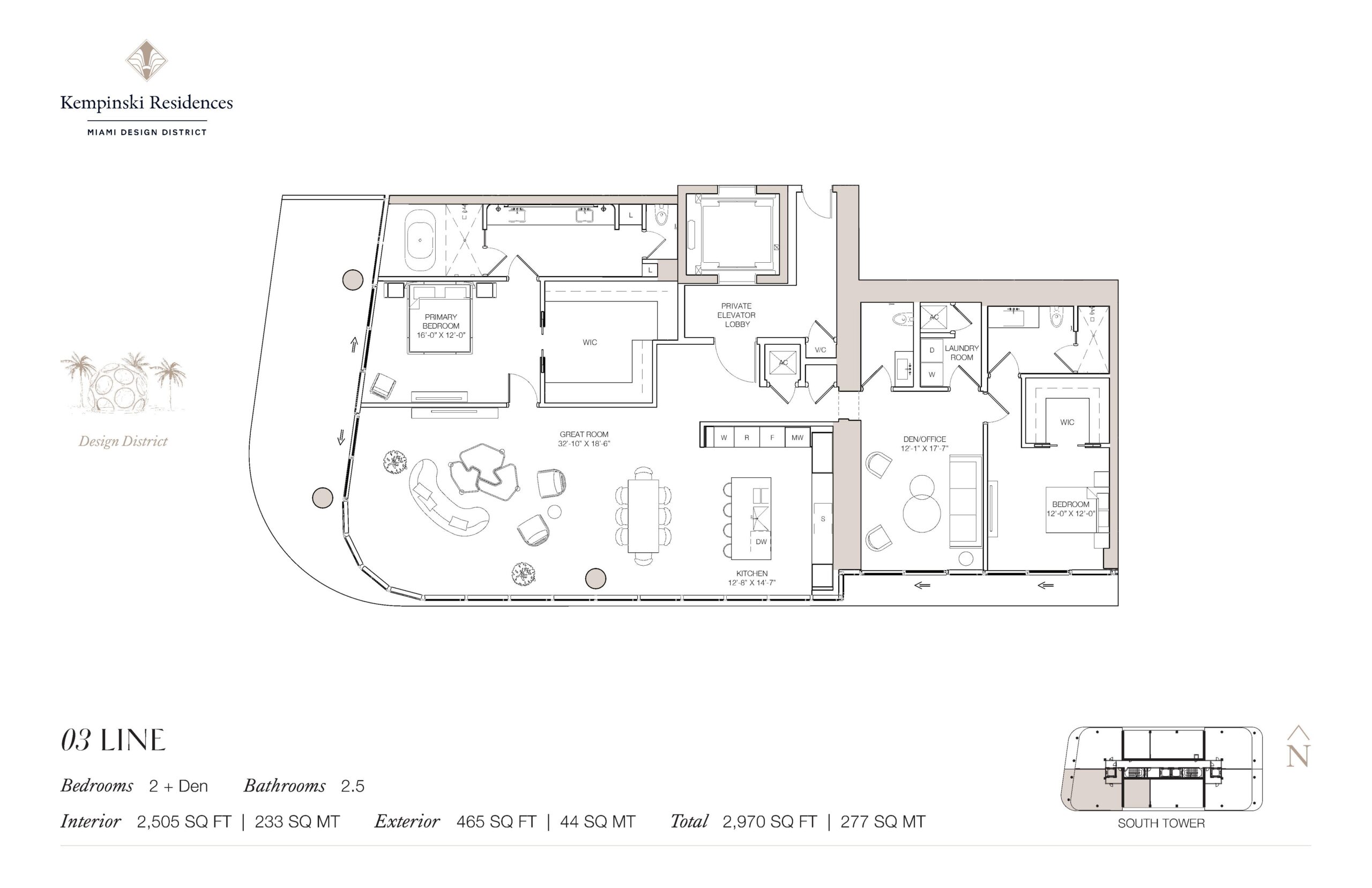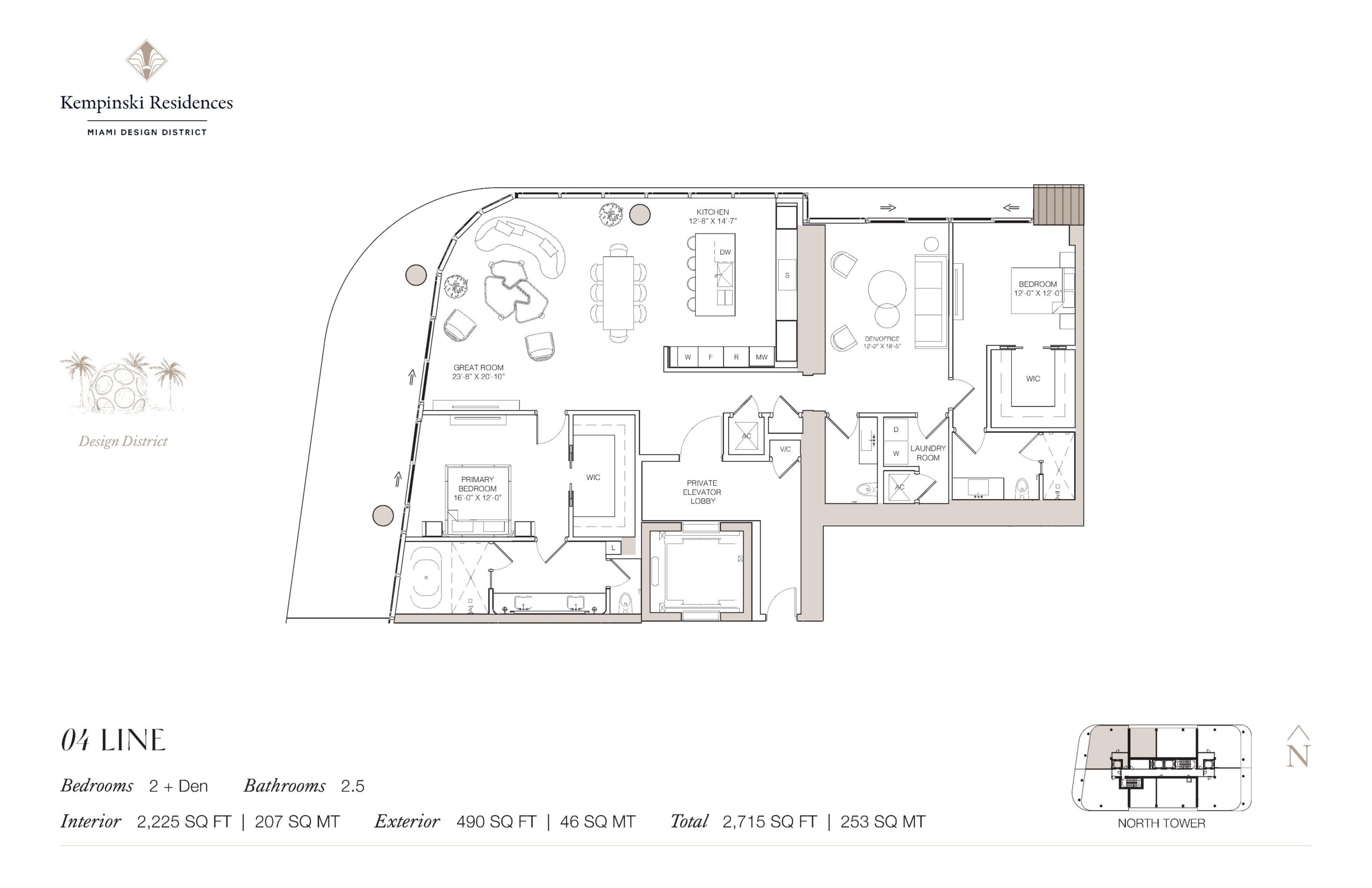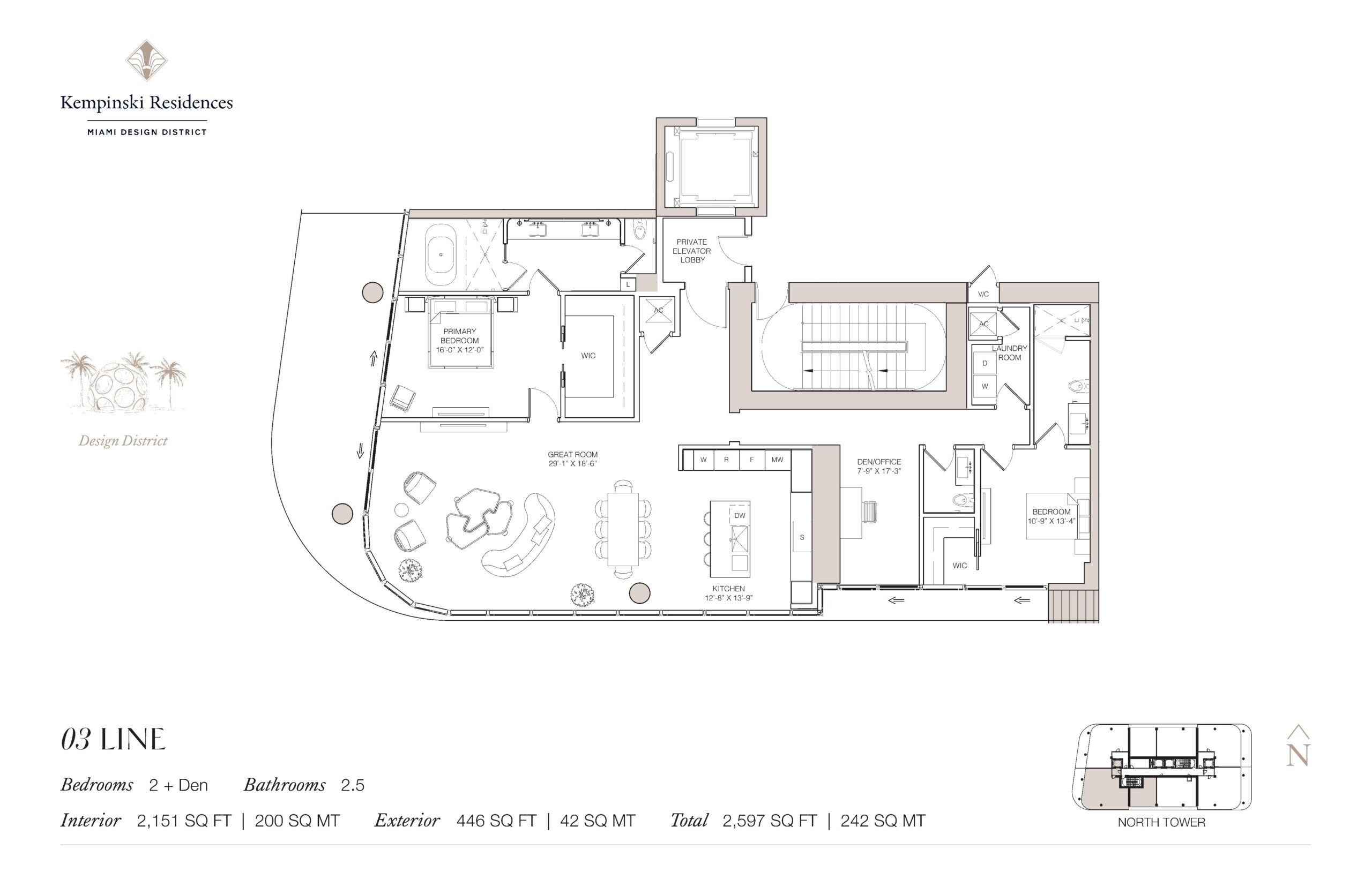 Introducing Kempinski Residences Miami Design District, a sophisticated two tower residential address set to debut in 2029 at the gateway to the Miami Design District. Rising 20 stories and comprising 132 private residences along with six townhomes and 17 guest suites available exclusively to owners, the project represents the first United States branded residential offering from Kempinski Group. Developed by DaGrosa Capital Development Partners and designed by Arquitectonica with interiors by Rockwell Group, the property reflects a refined balance of architectural clarity and European heritage. Homes range from two to four bedrooms, offering expansive floor plans, generous terraces, and a scale more commonly associated with private estates than urban condominiums. Interior spaces span approximately 2,100 to more than 3,100 3,700 square feet. Positioned at the crossroads of culture and commerce, the towers frame views of Biscayne Bay and the Downtown skyline while anchoring the northern edge of the Design District.Interiors are defined by grand great rooms, open concept kitchens, and a seamless transition from indoor living spaces to sweeping terraces designed for year round enjoyment. Many residences feature private elevator lobbies that open into elegant foyers, creating a sense of arrival and discretion. Thoughtfully placed dens provide flexibility for home offices or media rooms, while dedicated laundry rooms and well proportioned secondary bedrooms enhance day to day functionality. Primary suites are designed as private retreats with generous walk-in closets and spa-inspired bathrooms, reinforcing the development’s emphasis on comfort and refinement. Throughout each residence, Rockwell Group’s design approach highlights curated materials, clean architectural lines, and a timeless palette that reflects Kempinski’s European sensibility while embracing Miami’s contemporary energy.