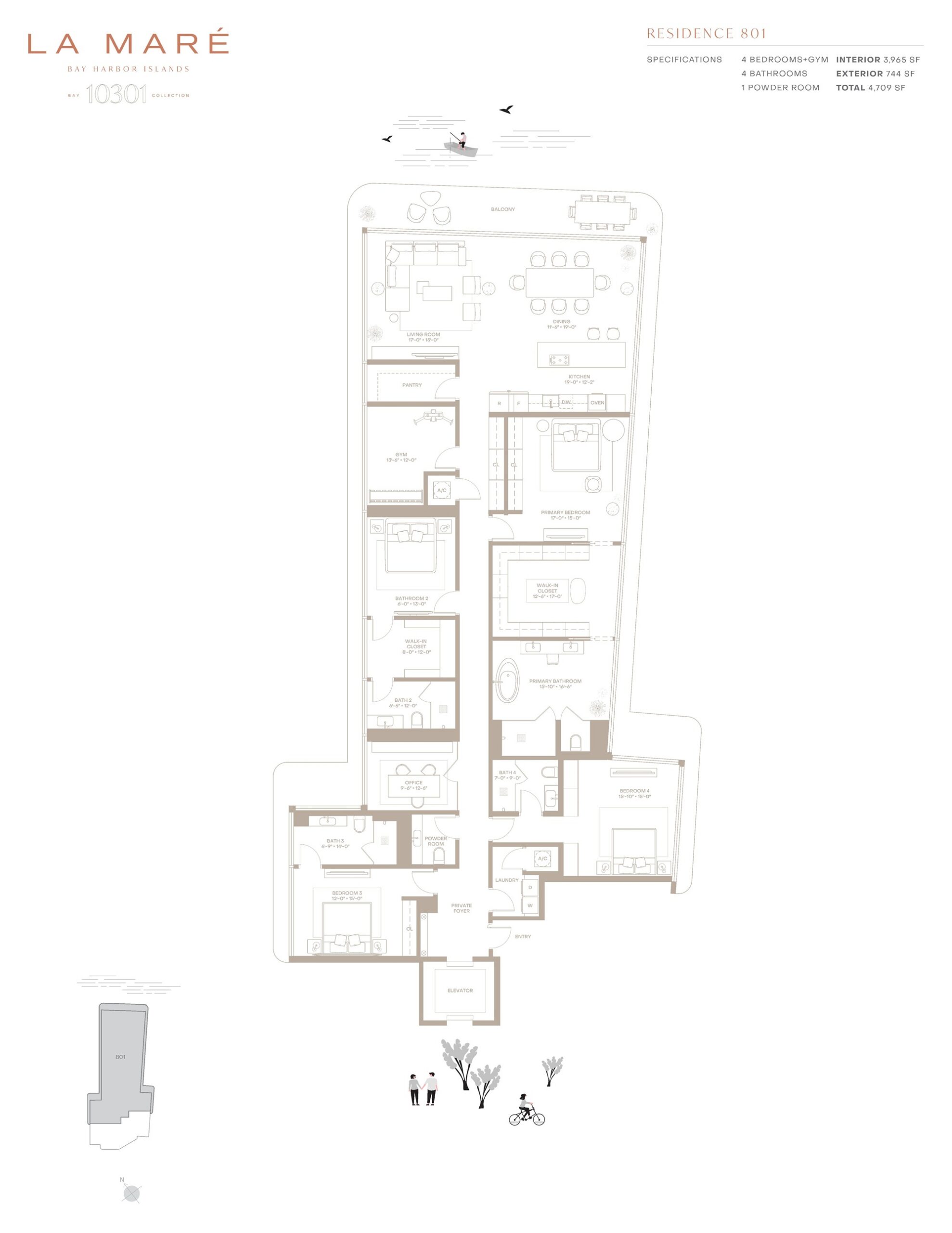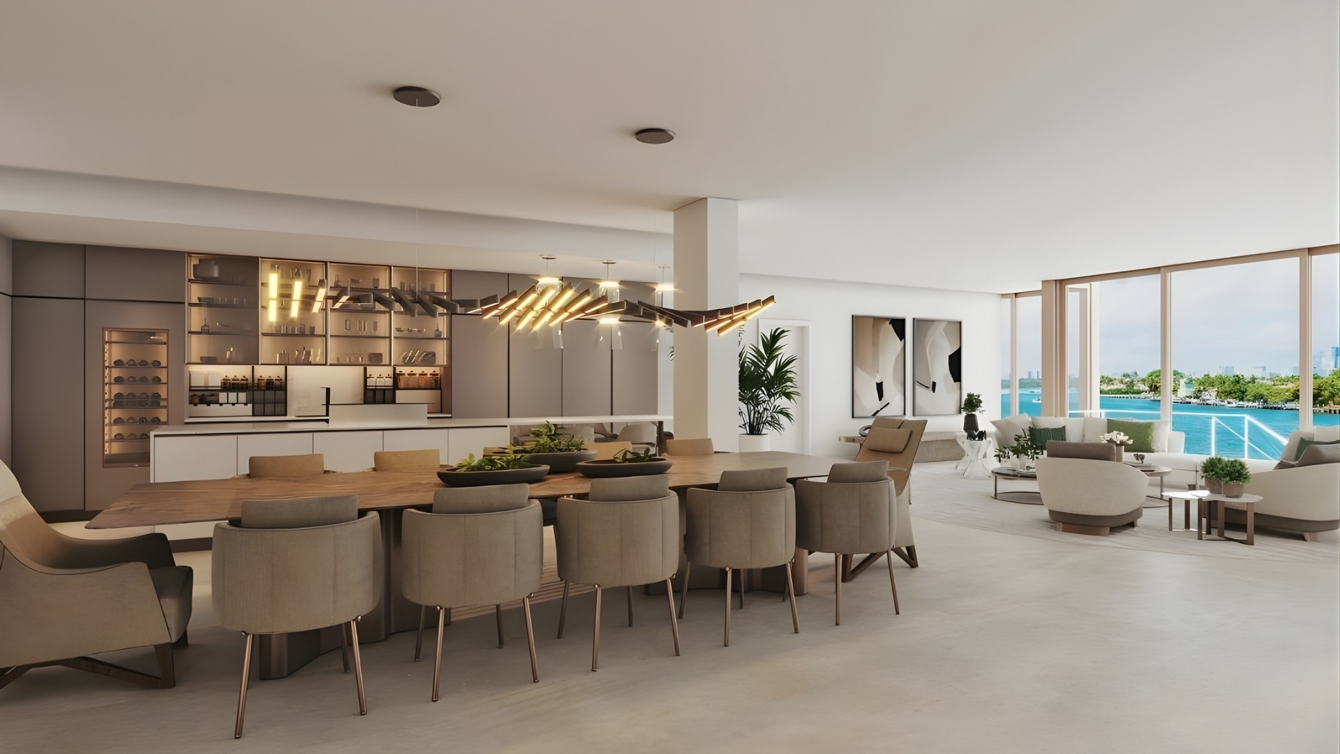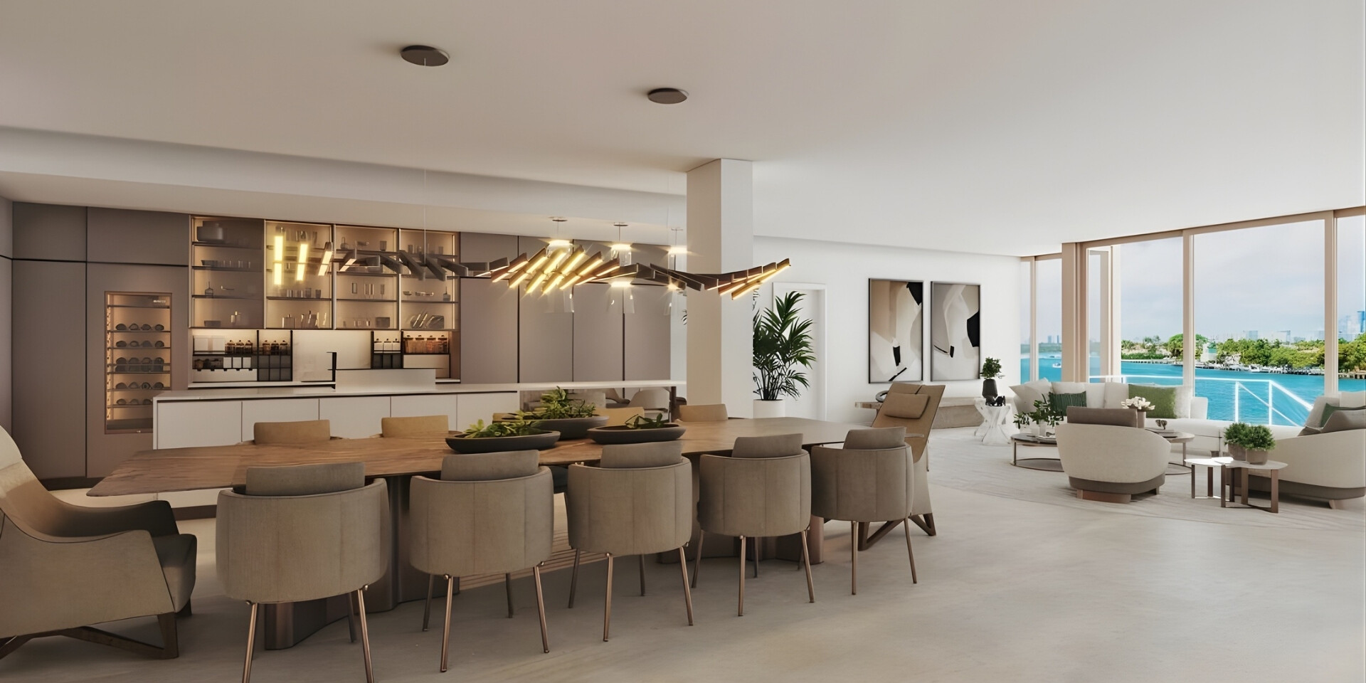 La Maré Bay Harbor offers a refined waterfront lifestyle within an intimate boutique building designed to celebrate the beauty of Biscayne Bay. Located along East Bay Harbor Drive, the Bay Collection features just nine expansive residences in a sleek glass-clad structure designed by Kobi Karp Architecture with interiors by Debora Aguiar Arquitetos. Homes range from three to four bedrooms with spacious floor plans spanning approximately 2,897 to over 5,389 square feet. Each residence is designed to maximize natural light and panoramic bay views through floor-to-ceiling glass and expansive terraces that create seamless indoor and outdoor living spaces. With its limited number of homes and peaceful waterfront setting, La Maré Bay Harbor Islands, Bay Collection provides an exclusive residential experience in one of Miami’s most charming island communities.Inside the residences, the design philosophy emphasizes openness, natural materials, and effortless tropical living. Wraparound glass walls allow sunlight and bay breezes to move throughout the homes, while grand ceiling heights enhance the sense of space. Private elevators with key-lock access bring residents directly into their residences, reinforcing privacy and convenience. Kitchens feature custom Poliform cabinetry paired with elegant stone countertops and a premium Miele appliance suite that includes a built-in coffee system and wine refrigerator. Primary bathrooms are thoughtfully designed with dual showers, deep soaking tubs, and Italian fixtures by Antonio Lupi, creating a spa-inspired retreat within the home. Large glass-walled terraces extend the living areas outdoors, offering ideal spaces for entertaining while enjoying sweeping views of the bay.