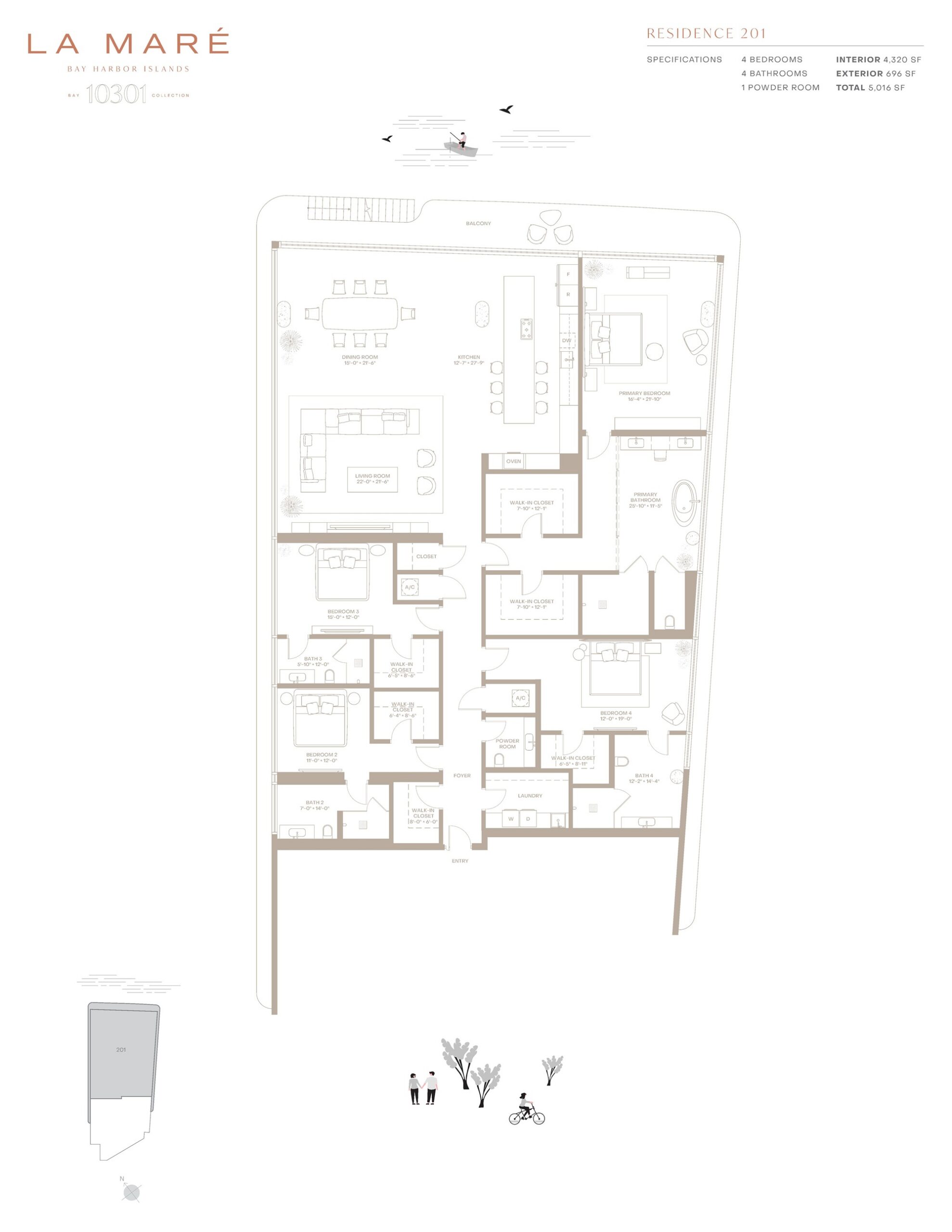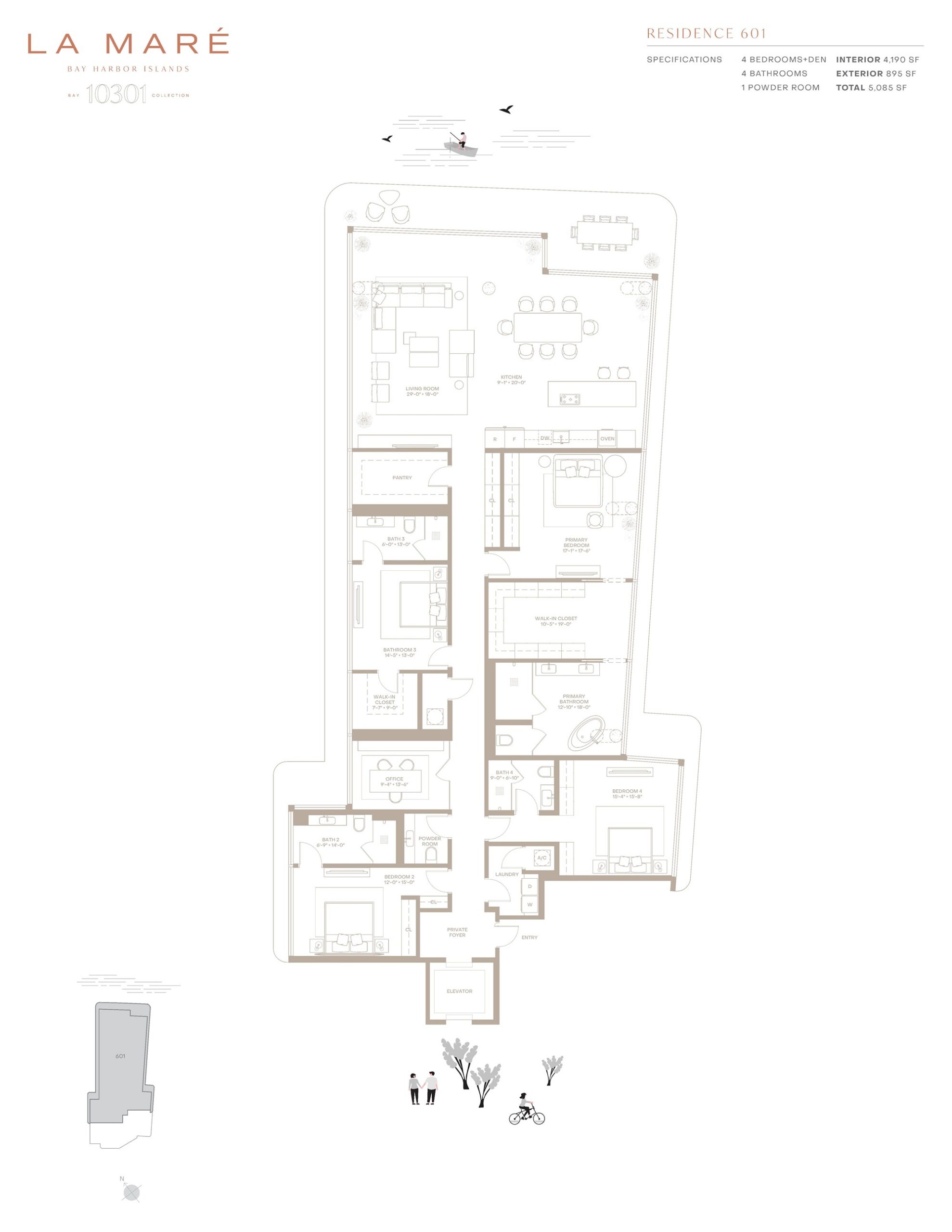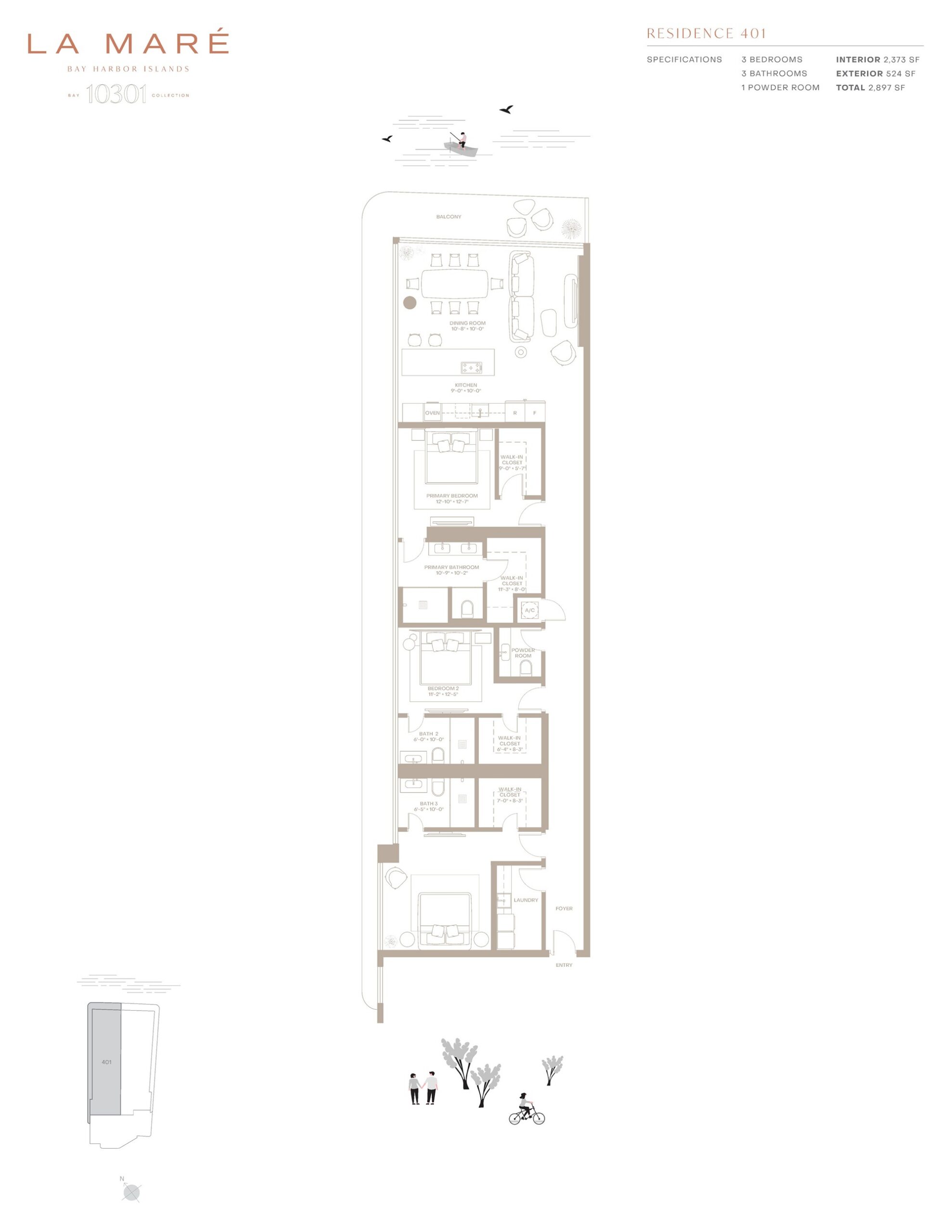 La Maré Bay Harbor offers a refined waterfront lifestyle within an intimate boutique building designed to celebrate the beauty of Biscayne Bay. Located along East Bay Harbor Drive, the Bay Collection features just nine expansive residences in a sleek glass-clad structure designed by Kobi Karp Architecture with interiors by Debora Aguiar Arquitetos. Homes range from three to four bedrooms with spacious floor plans spanning approximately 2,897 to over 5,389 square feet. Each residence is designed to maximize natural light and panoramic bay views through floor-to-ceiling glass and expansive terraces that create seamless indoor and outdoor living spaces. With its limited number of homes and peaceful waterfront setting, La Maré Bay Harbor Islands, Bay Collection provides an exclusive residential experience in one of Miami’s most charming island communities.Inside the residences, the design philosophy emphasizes openness, natural materials, and effortless tropical living. Wraparound glass walls allow sunlight and bay breezes to move throughout the homes, while grand ceiling heights enhance the sense of space. Private elevators with key-lock access bring residents directly into their residences, reinforcing privacy and convenience. Kitchens feature custom Poliform cabinetry paired with elegant stone countertops and a premium Miele appliance suite that includes a built-in coffee system and wine refrigerator. Primary bathrooms are thoughtfully designed with dual showers, deep soaking tubs, and Italian fixtures by Antonio Lupi, creating a spa-inspired retreat within the home. Large glass-walled terraces extend the living areas outdoors, offering ideal spaces for entertaining while enjoying sweeping views of the bay.