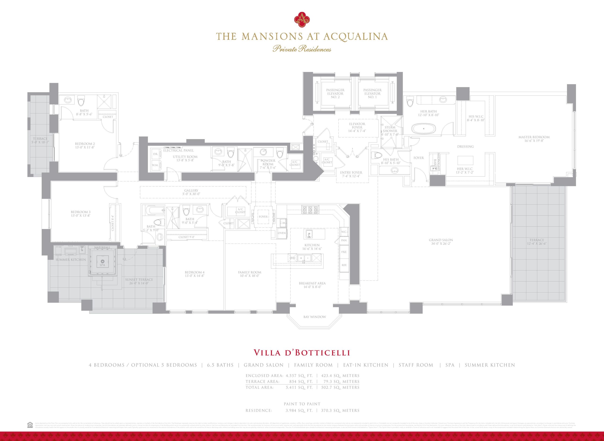 Acqualina is considered one of the most luxurious developments in Sunny Isles and is on par with any other luxury residence in South Florida. The Mansions at Acqualina will be taking luxury to a whole new level with their new 79 oceanfront villas. It will have a classic Mediterranean design and one of the most luxurious spas in all of South Florida. The luxury residences come in 3, 4 and 5 bedroom offerings and range in size from just over 4,500 square feet all the way up to 15,000 square feet. Prices for these luxurious residences begin at over $5 Million and go all the way up to over $50 Million.Similar to the original development, the Mansions at Acqualina will be a mixture of residences and hotel suites. Interiors are designed by Fendi Casa and will include high-end imported appliances, fixtures, cabinetry and flooring. Every residence will include floor to ceiling glass with spectacular views of the Atlantic Ocean, the city and Intercostal Waterway.