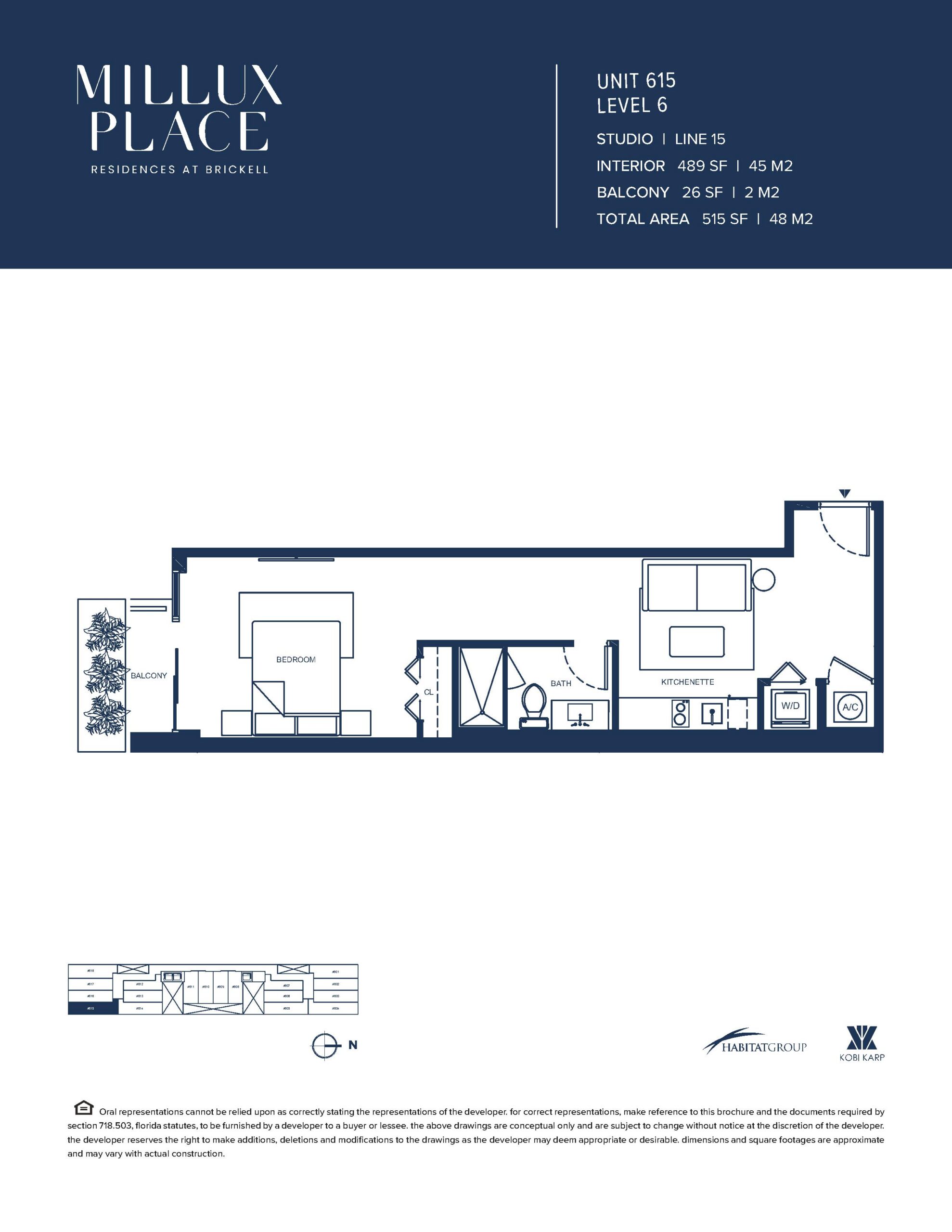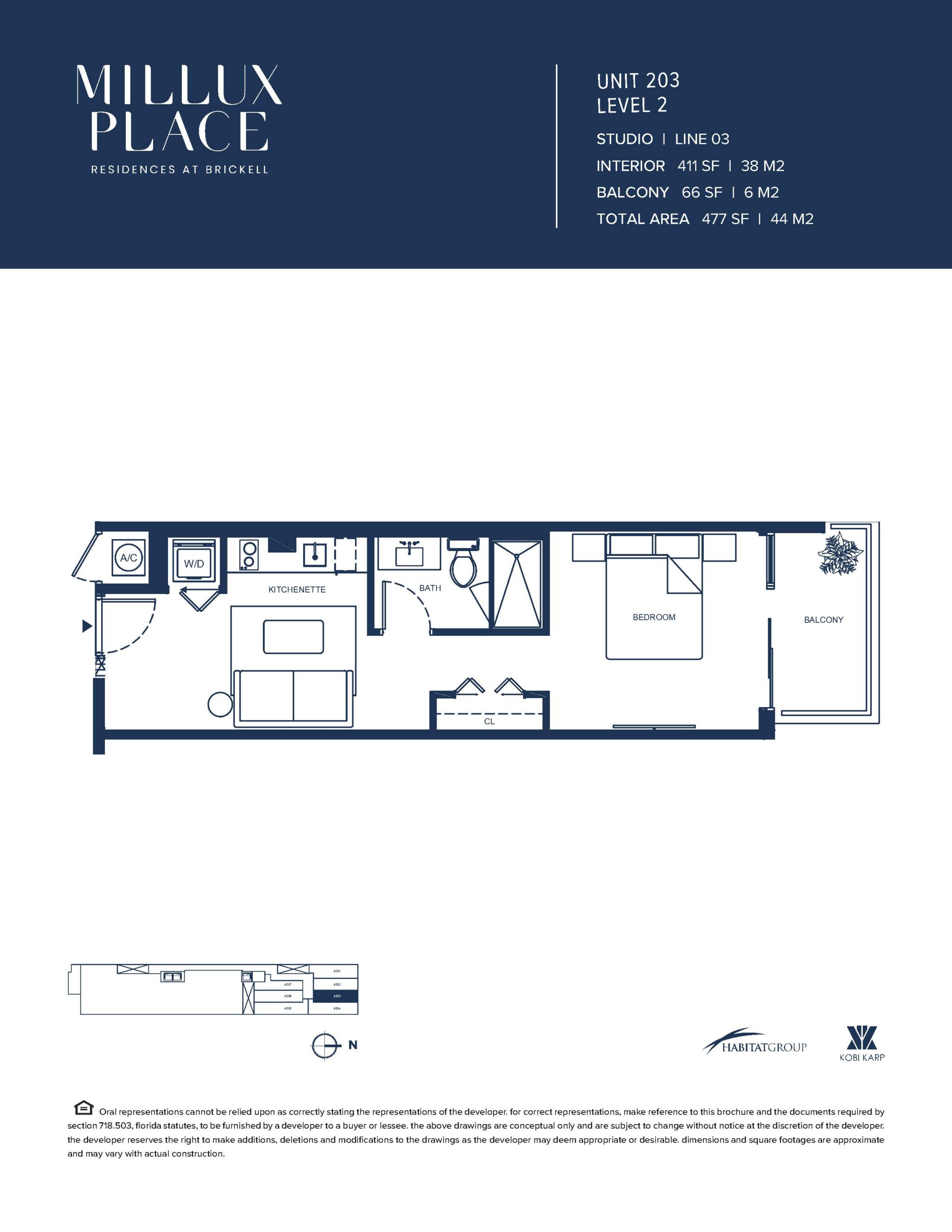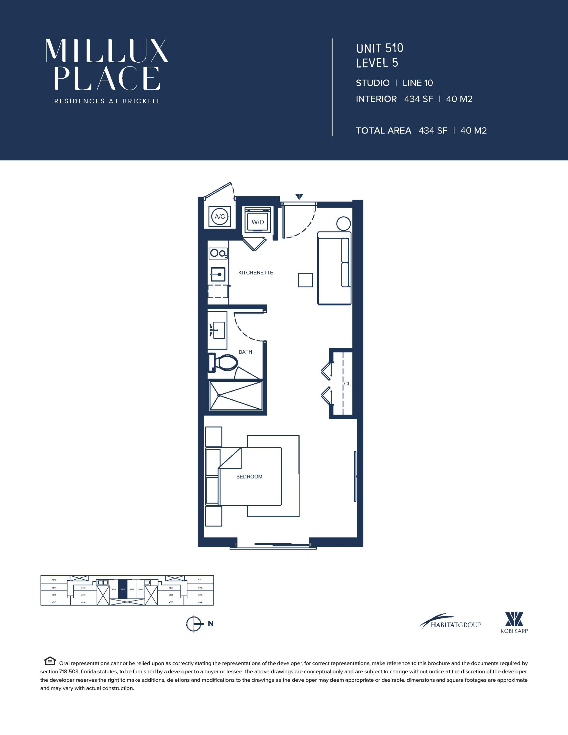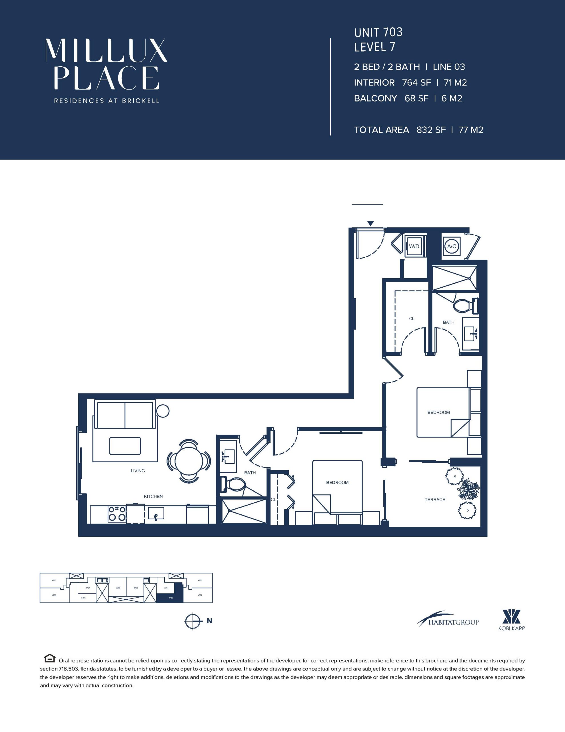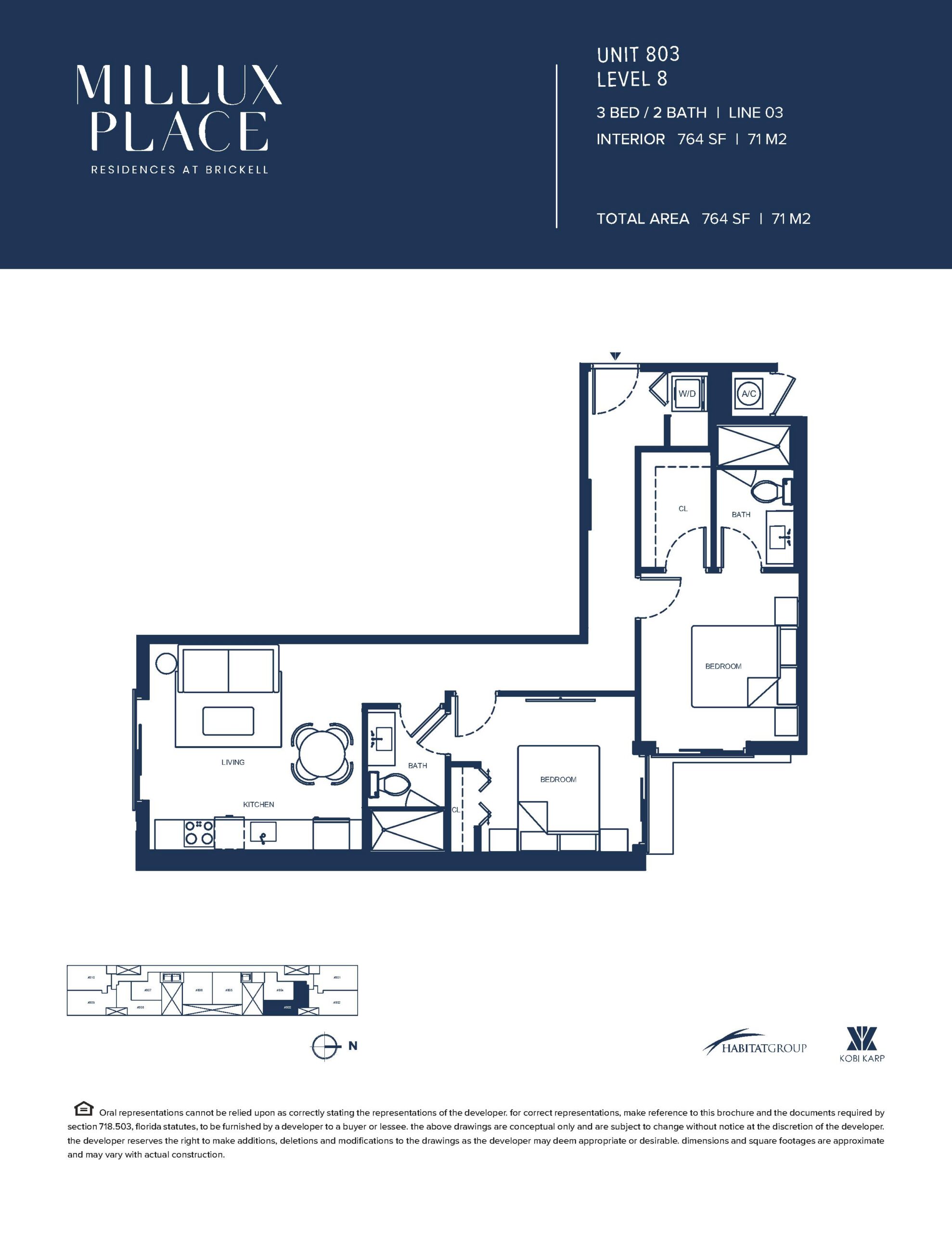 Millux Place introduces a refined boutique presence in the heart of Brickell, rising eight stories with 99 luxury residences designed for contemporary urban living. Conceived as a mixed use condo lodging property, the building is fully finished and furnished, offering turnkey residences that blend residential comfort with hospitality level convenience. Short term rentals are permitted and supported by on site hospitality management, creating flexibility for owners while maintaining a cohesive residential experience. Designed by Kobi Karp and developed by Habitat Group in collaboration with BI Group USA, Millux Place reflects a modern architectural aesthetic tailored to Brickell’s dynamic skyline. Its prime location within the neighborhood places residents at the center of Miami’s financial and cultural energy while maintaining the scale and intimacy of a boutique address.Residences feature open concept floor plans that range from studios to one, two, and three bedroom layouts. Each home is delivered fully furnished and thoughtfully appointed with marble countertops, stainless steel appliances, and custom Italian cabinetry that brings a clean, contemporary finish to the kitchens. Floor to ceiling impact resistant windows fill the interiors with natural light, while private balconies enclosed with glass railings extend the living space outdoors. Bathrooms are designed with frameless glass showers and Italian cabinetry, reinforcing a cohesive modern aesthetic. Every residence includes a washer and dryer along with a high efficiency central air conditioning and heating system, ensuring comfort and functionality throughout the year. The result is a collection of homes that feel polished, efficient, and move in ready from day one.