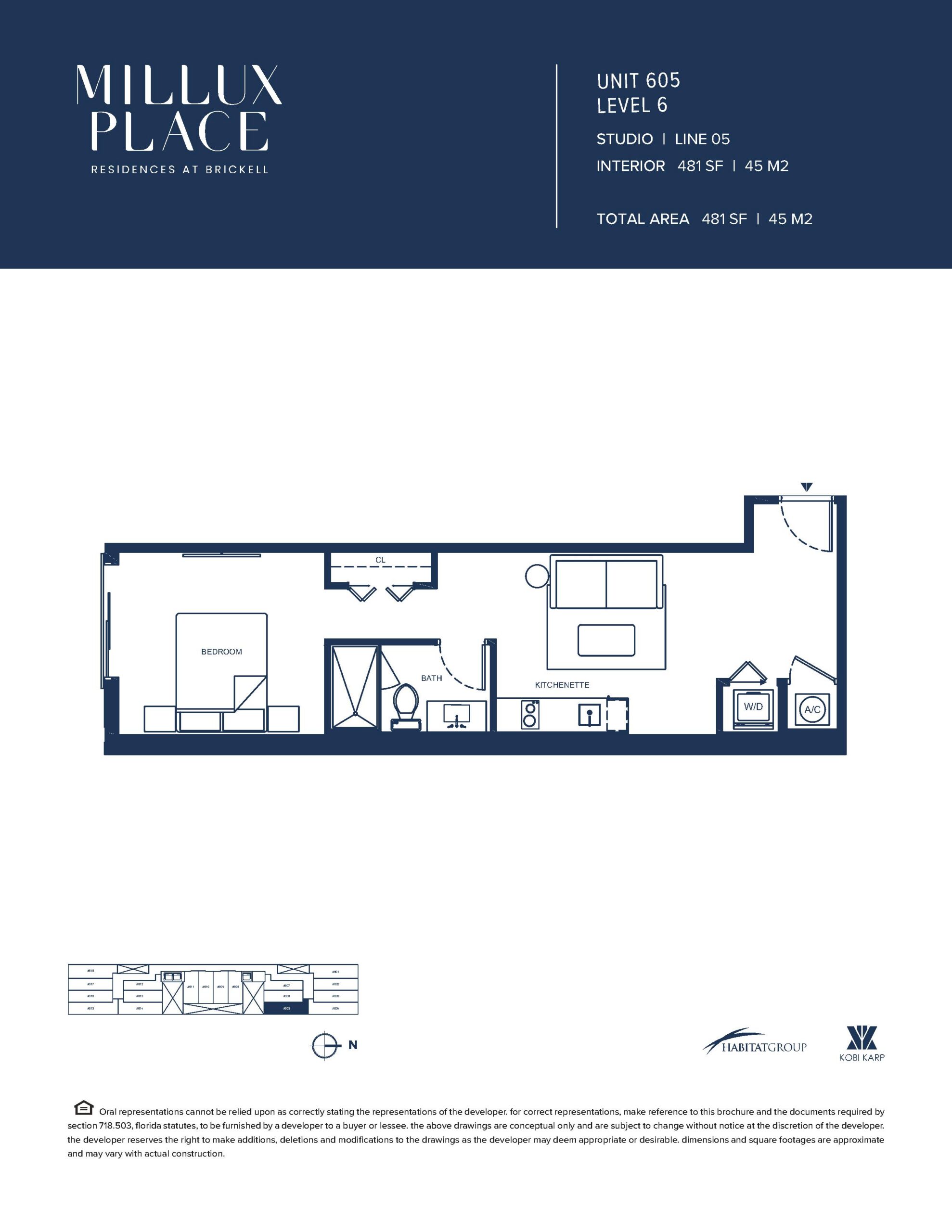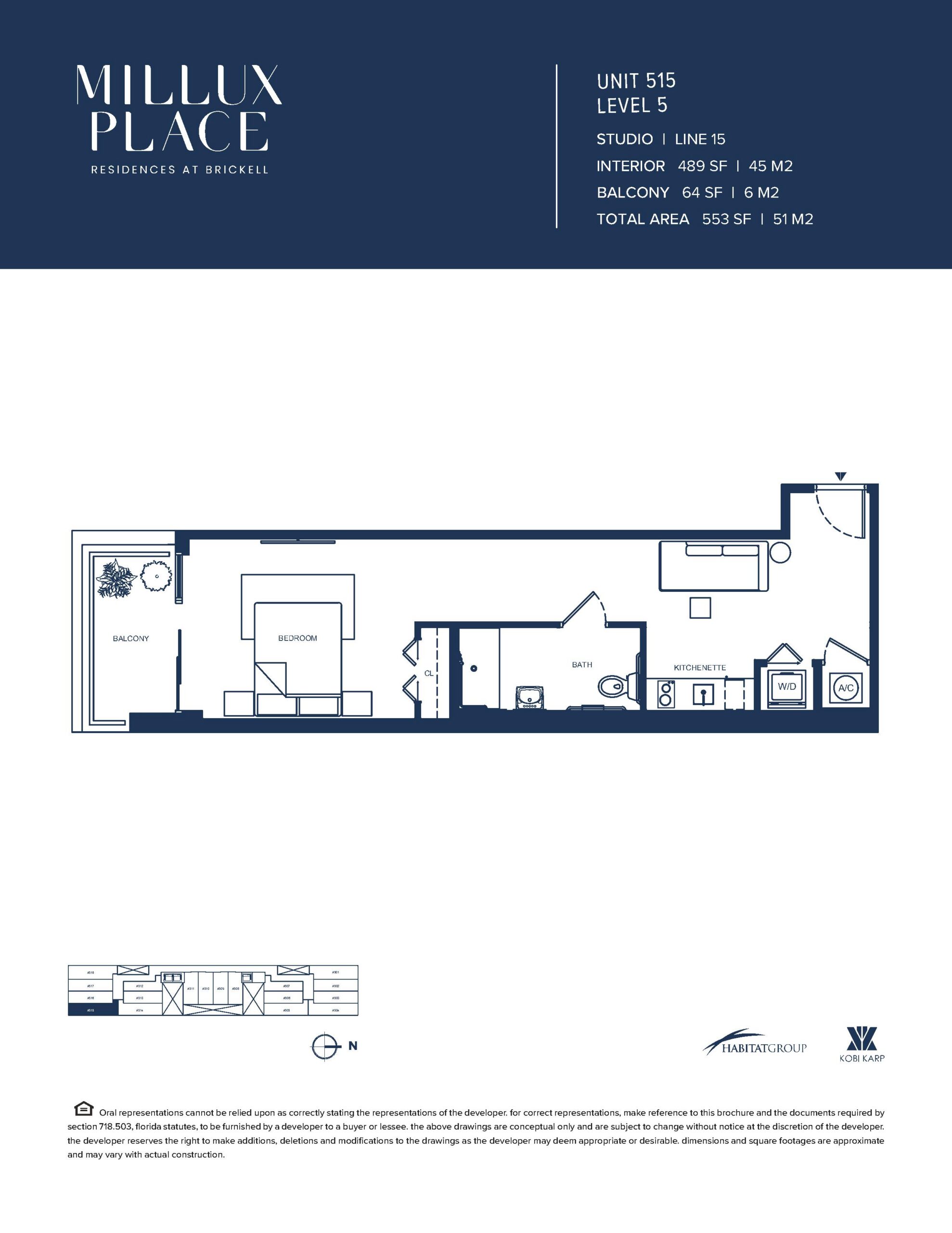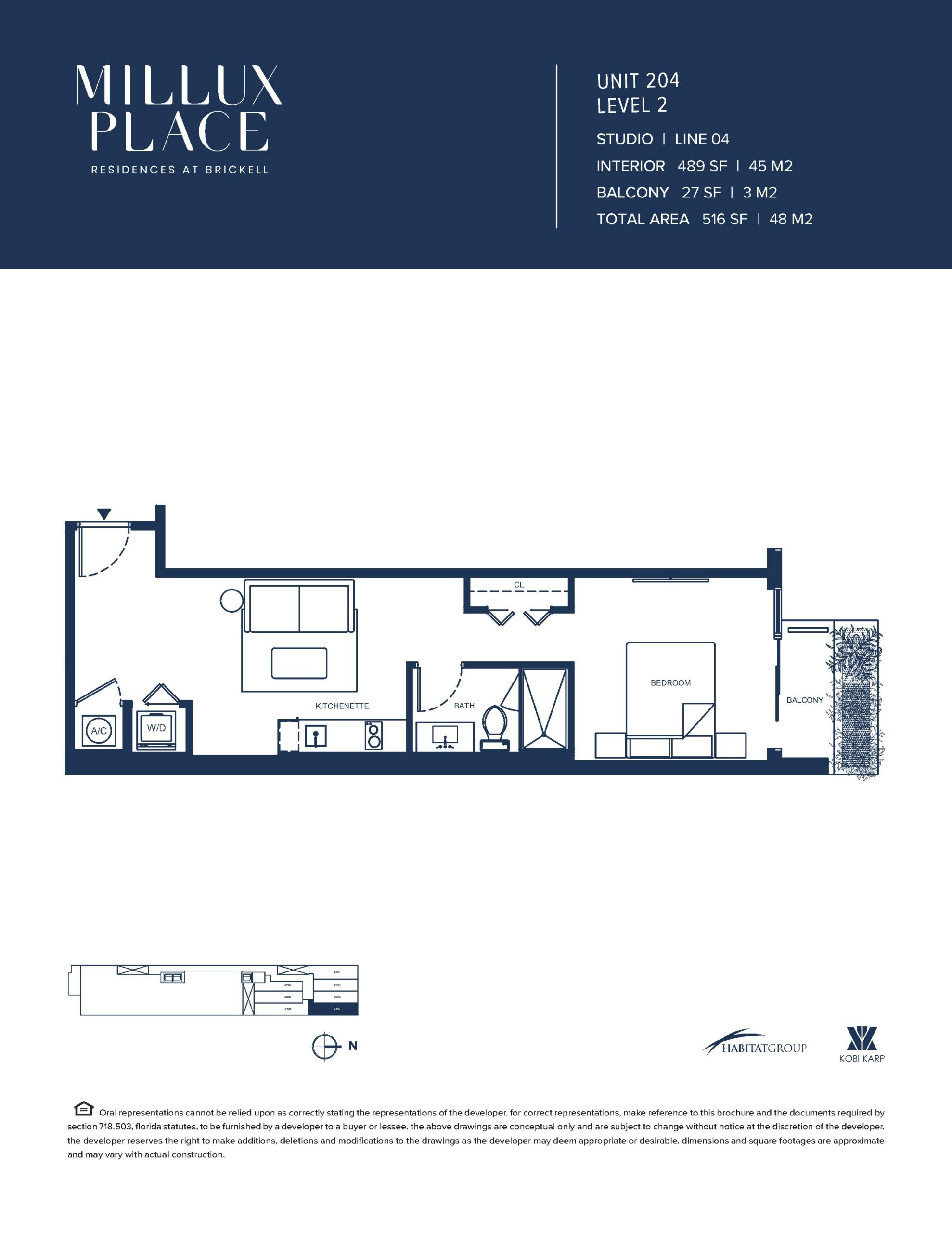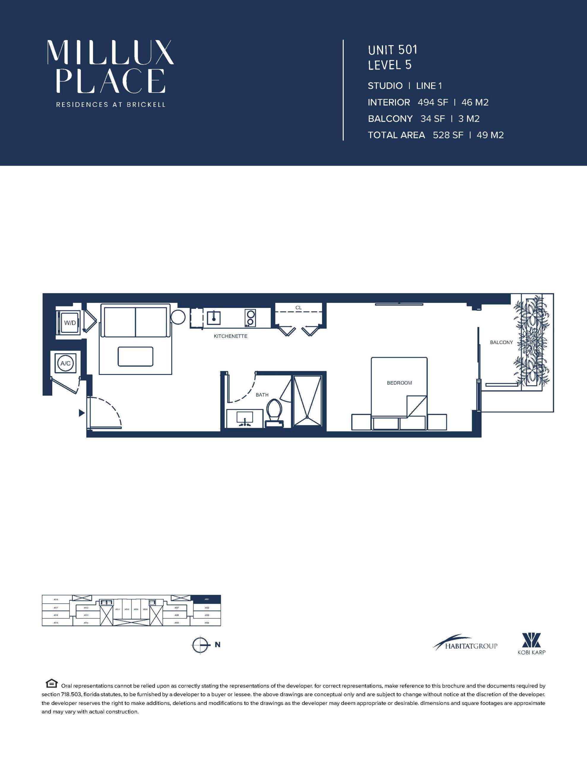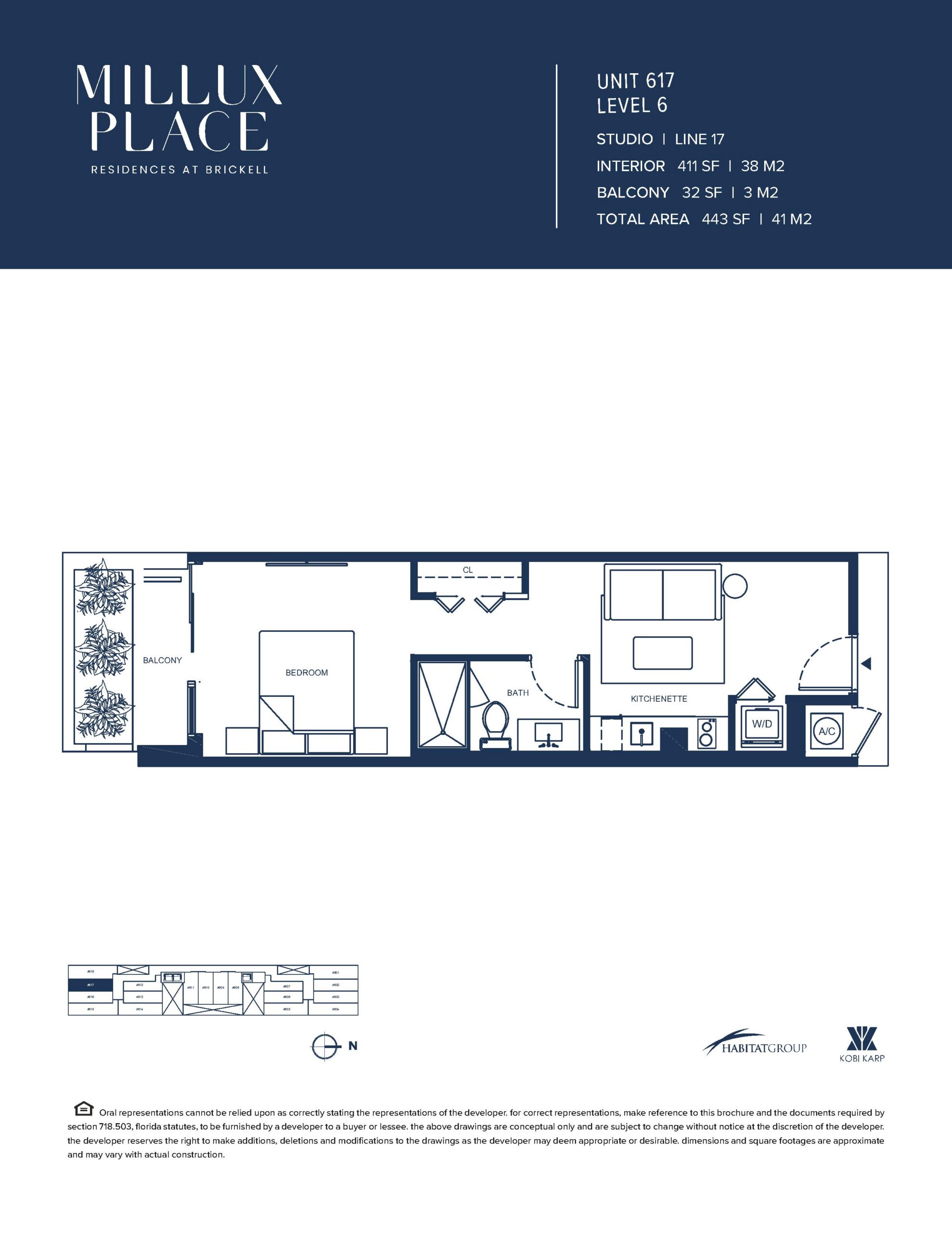 Millux Place introduces a refined boutique presence in the heart of Brickell, rising eight stories with 99 luxury residences designed for contemporary urban living. Conceived as a mixed use condo lodging property, the building is fully finished and furnished, offering turnkey residences that blend residential comfort with hospitality level convenience. Short term rentals are permitted and supported by on site hospitality management, creating flexibility for owners while maintaining a cohesive residential experience. Designed by Kobi Karp and developed by Habitat Group in collaboration with BI Group USA, Millux Place reflects a modern architectural aesthetic tailored to Brickell’s dynamic skyline. Its prime location within the neighborhood places residents at the center of Miami’s financial and cultural energy while maintaining the scale and intimacy of a boutique address.Residences feature open concept floor plans that range from studios to one, two, and three bedroom layouts. Each home is delivered fully furnished and thoughtfully appointed with marble countertops, stainless steel appliances, and custom Italian cabinetry that brings a clean, contemporary finish to the kitchens. Floor to ceiling impact resistant windows fill the interiors with natural light, while private balconies enclosed with glass railings extend the living space outdoors. Bathrooms are designed with frameless glass showers and Italian cabinetry, reinforcing a cohesive modern aesthetic. Every residence includes a washer and dryer along with a high efficiency central air conditioning and heating system, ensuring comfort and functionality throughout the year. The result is a collection of homes that feel polished, efficient, and move in ready from day one.