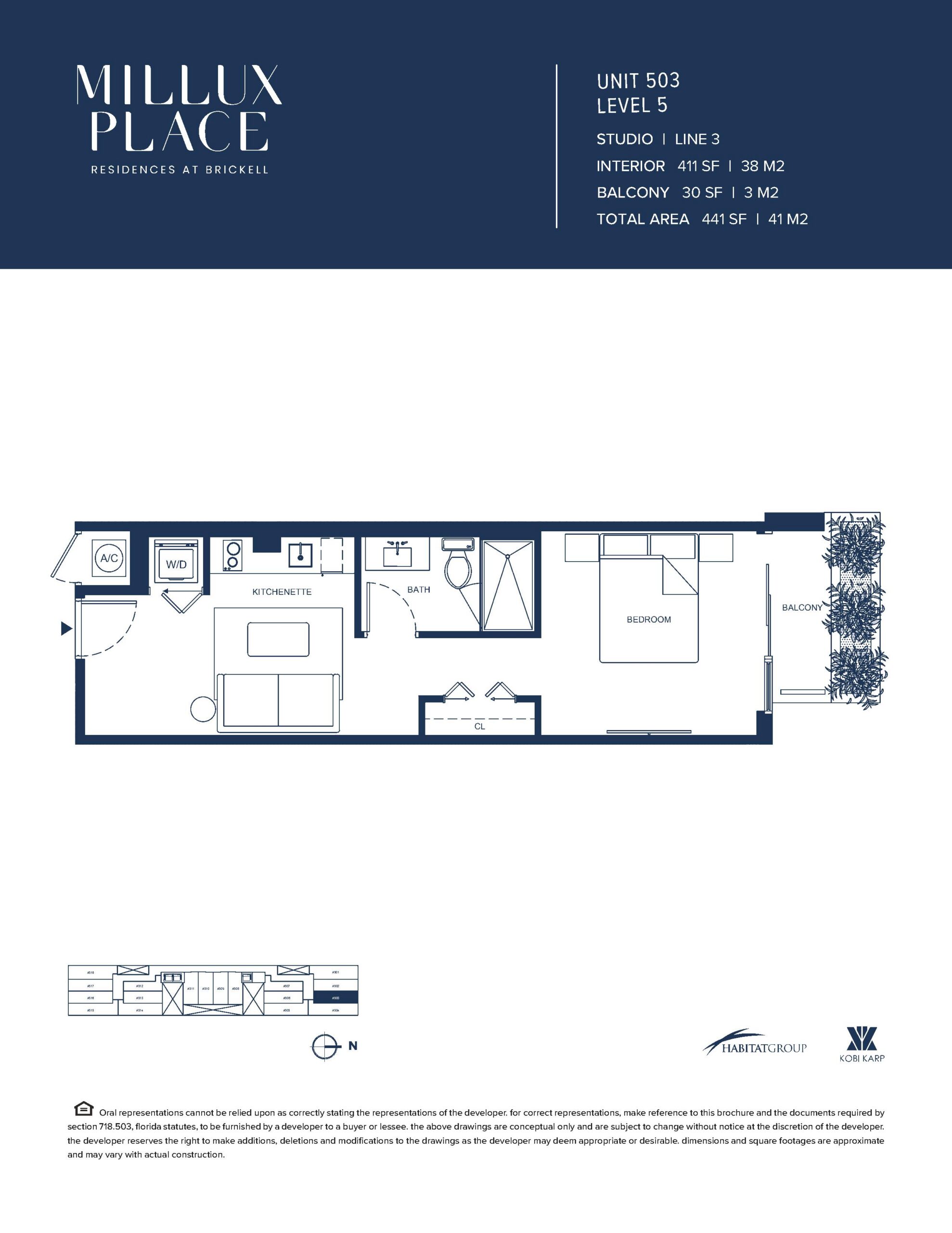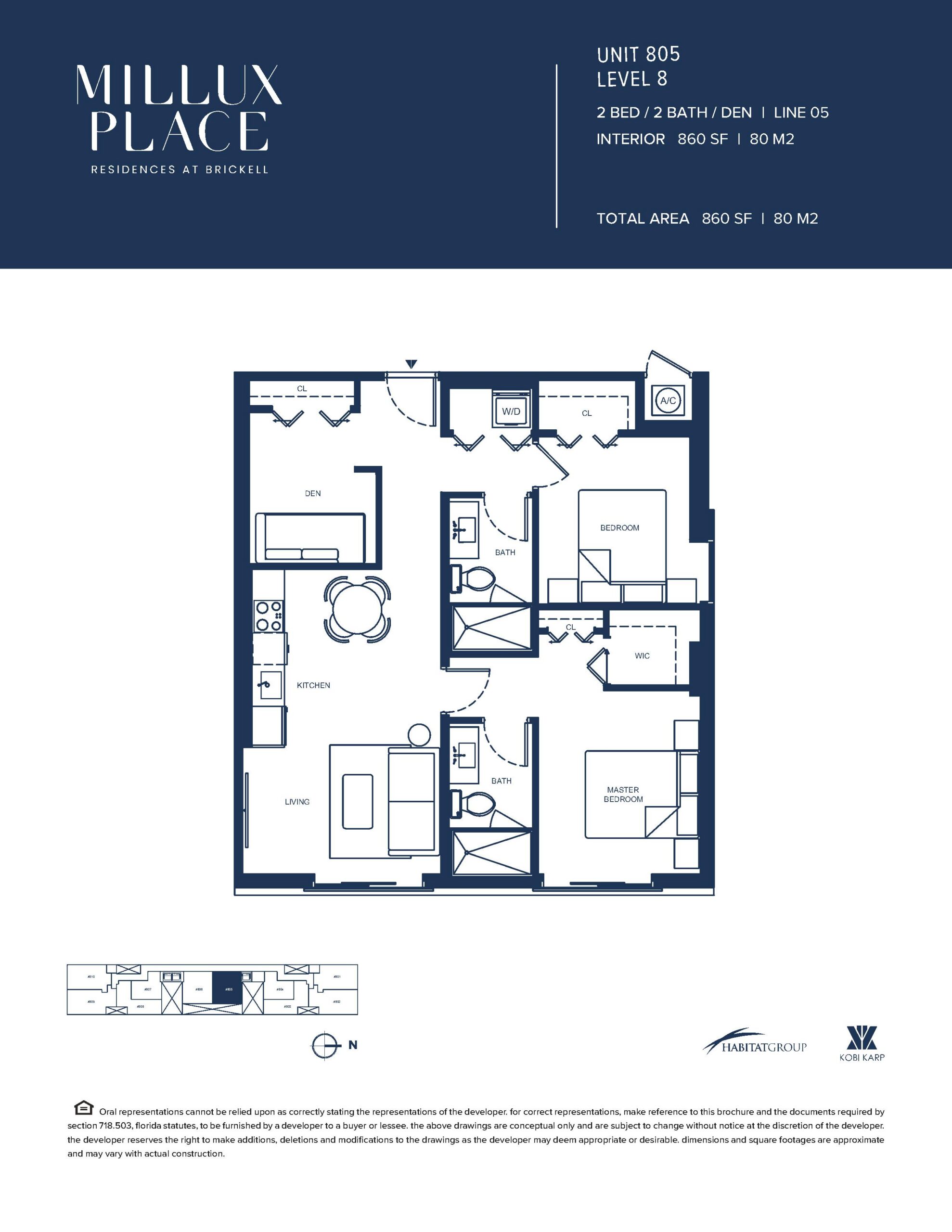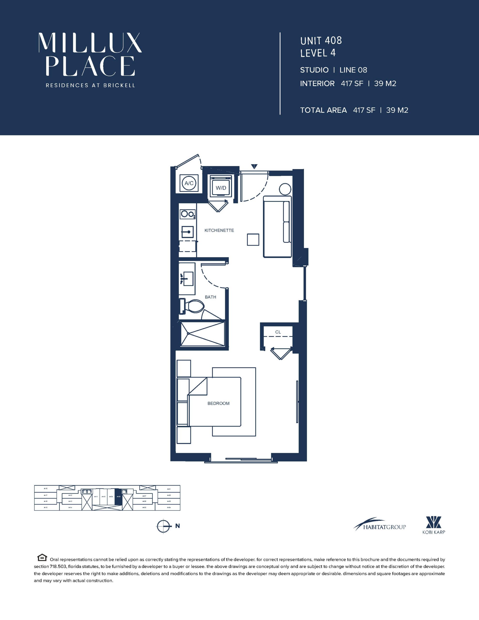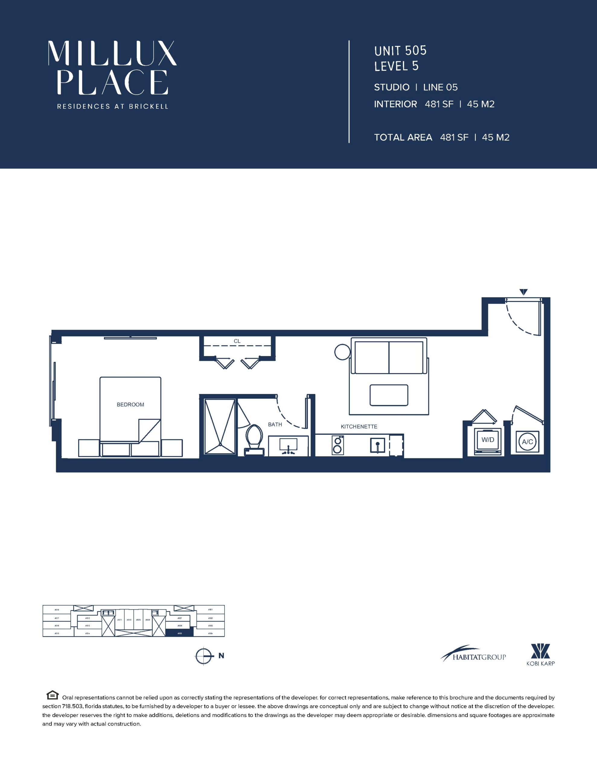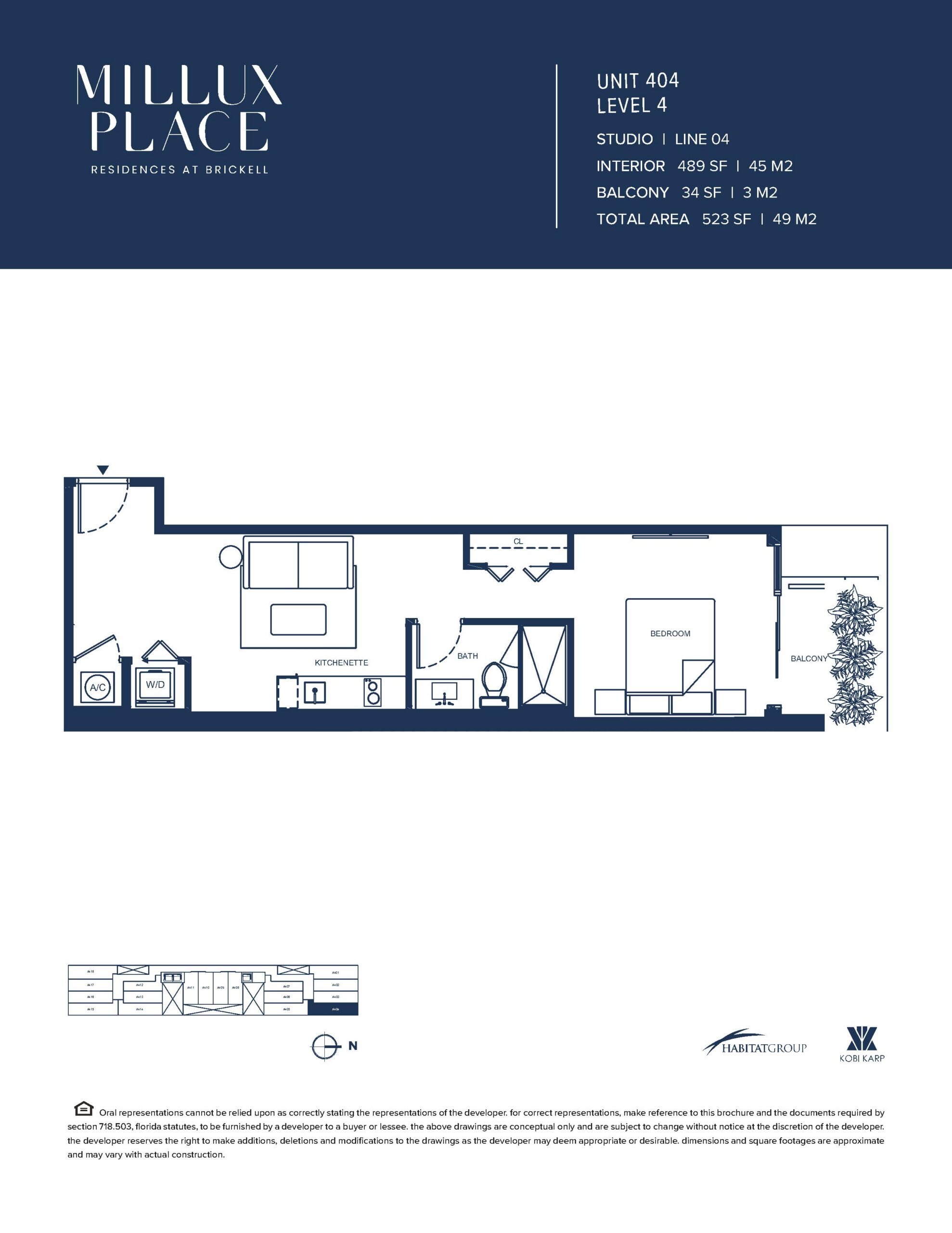 Millux Place introduces a refined boutique presence in the heart of Brickell, rising eight stories with 99 luxury residences designed for contemporary urban living. Conceived as a mixed use condo lodging property, the building is fully finished and furnished, offering turnkey residences that blend residential comfort with hospitality level convenience. Short term rentals are permitted and supported by on site hospitality management, creating flexibility for owners while maintaining a cohesive residential experience. Designed by Kobi Karp and developed by Habitat Group in collaboration with BI Group USA, Millux Place reflects a modern architectural aesthetic tailored to Brickell’s dynamic skyline. Its prime location within the neighborhood places residents at the center of Miami’s financial and cultural energy while maintaining the scale and intimacy of a boutique address.Residences feature open concept floor plans that range from studios to one, two, and three bedroom layouts. Each home is delivered fully furnished and thoughtfully appointed with marble countertops, stainless steel appliances, and custom Italian cabinetry that brings a clean, contemporary finish to the kitchens. Floor to ceiling impact resistant windows fill the interiors with natural light, while private balconies enclosed with glass railings extend the living space outdoors. Bathrooms are designed with frameless glass showers and Italian cabinetry, reinforcing a cohesive modern aesthetic. Every residence includes a washer and dryer along with a high efficiency central air conditioning and heating system, ensuring comfort and functionality throughout the year. The result is a collection of homes that feel polished, efficient, and move in ready from day one.