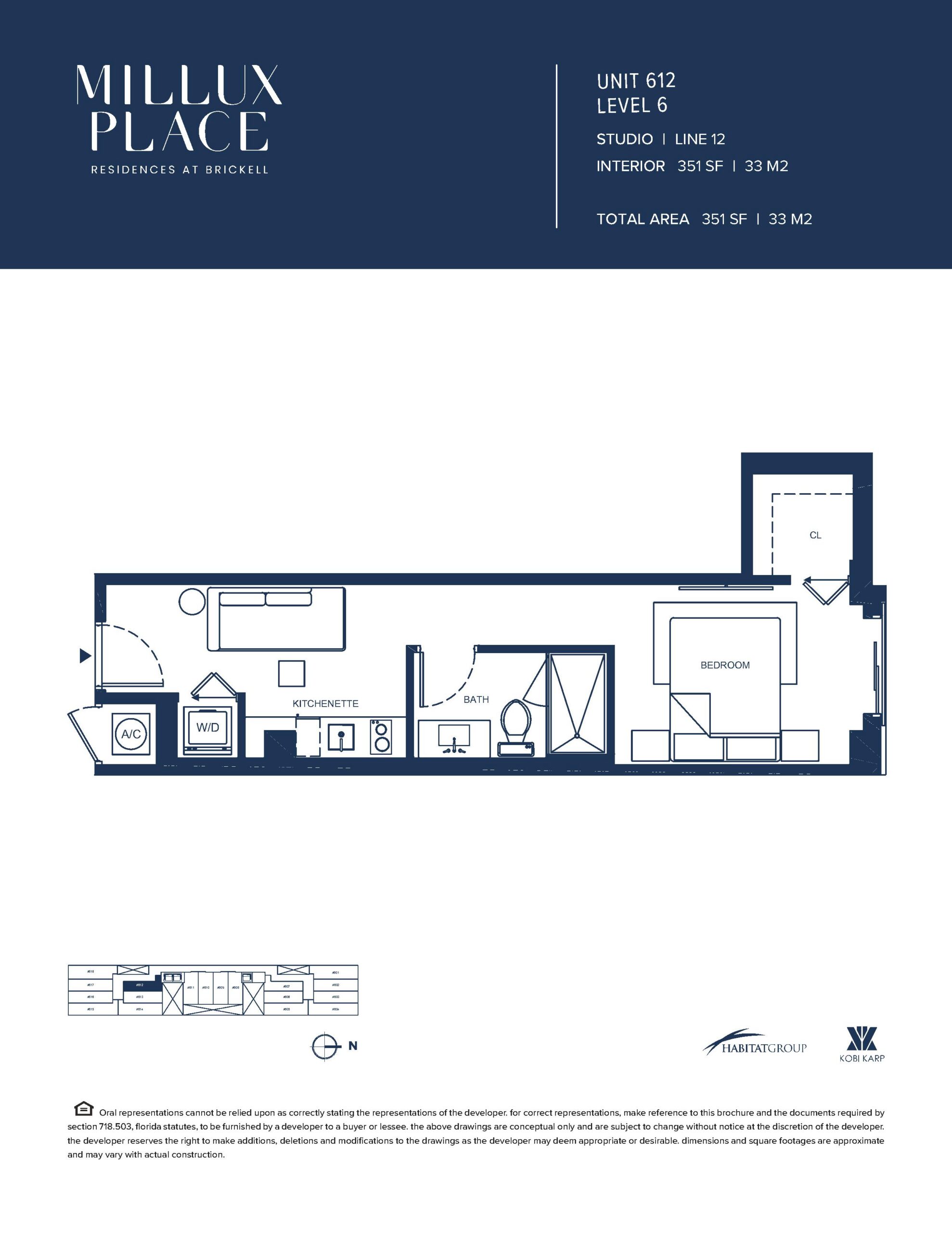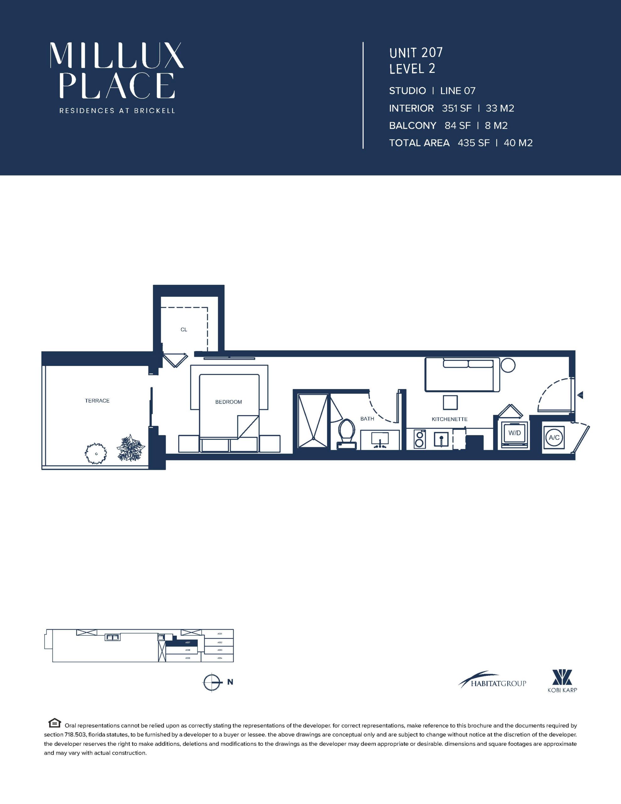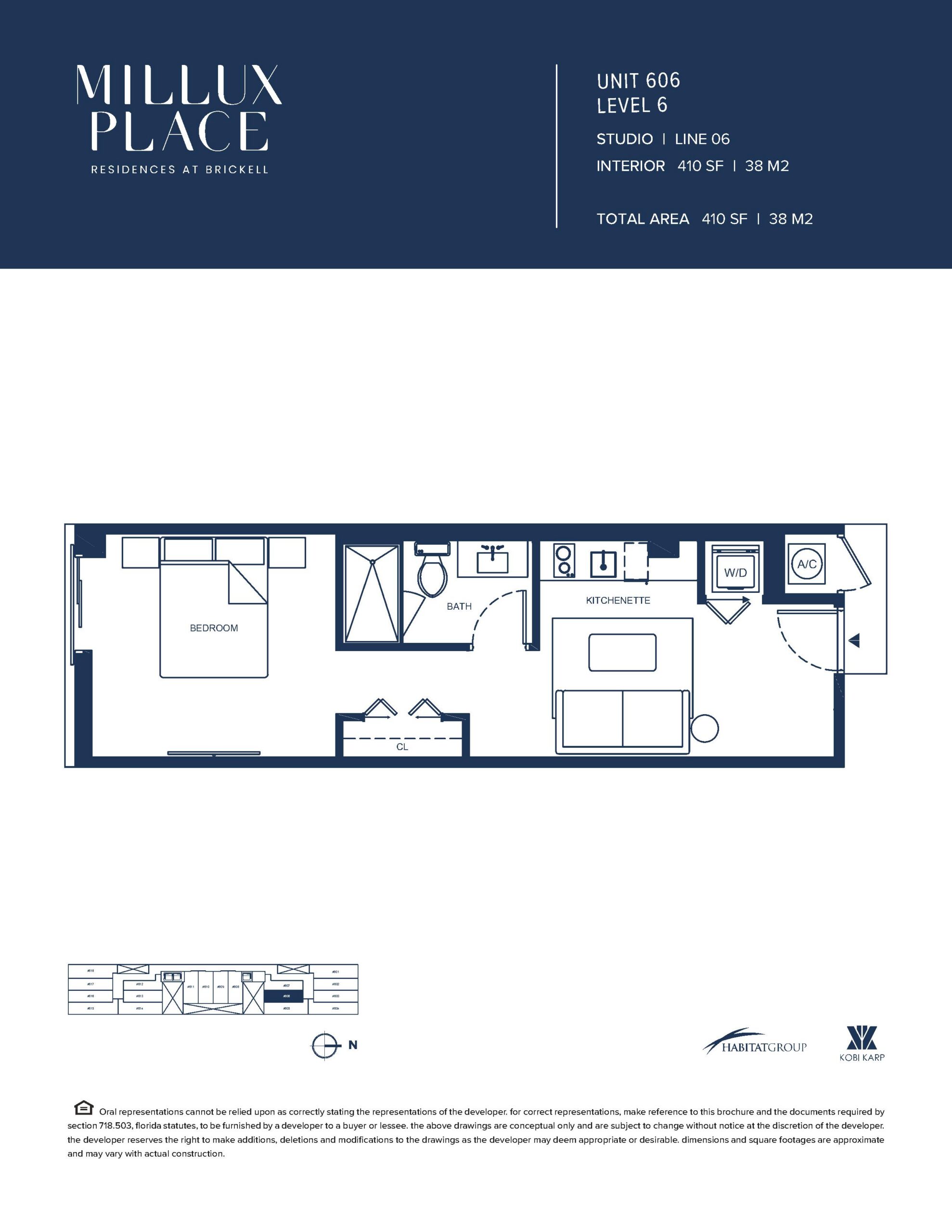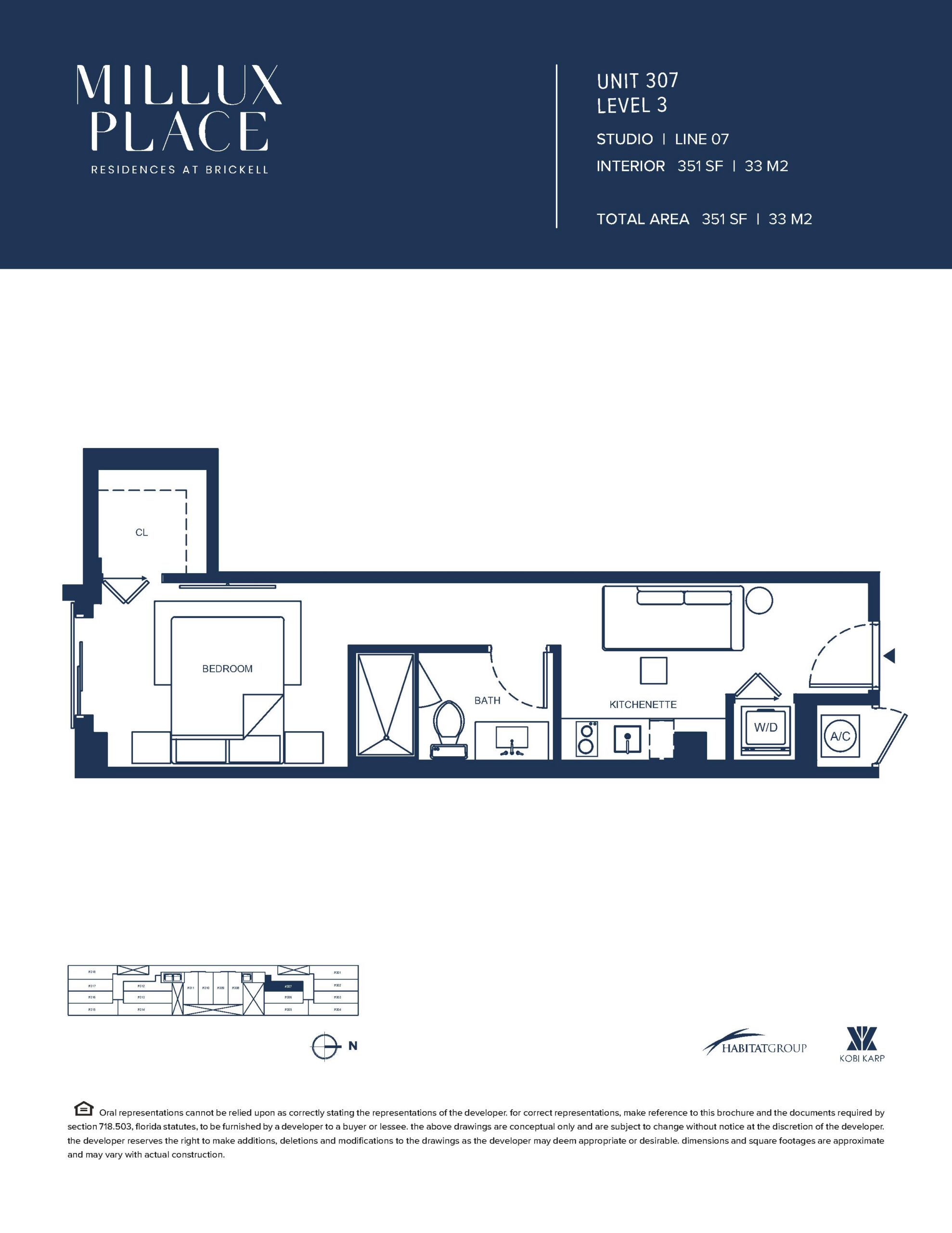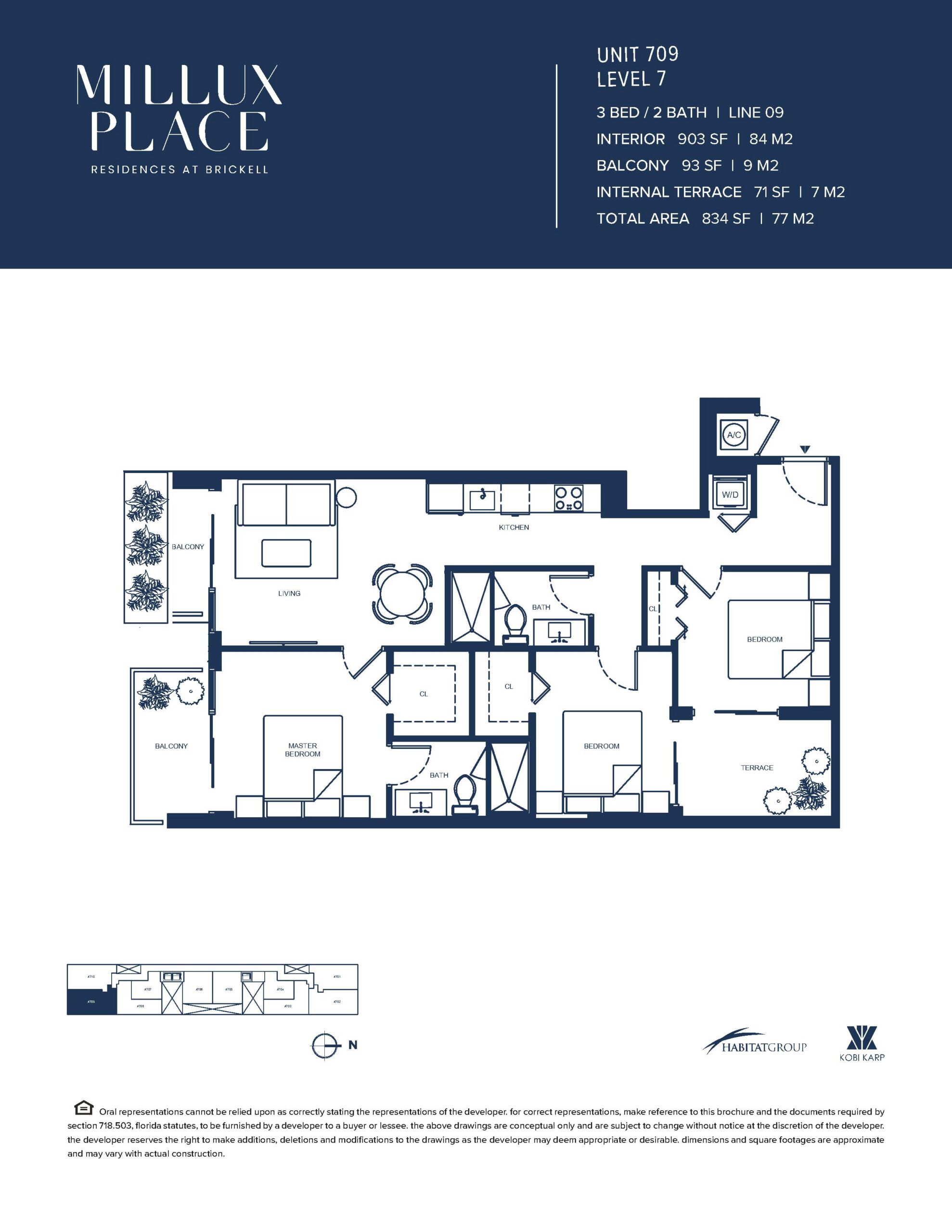 Millux Place introduces a refined boutique presence in the heart of Brickell, rising eight stories with 99 luxury residences designed for contemporary urban living. Conceived as a mixed use condo lodging property, the building is fully finished and furnished, offering turnkey residences that blend residential comfort with hospitality level convenience. Short term rentals are permitted and supported by on site hospitality management, creating flexibility for owners while maintaining a cohesive residential experience. Designed by Kobi Karp and developed by Habitat Group in collaboration with BI Group USA, Millux Place reflects a modern architectural aesthetic tailored to Brickell’s dynamic skyline. Its prime location within the neighborhood places residents at the center of Miami’s financial and cultural energy while maintaining the scale and intimacy of a boutique address.Residences feature open concept floor plans that range from studios to one, two, and three bedroom layouts. Each home is delivered fully furnished and thoughtfully appointed with marble countertops, stainless steel appliances, and custom Italian cabinetry that brings a clean, contemporary finish to the kitchens. Floor to ceiling impact resistant windows fill the interiors with natural light, while private balconies enclosed with glass railings extend the living space outdoors. Bathrooms are designed with frameless glass showers and Italian cabinetry, reinforcing a cohesive modern aesthetic. Every residence includes a washer and dryer along with a high efficiency central air conditioning and heating system, ensuring comfort and functionality throughout the year. The result is a collection of homes that feel polished, efficient, and move in ready from day one.