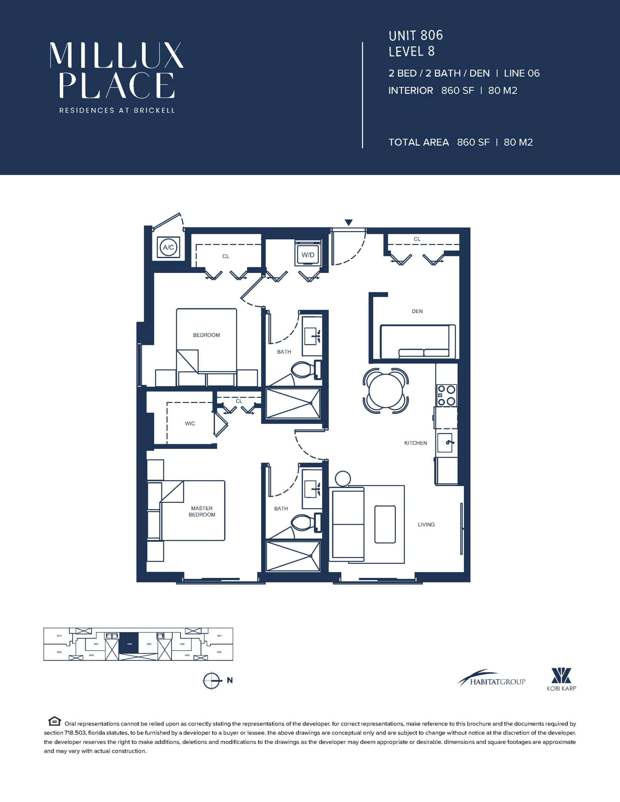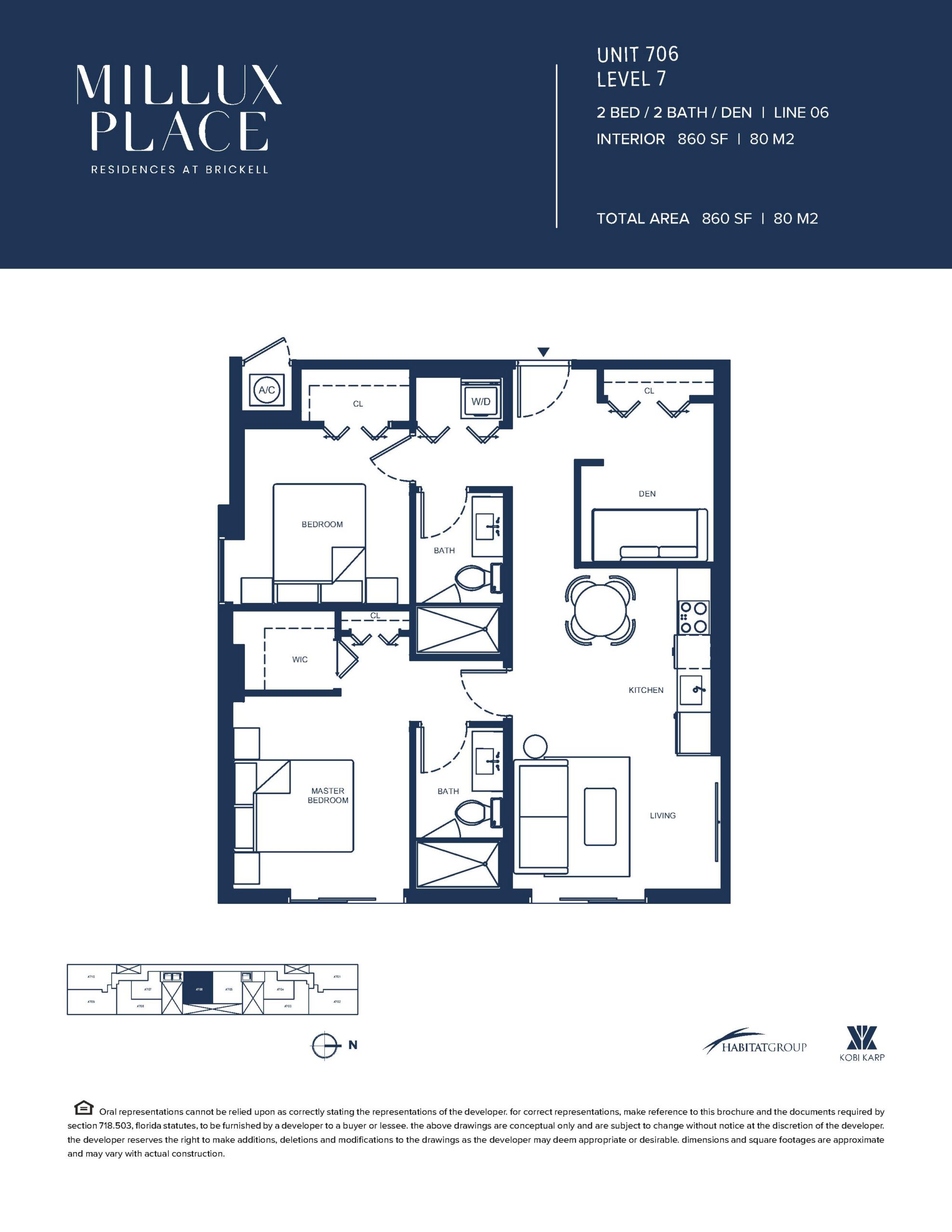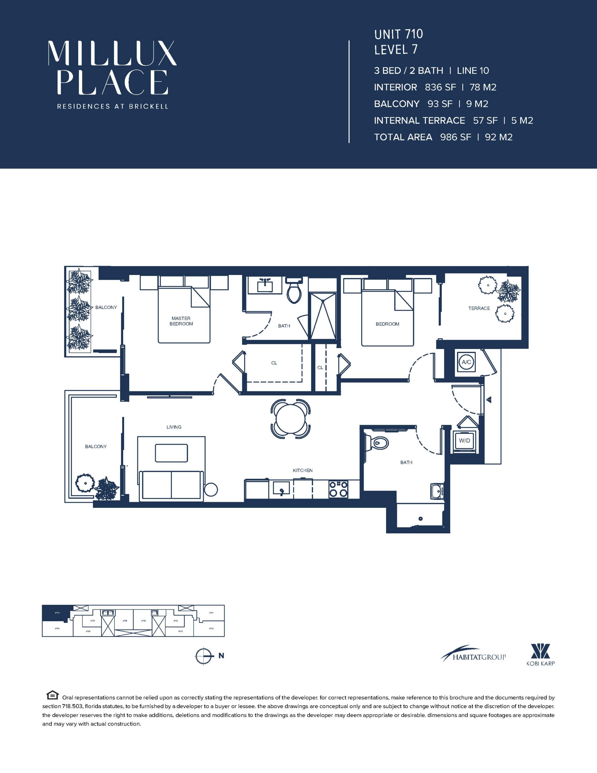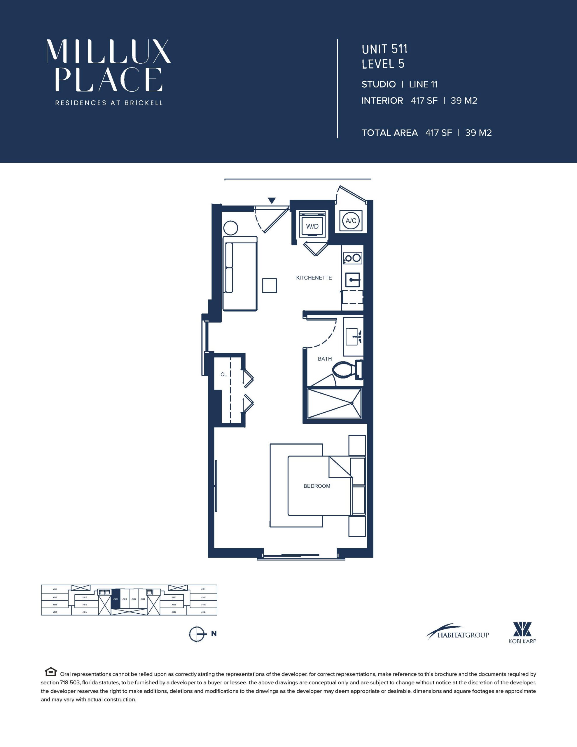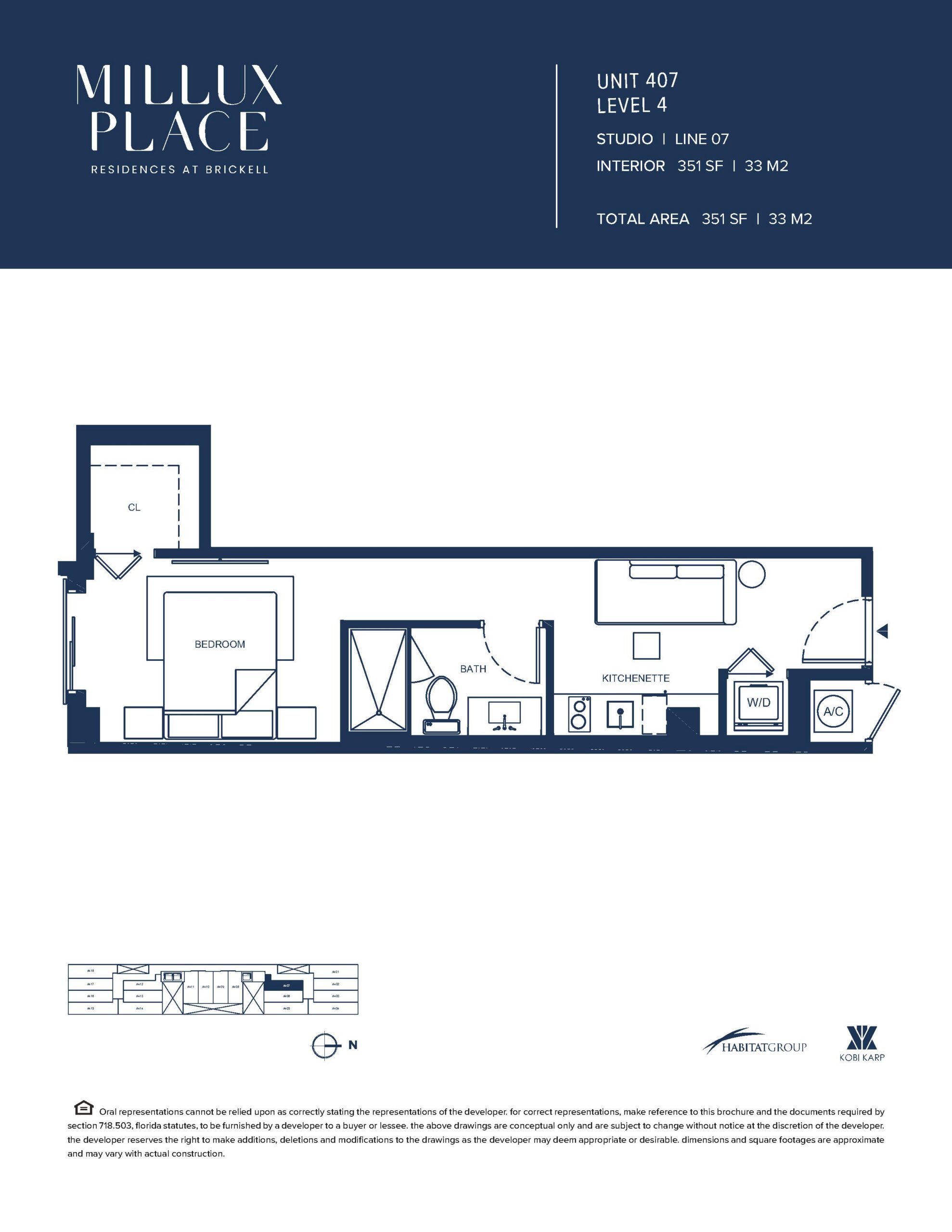 Millux Place introduces a refined boutique presence in the heart of Brickell, rising eight stories with 99 luxury residences designed for contemporary urban living. Conceived as a mixed use condo lodging property, the building is fully finished and furnished, offering turnkey residences that blend residential comfort with hospitality level convenience. Short term rentals are permitted and supported by on site hospitality management, creating flexibility for owners while maintaining a cohesive residential experience. Designed by Kobi Karp and developed by Habitat Group in collaboration with BI Group USA, Millux Place reflects a modern architectural aesthetic tailored to Brickell’s dynamic skyline. Its prime location within the neighborhood places residents at the center of Miami’s financial and cultural energy while maintaining the scale and intimacy of a boutique address.Residences feature open concept floor plans that range from studios to one, two, and three bedroom layouts. Each home is delivered fully furnished and thoughtfully appointed with marble countertops, stainless steel appliances, and custom Italian cabinetry that brings a clean, contemporary finish to the kitchens. Floor to ceiling impact resistant windows fill the interiors with natural light, while private balconies enclosed with glass railings extend the living space outdoors. Bathrooms are designed with frameless glass showers and Italian cabinetry, reinforcing a cohesive modern aesthetic. Every residence includes a washer and dryer along with a high efficiency central air conditioning and heating system, ensuring comfort and functionality throughout the year. The result is a collection of homes that feel polished, efficient, and move in ready from day one.
