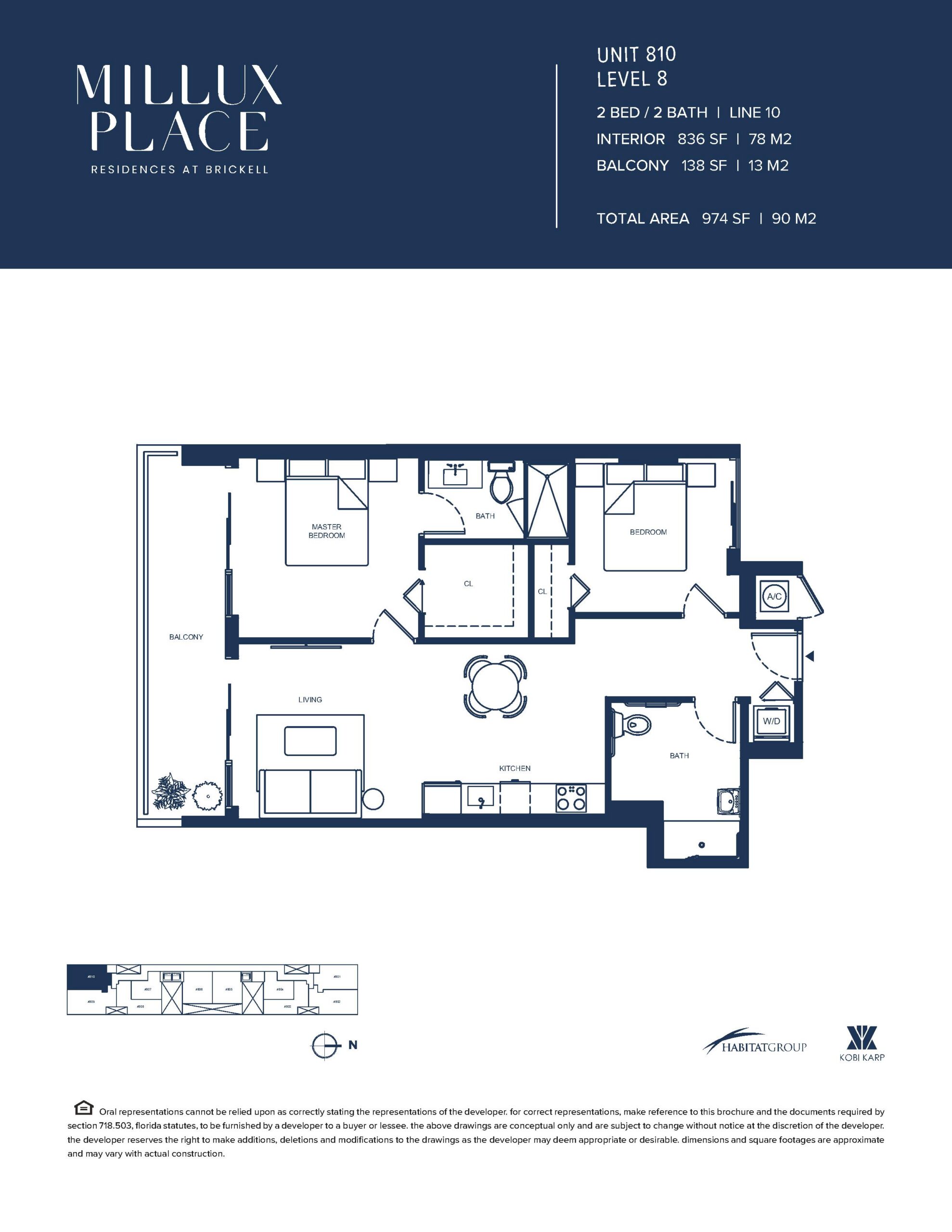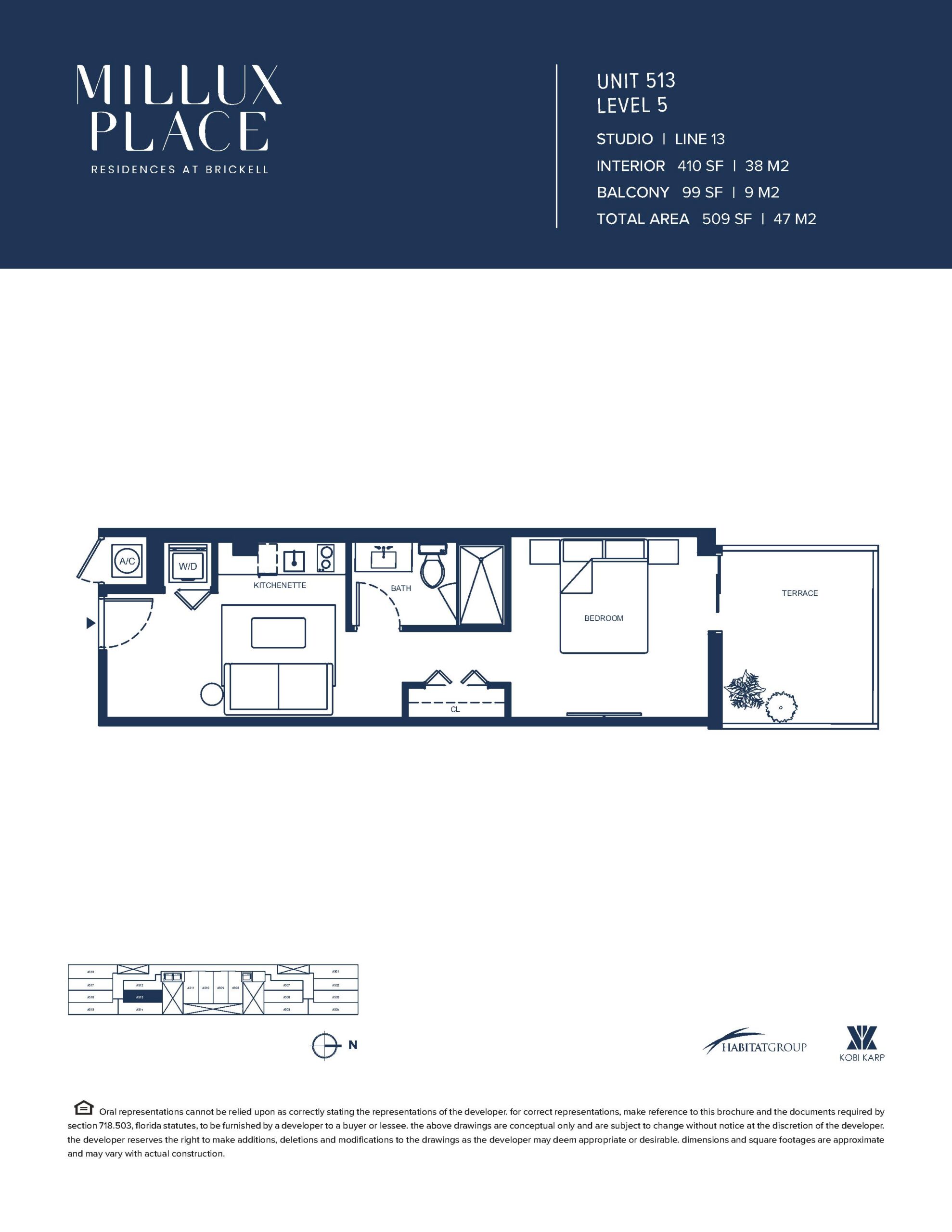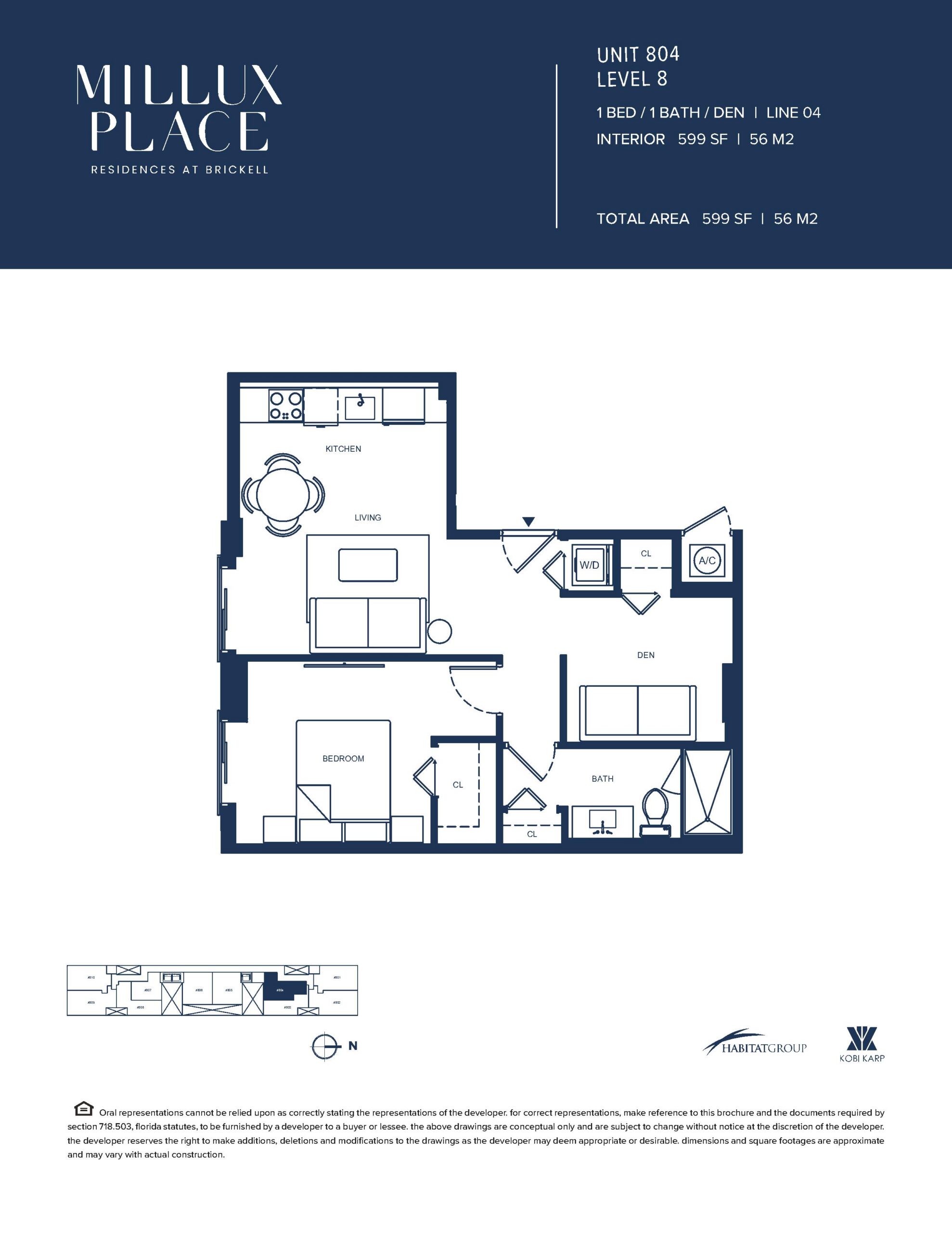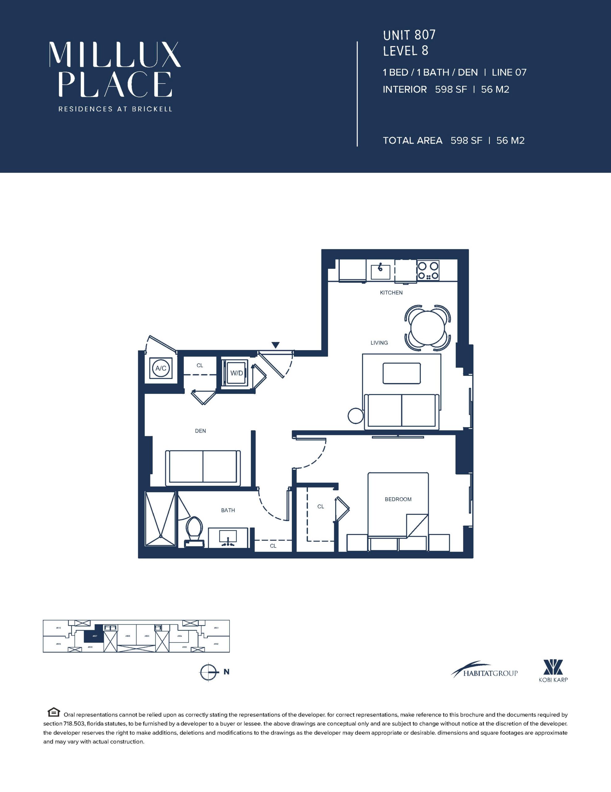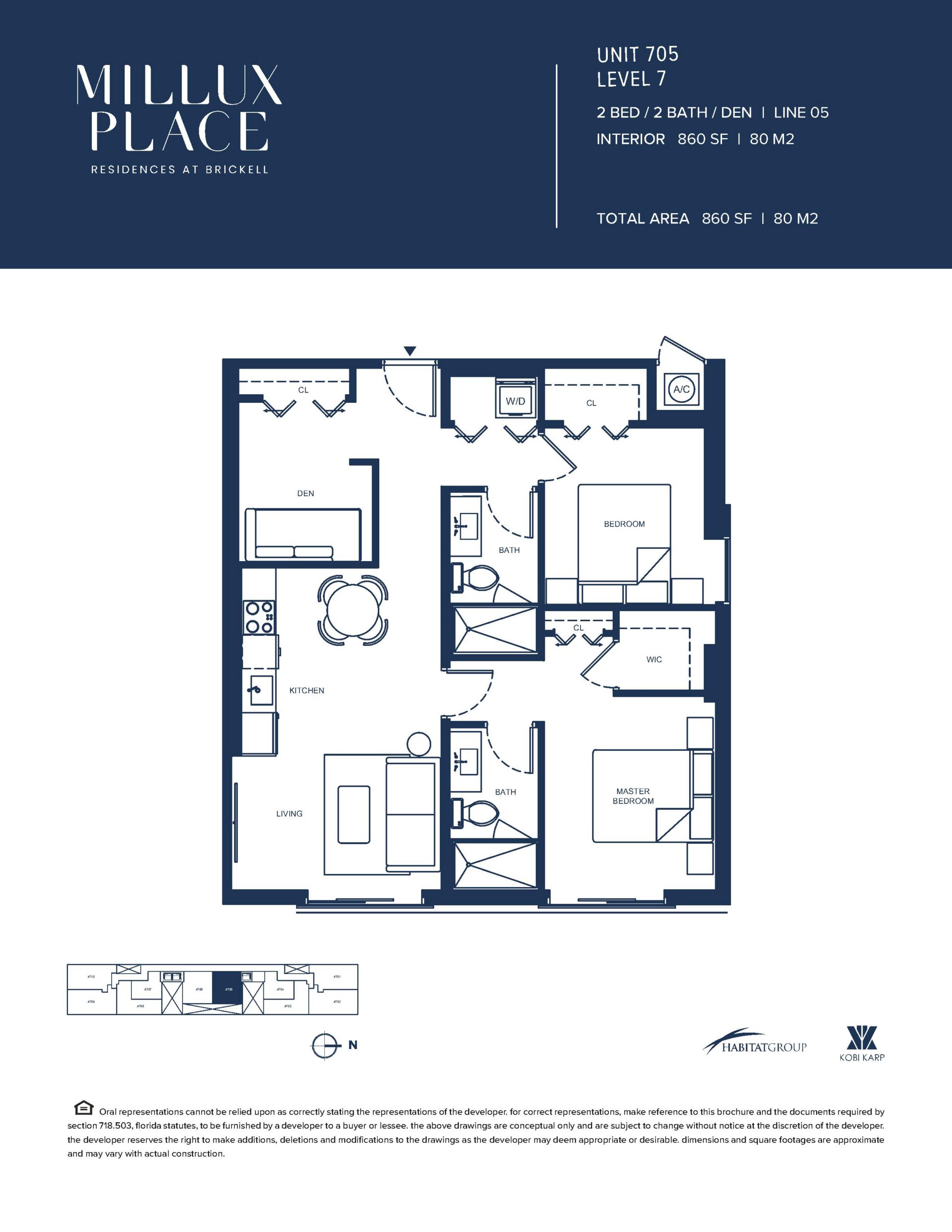 Millux Place introduces a refined boutique presence in the heart of Brickell, rising eight stories with 99 luxury residences designed for contemporary urban living. Conceived as a mixed use condo lodging property, the building is fully finished and furnished, offering turnkey residences that blend residential comfort with hospitality level convenience. Short term rentals are permitted and supported by on site hospitality management, creating flexibility for owners while maintaining a cohesive residential experience. Designed by Kobi Karp and developed by Habitat Group in collaboration with BI Group USA, Millux Place reflects a modern architectural aesthetic tailored to Brickell’s dynamic skyline. Its prime location within the neighborhood places residents at the center of Miami’s financial and cultural energy while maintaining the scale and intimacy of a boutique address.Residences feature open concept floor plans that range from studios to one, two, and three bedroom layouts. Each home is delivered fully furnished and thoughtfully appointed with marble countertops, stainless steel appliances, and custom Italian cabinetry that brings a clean, contemporary finish to the kitchens. Floor to ceiling impact resistant windows fill the interiors with natural light, while private balconies enclosed with glass railings extend the living space outdoors. Bathrooms are designed with frameless glass showers and Italian cabinetry, reinforcing a cohesive modern aesthetic. Every residence includes a washer and dryer along with a high efficiency central air conditioning and heating system, ensuring comfort and functionality throughout the year. The result is a collection of homes that feel polished, efficient, and move in ready from day one.
