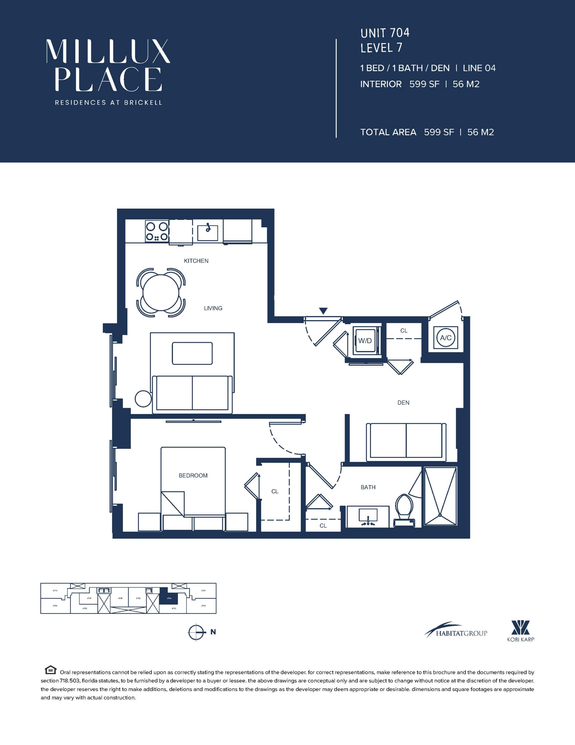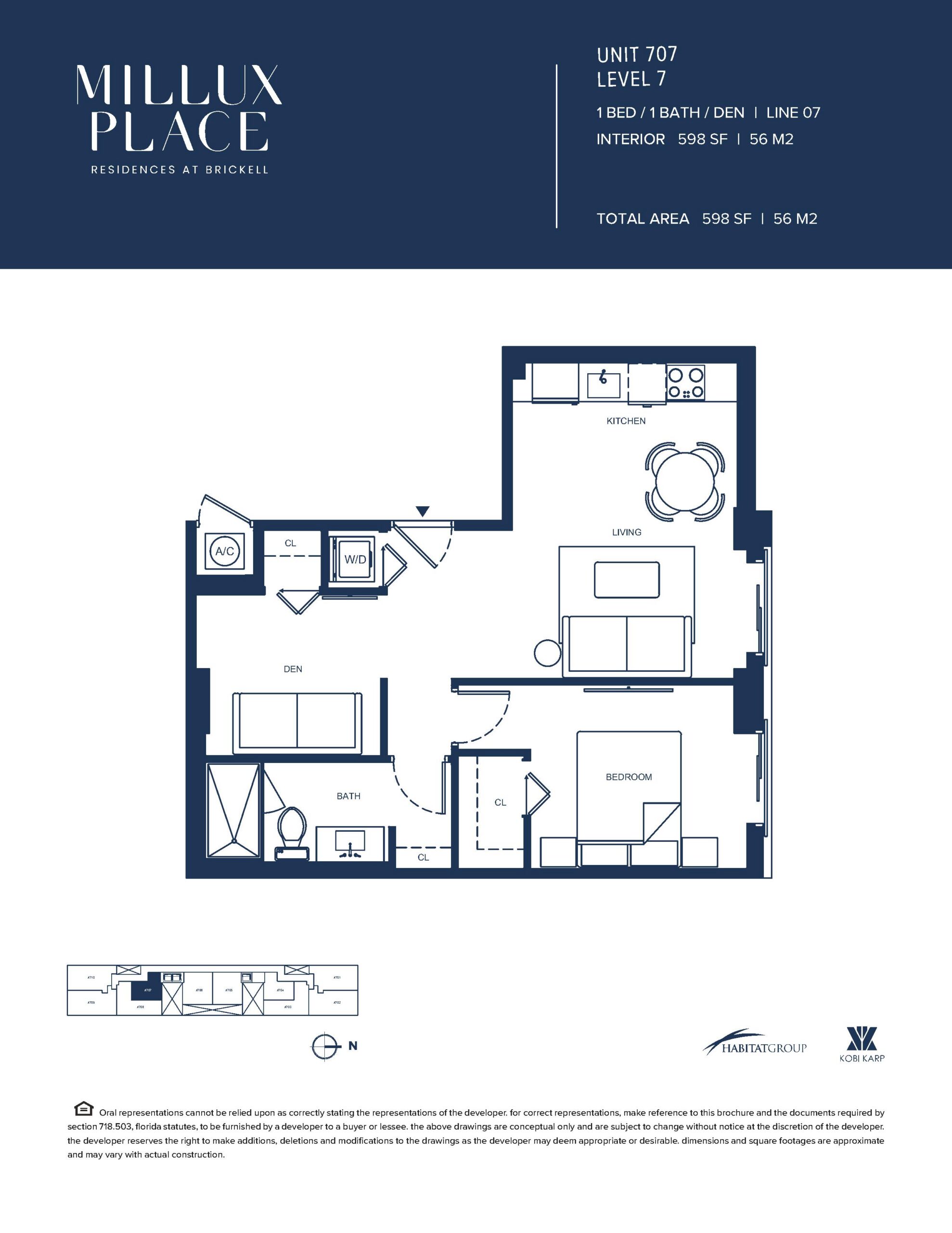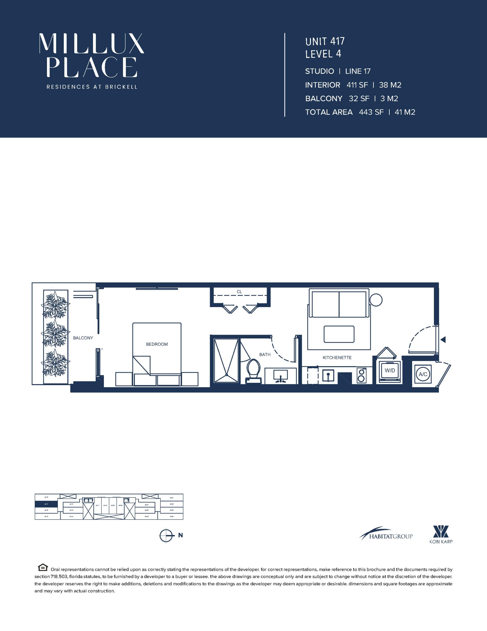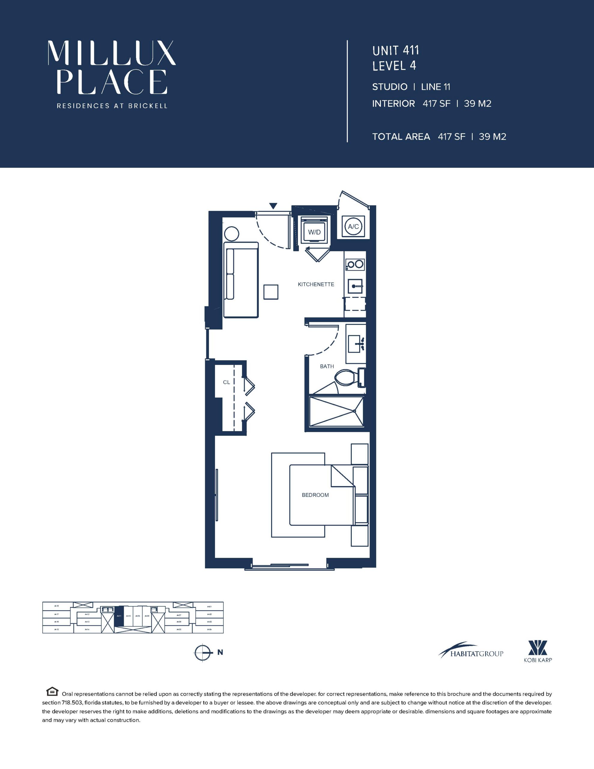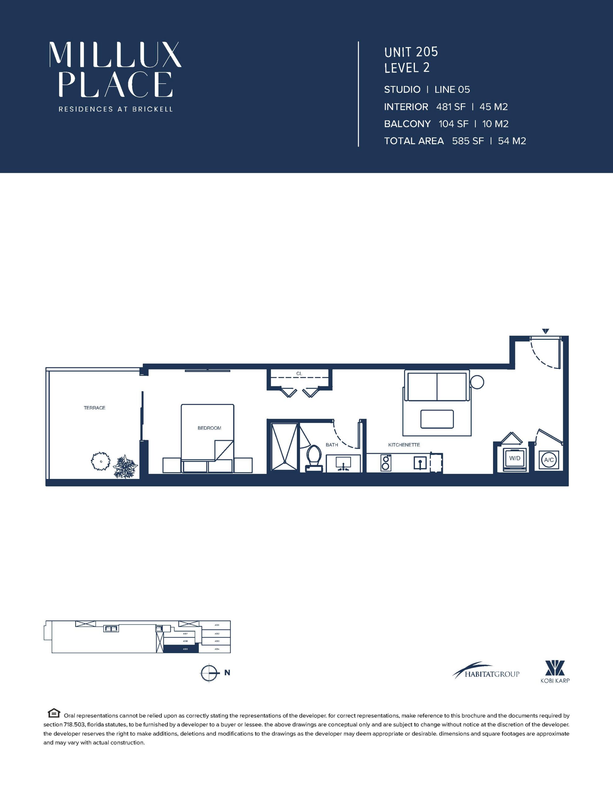 Millux Place introduces a refined boutique presence in the heart of Brickell, rising eight stories with 99 luxury residences designed for contemporary urban living. Conceived as a mixed use condo lodging property, the building is fully finished and furnished, offering turnkey residences that blend residential comfort with hospitality level convenience. Short term rentals are permitted and supported by on site hospitality management, creating flexibility for owners while maintaining a cohesive residential experience. Designed by Kobi Karp and developed by Habitat Group in collaboration with BI Group USA, Millux Place reflects a modern architectural aesthetic tailored to Brickell’s dynamic skyline. Its prime location within the neighborhood places residents at the center of Miami’s financial and cultural energy while maintaining the scale and intimacy of a boutique address.Residences feature open concept floor plans that range from studios to one, two, and three bedroom layouts. Each home is delivered fully furnished and thoughtfully appointed with marble countertops, stainless steel appliances, and custom Italian cabinetry that brings a clean, contemporary finish to the kitchens. Floor to ceiling impact resistant windows fill the interiors with natural light, while private balconies enclosed with glass railings extend the living space outdoors. Bathrooms are designed with frameless glass showers and Italian cabinetry, reinforcing a cohesive modern aesthetic. Every residence includes a washer and dryer along with a high efficiency central air conditioning and heating system, ensuring comfort and functionality throughout the year. The result is a collection of homes that feel polished, efficient, and move in ready from day one.