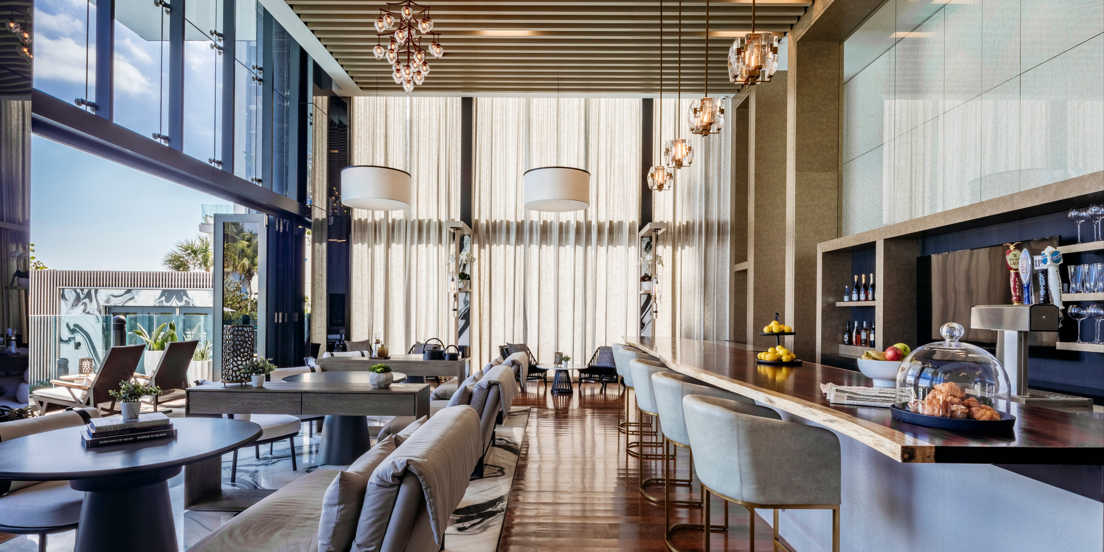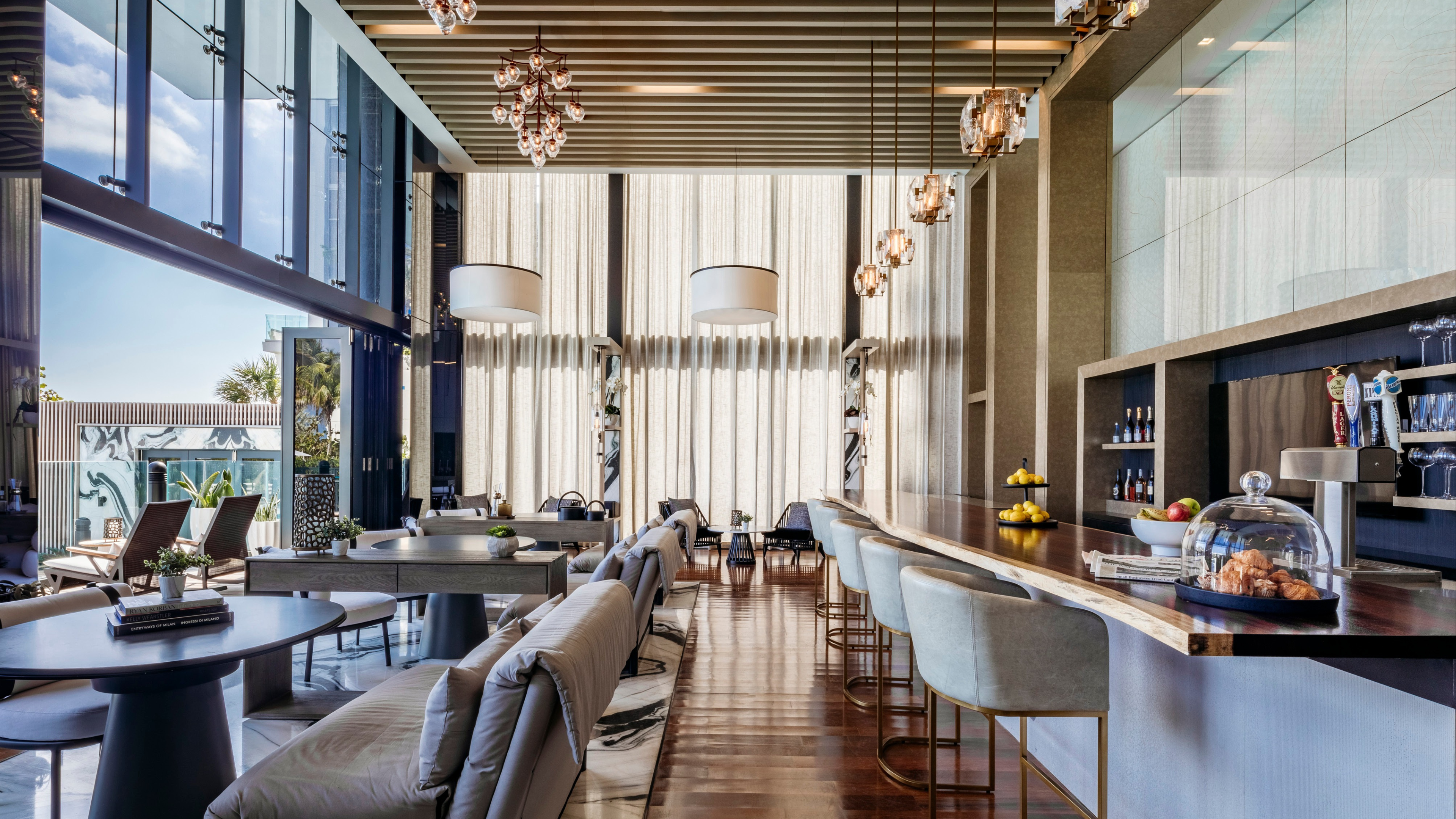 Residents of Muse Oceanfront Residences are treated to a wealth of resort-style amenities that rival those of the world's most exclusive retreats. The elegantly designed Resident's Lounge, overlooking the serene infinity pool and luxurious cabanas, provides the perfect setting for relaxation. Antrobus + Ramirez have curated the common living spaces, inviting residents to unwind in style. Exclusive access to the beach club, valet parking, and personalized concierge services further elevate the luxury living experience at Muse. Whether lounging by the vanishing-edge pool, indulging in a spa treatment, or enjoying a workout in the fitness center, residents have access to a range of amenities that cater to their every need and desire.Sunny Isles Beach, where Muse Oceanfront Residences is situated, offers a vibrant waterfront lifestyle surrounded by an array of attractions and amenities. Nearby Bal Harbour beckons with its upscale shops featuring designer brands like Chanel and BVLGARI, as well as top-rated restaurants such as Makoto and Emerald Lounge. With Miami just a 30-minute drive away, residents have easy access to a plethora of entertainment options, including performing arts centers, galleries, and professional sporting venues, ensuring there's never a shortage of activities to enjoy in this dynamic neighborhood.