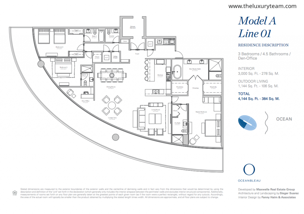The Maxwelle Group of Aventura Florida is bringing their boutique expertise to the idyllic shores of Hollywood Beach. The Oceanbleau will feature the best in modern design and amenities, usually reserved for Miami properties, right in the heart of this growing neighborhood. A collaborative effort between architects Sieger Suarez, interior designers Fanny Haim & Associates, and realty team BH3, The Oceanbleau presents itself as an excellent place to live or invest in. This 17 story tower features 48 residences ranging from 3,000 square foot 3-bedroom models to 6,000 square foot 5-bedroom models. The luxury residences at Oceanbleau will all have 10 foot ceilings, 12 feet in the penthouse, with beautiful panoramic views of The Atlantic Ocean and The Intercostal Waterway. Each resident can enjoy private access with their own elevator entrance. Inside the residences, kitchens come equipped with top of the line appliances from brands like Sub Zero, Miele, and Wolf.