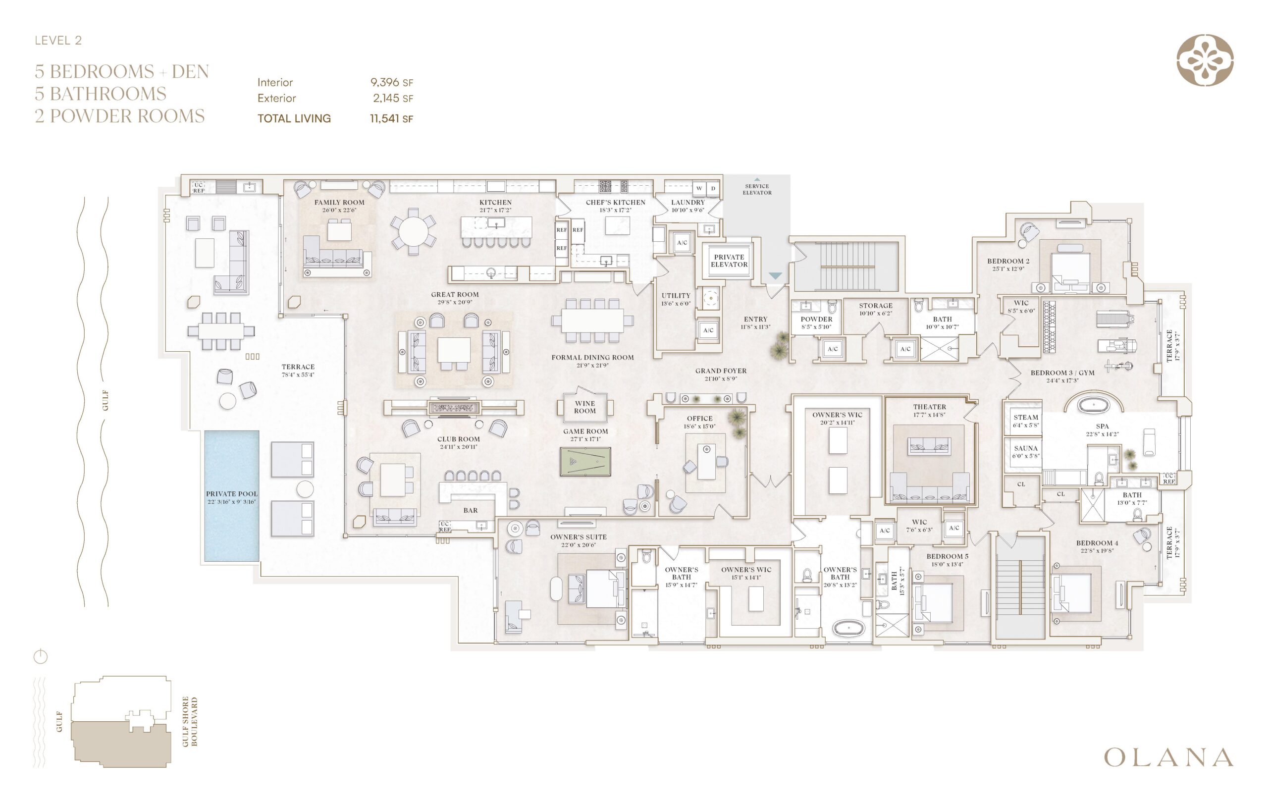 Olana Naples Residences are an ultra exclusive beachfront residential offering that introduces a new tier of luxury living along the Gulf Coast. Conceived as a collection of just 12 estate sized condominium residences, Olana occupies an unrivaled beachfront setting designed to deliver exceptional privacy, scale, and five star service. Developed by Kolter Urban in partnership with BH Group, the property features North and South towers with beachfront villa residences on level two, estate residences spanning levels three through six, and penthouse residences occupying the top level. Each home offers more than 10,000 square feet of interior living space with ceiling heights reaching approximately 11 feet, positioning Olana among the most expansive condominium offerings in the Naples market. This limited collection is intentionally designed for buyers seeking a generational residence that combines beachfront living with the discretion of a private estate.The residences at Olana are defined by dramatic architecture and an emphasis on natural light, volume, and seamless indoor outdoor living. Expansive glass walls line each home, opening to generous terraces that frame sweeping views of the Gulf, the beachfront, and surrounding private gardens. Open layouts are designed to feel both grand and livable, with ceiling heights that enhance the sense of scale throughout the main living areas. The relationship between interior spaces and the outdoors is central to the design, allowing residences to feel immersed in their coastal setting while maintaining comfort and privacy. Every detail is curated to reflect a refined, timeless aesthetic suited to long term ownership rather than short term trends, reinforcing Olana’s positioning as a once in a generation residential opportunity.