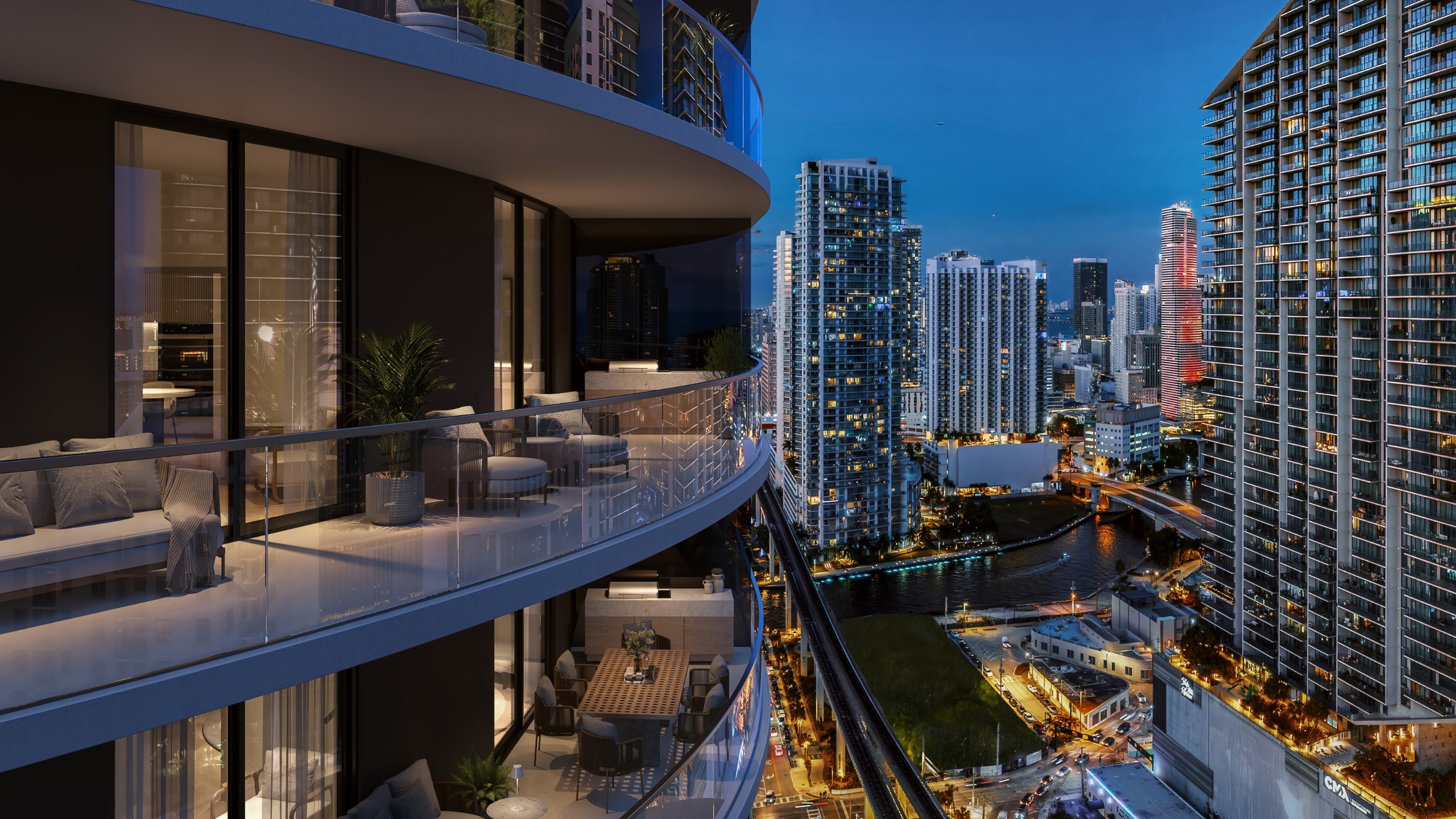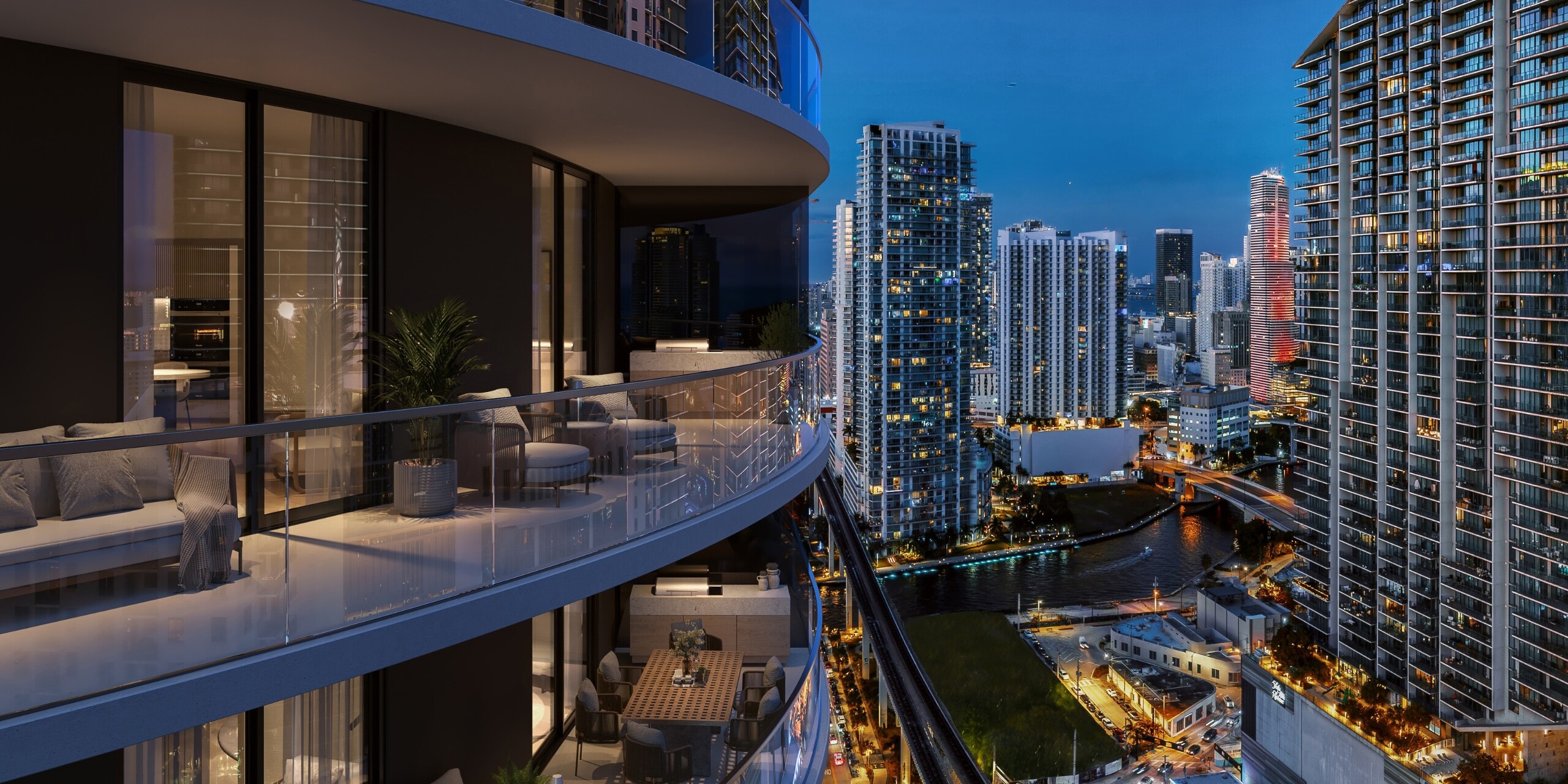 Residents of One Twenty Brickell enjoy access to more than 60,000 square feet of amenities designed to support wellness, social connection, and relaxation. A resort-style pool with private lounge areas provides a dramatic setting to unwind while overlooking the city skyline. The building’s wellness and fitness center includes state-of-the-art exercise equipment, a movement studio, and outdoor yoga lawn for residents who prioritize health and fitness. The wellness spa offers steam rooms, sauna facilities, plunge pools, treatment rooms, and tranquil relaxation spaces with outdoor terraces. Social spaces include a sky bar and lounge with panoramic views, a double-height owner’s lounge with catering kitchen, immersive event and meeting spaces, and a café with juice bar. Families and pet owners will also appreciate amenities such as a kids club and gym as well as a dedicated dog run, making the building well suited for a wide range of lifestyles.Living at One Twenty Brickell places residents in one of Miami’s most energetic and walkable neighborhoods. Brickell is widely recognized as the city’s financial center, but it also offers an impressive mix of dining, shopping, and cultural attractions. Brickell City Centre features luxury retail brands, fine dining restaurants, and entertainment venues within a short distance of the building. Mary Brickell Village provides a lively collection of cafes, nightlife, and boutique shops that contribute to the neighborhood’s dynamic atmosphere. Residents can also enjoy scenic waterfront walks at Brickell Key or along the nearby Miami River, while cultural destinations such as the Pérez Art Museum Miami and Frost Museum of Science are only minutes away in Downtown Miami.