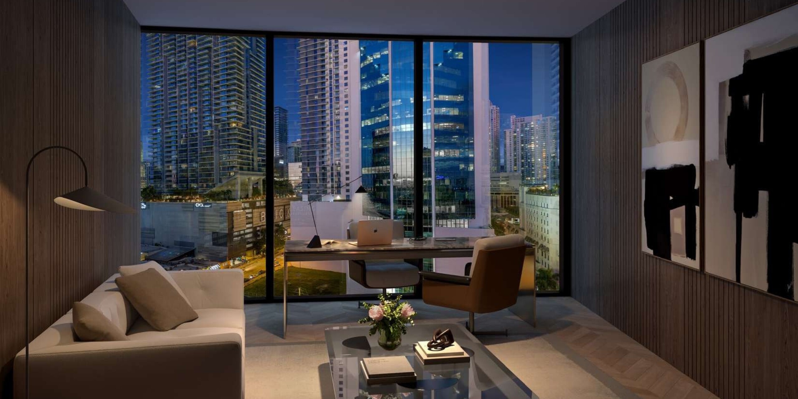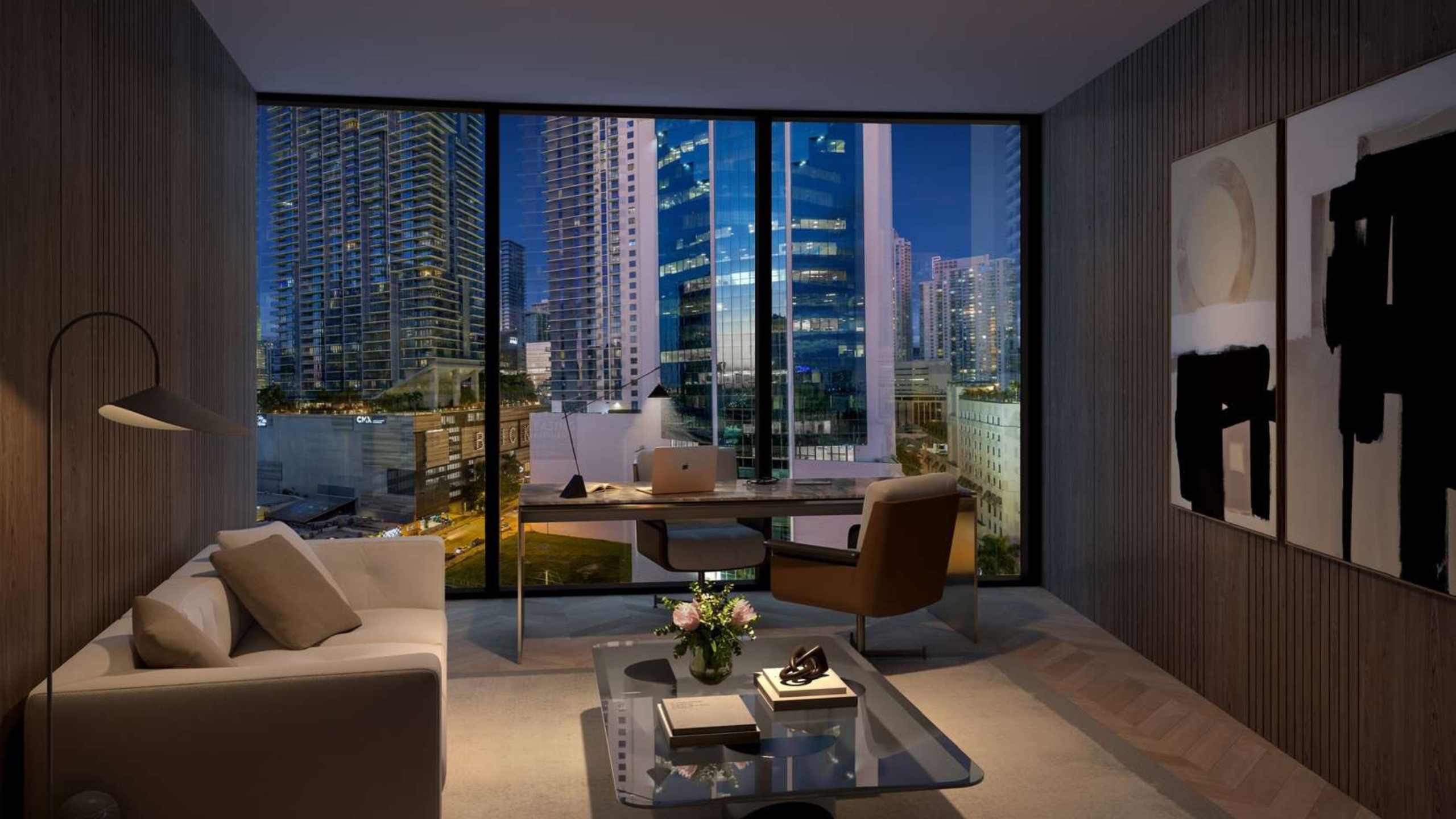 One Twenty Brickell Residences introduces a distinctive approach to urban living in the heart of Miami’s financial district, blending luxury residences with a thoughtful concept designed for today’s work from home lifestyle. Rising 34 stories above the vibrant Brickell skyline, the tower features 240 fully furnished and finished residences ranging from studios to one, two, and three-bedroom homes. Developed by Property Markets Group and designed by Sieger Suarez Architects with interiors by Cotofana Designs, the building reflects a contemporary architectural vision paired with refined interior craftsmanship. Residents enjoy sweeping views of the Brickell and Downtown Miami skyline as well as Biscayne Bay, all while living in a property that places convenience, balance, and modern technology at the center of everyday life.A defining feature of One Twenty Brickell is its innovative integration of dedicated private office suites paired with each residence, creating a seamless transition between home and professional life. These deeded office spaces include glass-enclosed designs, lockable entry, desks with guest seating, complimentary Wi-Fi, and are pre-wired for televisions and communications technology. Inside the residences themselves, interiors are delivered fully furnished and finished with designer polywood flooring and curated lighting packages that reflect the building’s contemporary aesthetic. Kitchens feature custom Italian cabinetry by Italkraft, elegant countertops and backsplashes, and a premium appliance suite including Miele induction cooktops, built-in ovens, dishwashers, refrigerators, and microwaves. Bathrooms are outfitted with WaterWorks fixtures, glass-enclosed showers, and carefully selected materials that combine luxury with durability. Smart home technology throughout each residence allows owners to personalize lighting, climate, and other systems with ease, creating a living environment tailored for modern convenience.