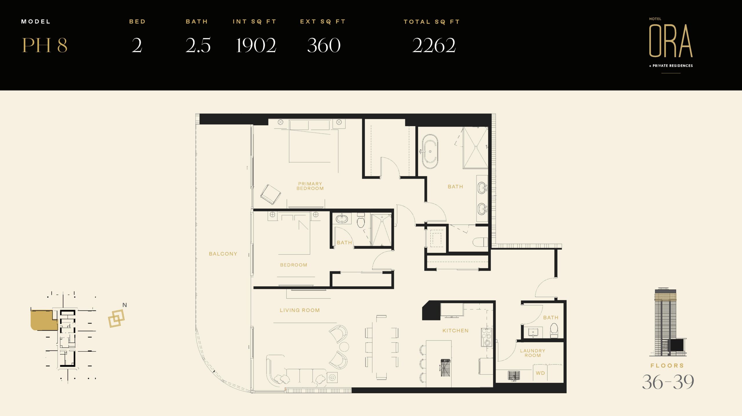 Crowning the tower are thirty one expansive Privé Residences occupying floors 36 through 39, including a limited penthouse collection that defines the pinnacle of ORA Tampa living. These private homes feature significantly higher ceiling heights, private elevator access, exclusive lobby arrival, and designer finishes throughout. Penthouse residences range from approximately 1,414 to 3,070 square feet and include two to four bedroom layouts with two and a half to four and a half baths. Interiors are crafted as refined urban sanctuaries, offering sweeping balconies and panoramic city views that stretch across downtown Tampa. These residences are designed for buyers seeking privacy, scale, and a true sense of ownership, while still enjoying access to the full suite of hotel services below.Residents and guests at ORA Tampa enjoy a comprehensive amenity offering designed to rival a modern luxury hotel. Concierge services, valet parking, security, spa and wellness facilities, a heated pool, fitness spaces, business and social lounges, and curated lifestyle programming support both daily living and short term stays. Privé and penthouse owners benefit from additional exclusive amenities including private lounges, a cinema room, golf simulator, society club spaces, and chef driven dining experiences. With its prime downtown location, seamless connection to Water Street, and flexible ownership structure, ORA Tampa presents a compelling opportunity for buyers seeking an urban residence, a professionally managed income asset, or a sophisticated blend of both.