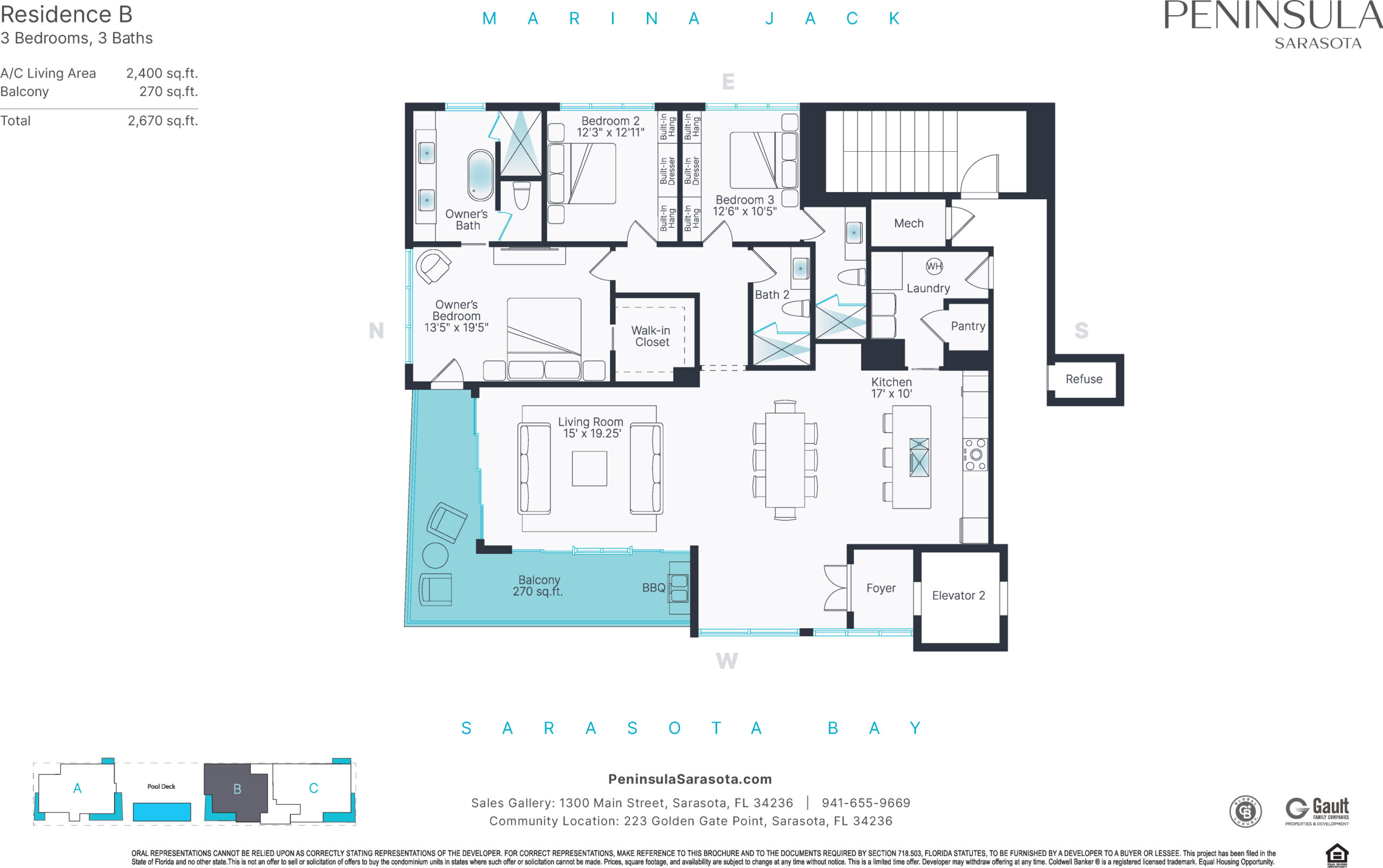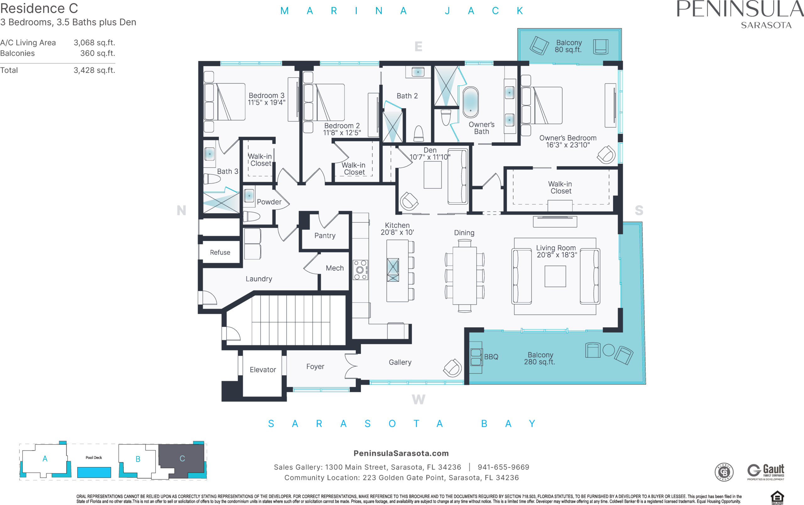 Peninsula Sarasota’s building amenities set a new standard for residential luxury. The development offers a private resort-style swimming pool, a sun deck with fire pits, and a state-of-the-art fitness center, all designed to foster a sense of community and wellness among residents. The Owner's Club Room and a rooftop residents’ lounge provide exclusive spaces for socializing and enjoying the breathtaking views of Sarasota Bay. Additional amenities include private wine storage, a secure mail room, ample package storage, and convenient access to EV charging stations, ensuring that every aspect of residents' needs is catered to with precision and care.Located in the heart of Sarasota's vibrant cultural scene, Peninsula Sarasota offers residents immediate access to the city's array of arts, entertainment, and dining options. Just steps away from the scenic Ringling Bridge, the condominium is perfectly positioned for those wishing to explore St. Armand's Circle or enjoy the beautiful sands of Lido Key. Cultural enthusiasts will appreciate the proximity to Gallery Row, the Sarasota Opera House, and numerous performing arts venues. Outdoor enthusiasts can enjoy leisurely strolls along Marina Jack, partake in sunset cruises, or explore the lush landscapes of Selby Gardens. With Main Street’s endless festivals and top-rated dining venues just a short drive away, living at Peninsula Sarasota means having the best of Sarasota right at your doorstep.