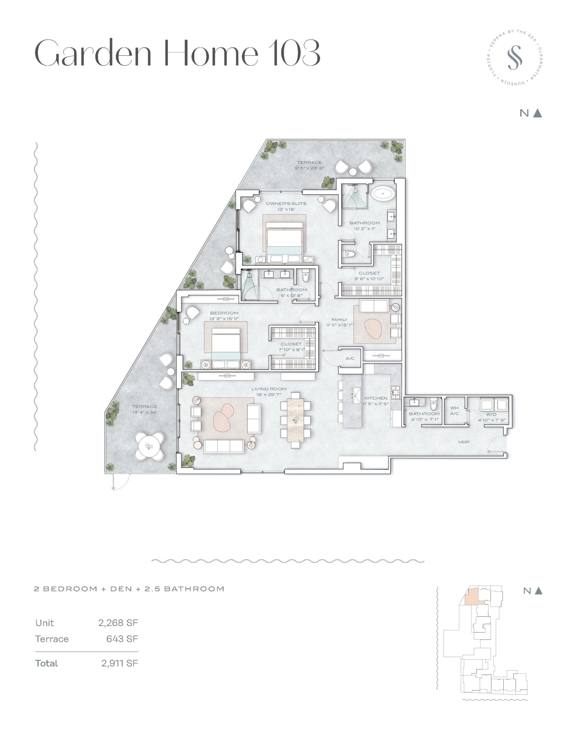 Positioned on the scenic Gulf Coast in Clearwater, Florida, the newly introduced Serena by the Sea condo development promises a lavish waterfront lifestyle with exquisite views and modern amenities. This exclusive property spans seven stories and offers a diverse range of two and three bedroom plus den floorplans that range from 1,400 sq. ft. to 2,574 sq. ft., including 80 total homes, encompassing standard residences, Garden Homes, Sky Penthouses, and Penthouses. Each unit at Serena by the Sea merges luxury with eco-friendly living, thanks to its energy-efficient design. Residents will be welcomed by a striking entrance plaza complete with a water feature, enhancing the serene and luxurious ambiance of the property.Serena by the Sea ensures residents experience unparalleled comfort and sophistication within each condo. The units boast innovative air quality features such as individual fresh air intake and polarized media electronic air filters, guaranteeing a healthy living environment. Ultraviolet disinfection lights are standard across all common areas, eliminating germs effectively. High-efficiency LED lighting, supported by on-site solar power, illuminates the building, reducing energy consumption. These homes are also equipped with touchless entry systems and use EPA-approved cleaning products for all common areas, prioritizing health and safety without compromising on luxury.