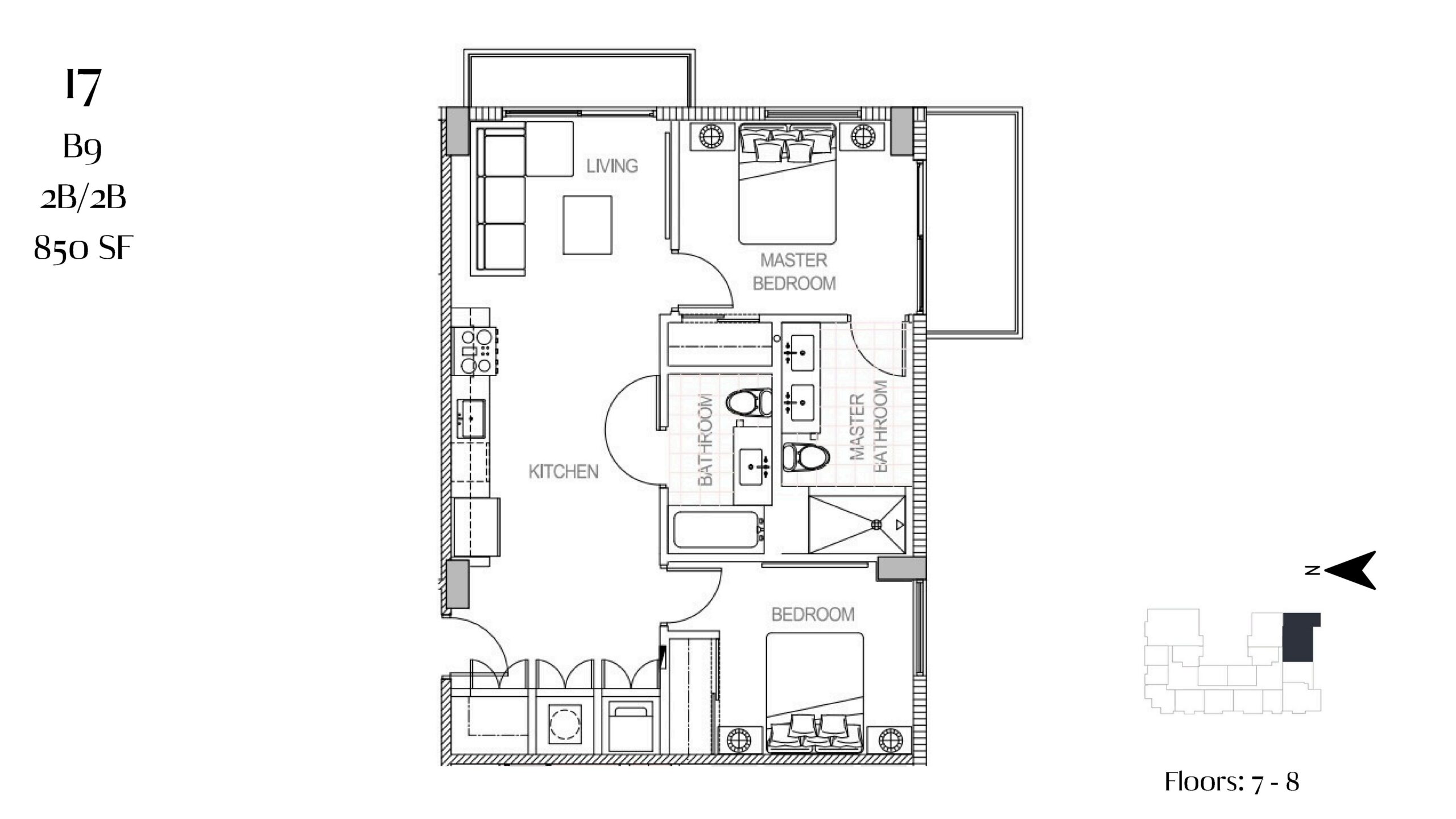 Seventeen Gables is a boutique residential development that brings a polished yet approachable sense of luxury to the East Gables market. Rising eight stories, the building is one of the tallest residential offerings in the neighborhood, allowing for open views that stretch across Coral Gables’ mature tree canopy toward the Miami skyline. The project features a collection of one to three bedroom residences, with interiors ranging from approximately 557 to 1,428 square feet, offering a thoughtful mix of efficient layouts and more expansive floor plans. Its intimate scale and walkable setting create a calm residential feel while remaining minutes from Coconut Grove, Miracle Mile, and Brickell, making it well suited for buyers who value both lifestyle and location.Each residence is designed to feel light, open, and highly functional. Floor to ceiling impact glass windows bring in abundant natural light and enhance the sense of space throughout the open, flexible layouts. Kitchens are finished with premium engineered stone countertops, European style cabinetry, and a fully integrated appliance package that includes Bosch stovetops and ovens paired with paneled Fisher and Paykel refrigerators and dishwashers for a clean, cohesive look. Bathrooms reflect a spa inspired approach, featuring floating vanities, designer fixtures, and refined material selections. Curated premium flooring runs throughout the homes, while smart home technology for lighting and climate control adds a layer of modern convenience to everyday living.