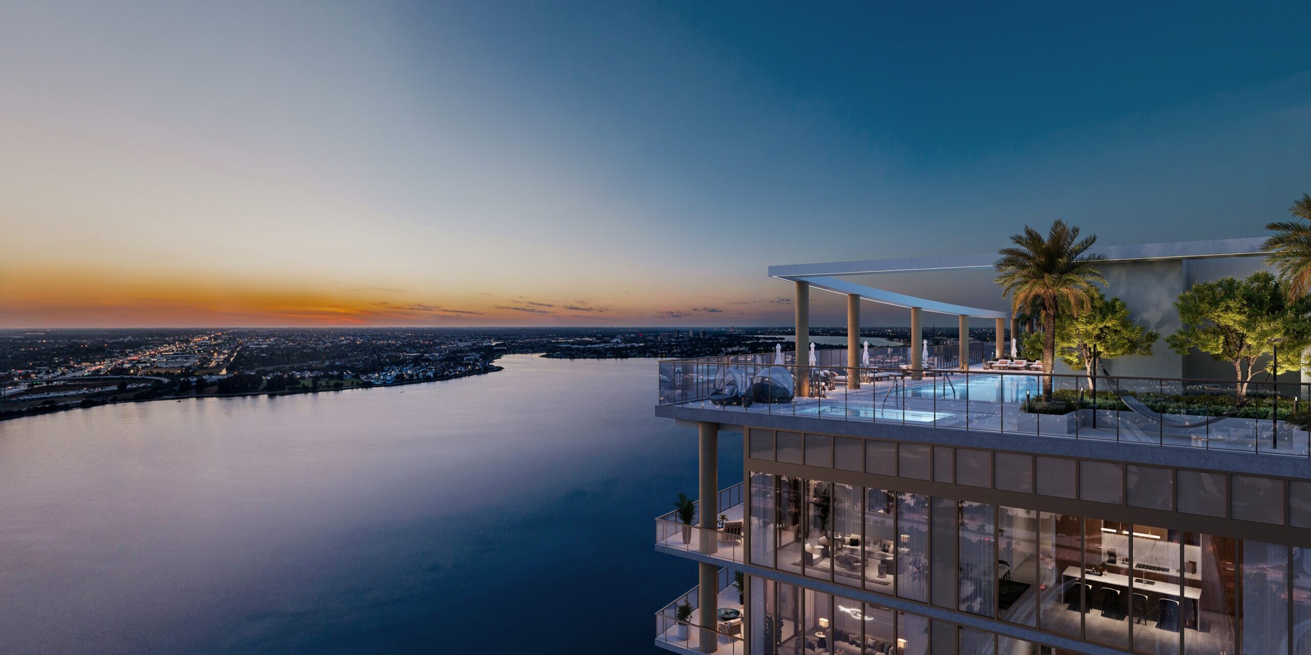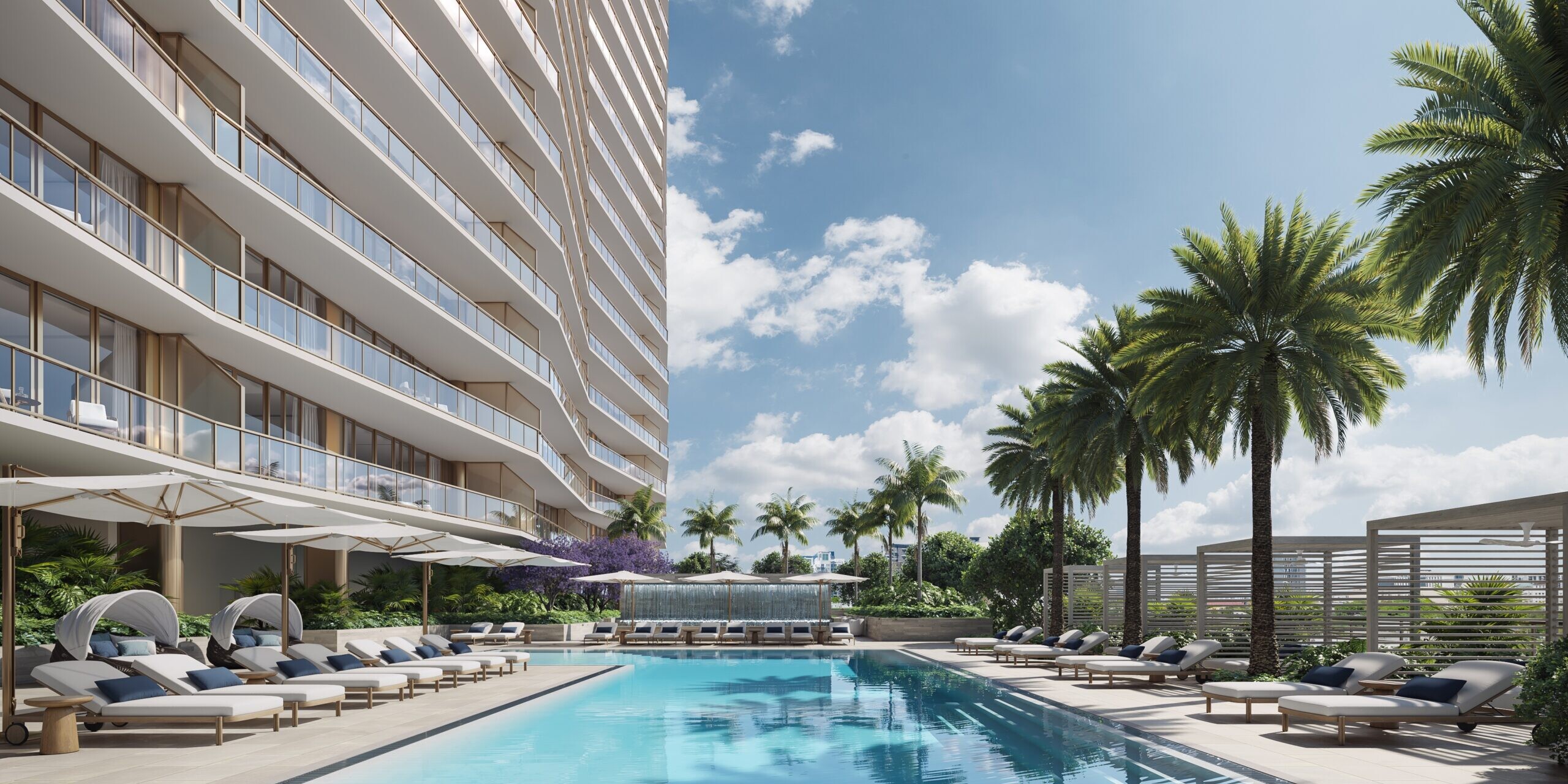 The Berkeley is an upcoming luxury condominium tower set to redefine waterfront living in West Palm Beach. Developed by the same team behind The Bristol, this 26 story residential building will rise along the Intracoastal at 550 S Australian Ave and deliver a limited collection of 193 residences. The Berkeley offers expansive two to five bedroom floor plans ranging from approximately 1,700 square feet to more than 5,800 square feet, with pricing generally expected between the high $1.9 million range and up to approximately $9.5 million. Designed as a more contemporary and family oriented counterpart to The Bristol, the building emphasizes space, views, and livability while maintaining a strong luxury profile. Completion is currently projected for 2027.Residences at The Berkeley are designed with estate-like proportions and modern finishes, prioritizing flow through layouts and outdoor living. Homes feature floor to ceiling glass and expansive east and west facing balconies, among the largest offered in West Palm Beach, providing panoramic views of the Intracoastal, ocean, and city skyline. Interiors are thoughtfully planned to accommodate professional families, with flexible rooms that can function as offices, media spaces, or guest accommodations. Curated materials and refined detailing are used throughout, balancing contemporary design with warmth and long term durability. The emphasis is on comfortable luxury rather than high density vertical living, setting The Berkeley apart from many newer towers in the market.
