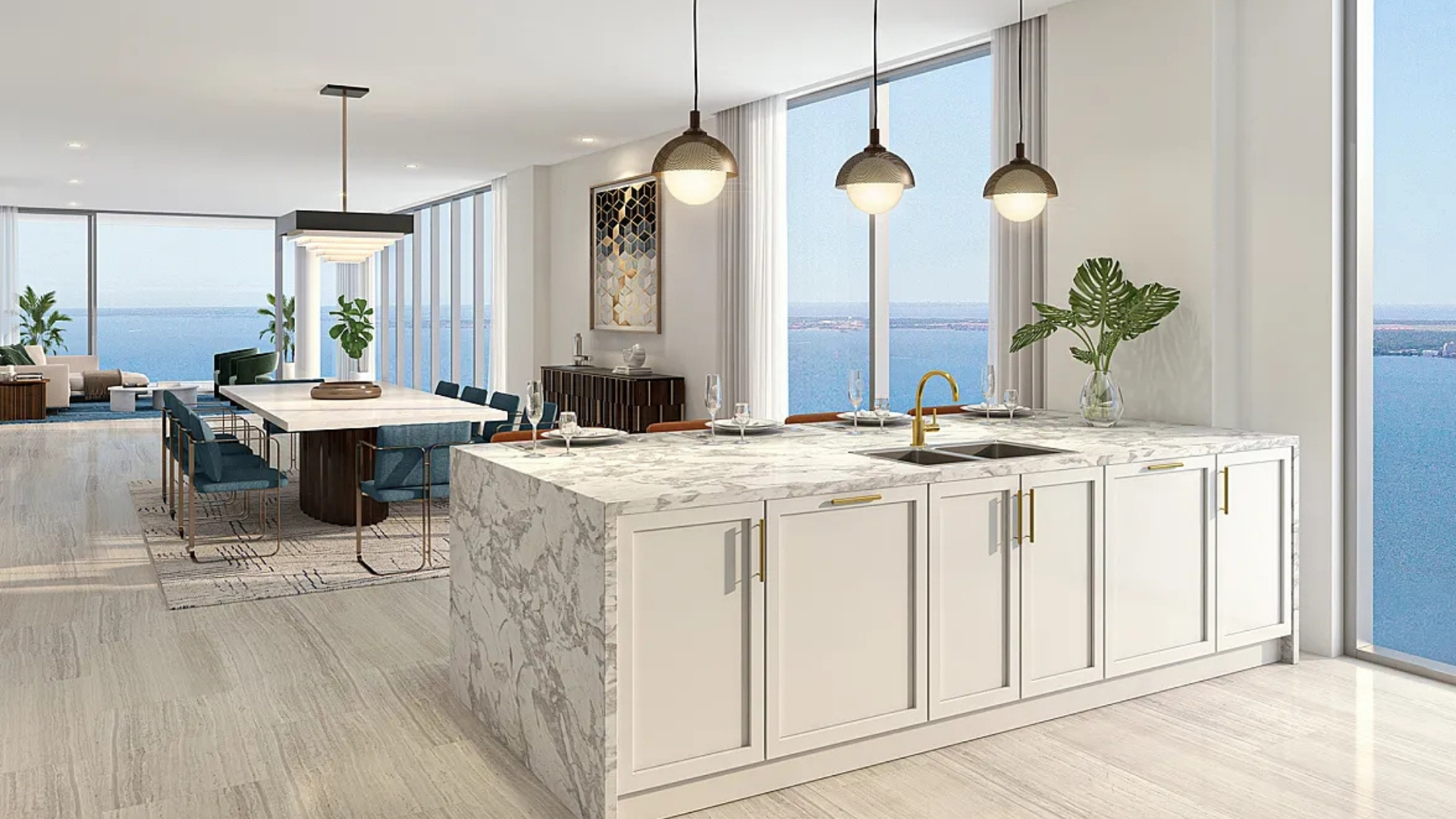 The Ritz Carlton Residences Tampa introduces a landmark residential offering along the prestigious Bayshore Boulevard, bringing a new level of branded luxury living to the city’s waterfront corridor. Rising 27 stories on a prime 5 acre site formerly occupied by the Bay Oaks community, the development features a limited collection of 102 condominium residences and 12 exclusive townhouse style homes. Condominium layouts range from approximately 2,300 to 5,000 square feet, while the townhomes span roughly 3,100 square feet, all designed to capture sweeping views of Hillsborough Bay and the Tampa skyline. Developed by Related Group, the property is defined by its intimate scale, expansive grounds, and a setting that blends urban proximity with a sense of privacy and calm rarely found this close to downtown.Residences are designed with a refined, contemporary aesthetic by Arquitectonica, with interiors by the internationally recognized Meyer Davis Studio. Ten foot ceilings, floor to ceiling glass, and gracious balconies create bright, open living environments with unobstructed water views. Kitchens are outfitted with custom Italian cabinetry by Italkraft, Sub Zero and Wolf appliances, and bespoke stone or quartz countertops, while high end Kohler plumbing fixtures and full size washers and dryers add everyday functionality. Semi private elevator access and entry foyers enhance privacy, and thoughtful layouts allow rooms to be comfortably furnished without compromise. Select villa style residences offer expansive terraces and rooftop spa features, extending the living experience outdoors while maintaining the same elevated interior standards found throughout the tower.