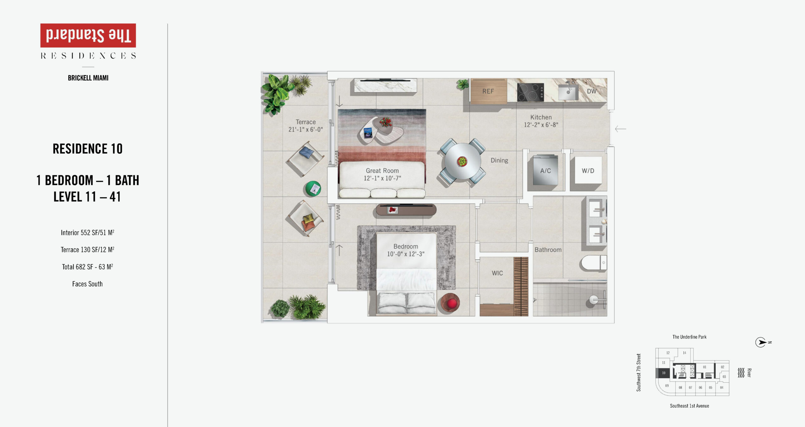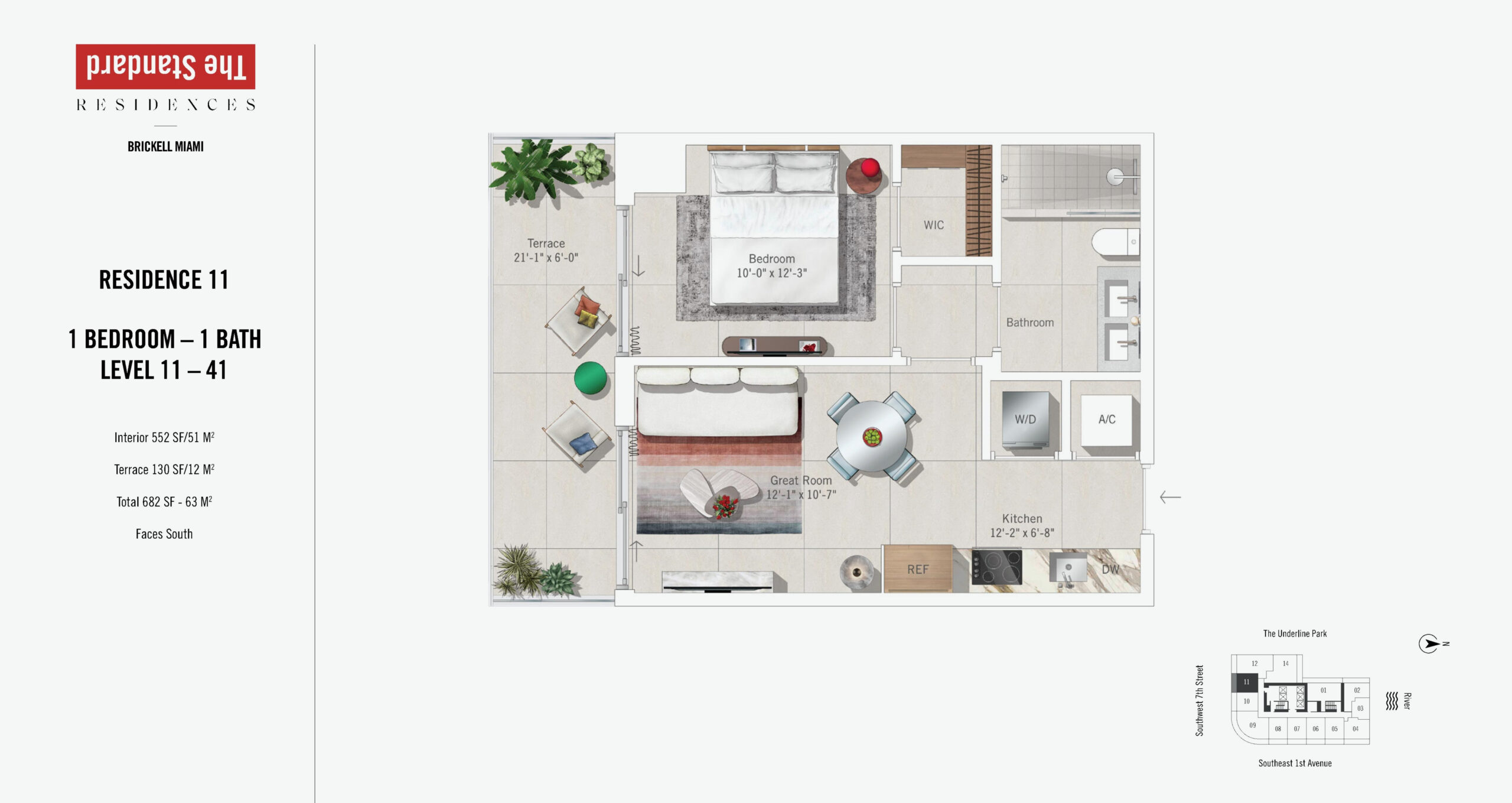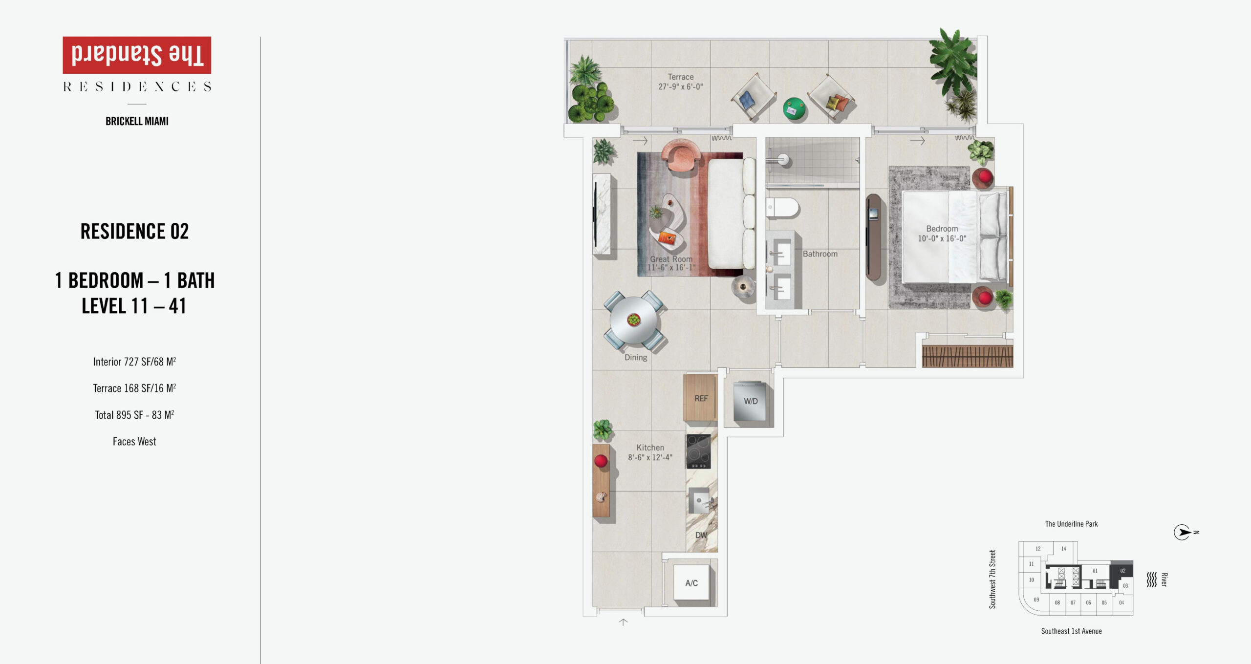 The Standard Residences, Brickell Miami rises 46 stories at 690 SW 1st Avenue, introducing a bold residential tower infused with the globally recognized Standard brand. Currently under construction and scheduled for completion in 2027, the building will offer 422 residences designed for modern urban living in the center of Brickell. Floor plans range from studios starting at approximately 491 square feet to expansive one and two bedroom residences, with penthouse offerings extending to three bedroom layouts of up to roughly 1,317 square feet. Positioned steps from Brickell City Centre, South Miami Avenue, and major transit connections, the property places residents at the intersection of Miami’s financial, cultural, and social energy.Residences are designed with a refined yet relaxed aesthetic that reflects The Standard’s signature approach to lifestyle driven design. Interiors feature nine foot ceilings, imported porcelain flooring, and keyless entry systems for everyday ease. Kitchens are outfitted with Italian crafted Italkraft cabinetry, integrated paneled refrigerators, ceramic glass stovetops, built in speed ovens, quiet dishwashers, and premium Miele appliance packages. Oversized stainless steel zero radius sinks add a functional modern edge, while en suite bathrooms continue the elevated look with Italian cabinetry and sleek finishes. Primary bedrooms include generous walk in closets, and select penthouse residences offer ceiling heights up to ten feet, enhancing volume and views of the Miami River, Biscayne Bay, and the Brickell skyline.