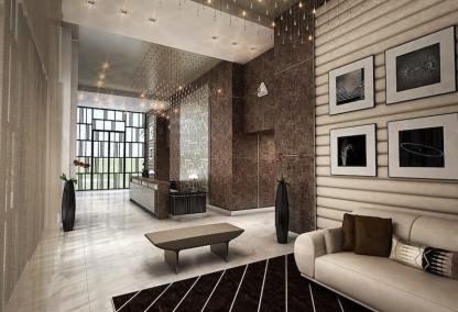 The building at Tower 155 is being constructed with a modern art-deco theme in mind featuring large open spaces, a two story lobby and greeting area, and an urban landscaped rooftop deck with pool, hot tub, and bar/lounge area. For the fitness conscious in your family, Tower 155 has a fully-equipped state of the art fitness center, yoga room, and swimming pool. Each resident can also enjoy a secure parking garage with controlled access, three high speed elevators, and high speed internet access throughout the building’s common areas. Building staff provides 24-hour security and video surveillance as well as concierge services. All building services and features are accessible via smart phone 24 hours a day. Other common areas include a business center, conference area, and club room with state of the art A/V equipment for entertaining your guests.