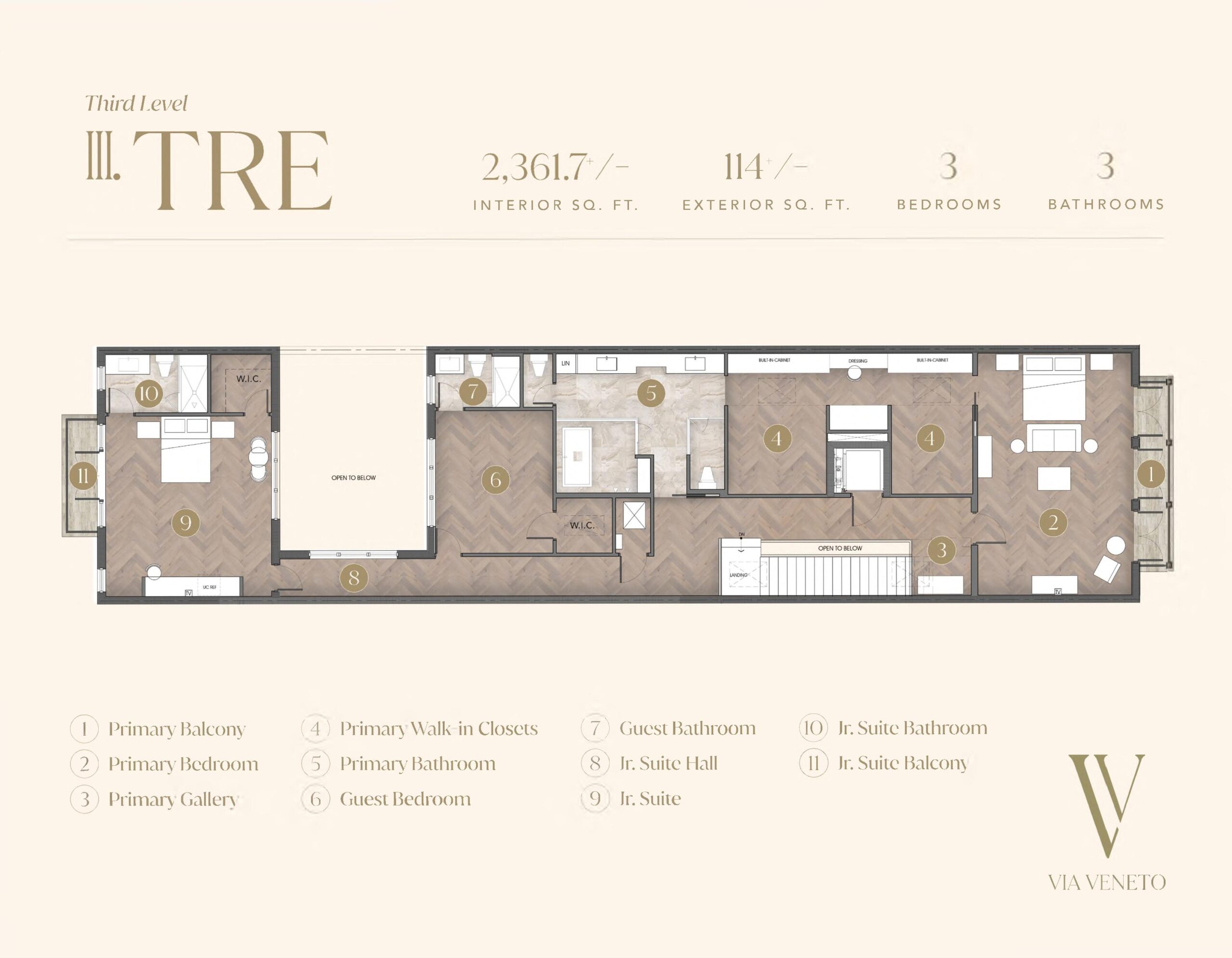 Residential comforts at Via Veneto are unparalleled, with features including bright and airy living spaces framed by high-impact doors and windows. State-of-the-art electronics and security systems ensure peace of mind, while the MiaCucina-designed kitchens with large quartz islands set the stage for gourmet adventures. Wolf ovens and dishwashers punctuate these culinary havens. Bedrooms are a sanctuary of luxury with dual walk-in closets, inviting seating areas, and a seamless flow onto private outdoor balconies. The primary bathrooms include frameless walk-in showers, illustrating the meticulous attention to detail found throughout each residence.Via Veneto's amenities serve as an extension of each residence, with a Venetian pool offering serene views of the historic Biltmore Hotel. Residents can indulge in the Florida sun with outdoor summer kitchens featuring a 42” grill, an ice maker, and a refrigerator, perfect for hosting and entertaining. Additional amenities such as a wine fridge and private storage areas further complement the lavish lifestyle afforded by Via Veneto.Positioned just three miles from the vibrant Coconut Grove, a short stroll from the opulent Biltmore Hotel, and within reach of the chic Shops at Merrick Park, Via Veneto's location is unmatchable. The Miracle Mile, a mere 13 miles away, extends an invitation to experience the city's finest shopping and dining. Within a one-mile radius, culinary aficionados can delight in local eateries, while art enthusiasts can revel in nearby galleries and the historic landmarks that make Coral Gables a treasure of the Sunshine State.