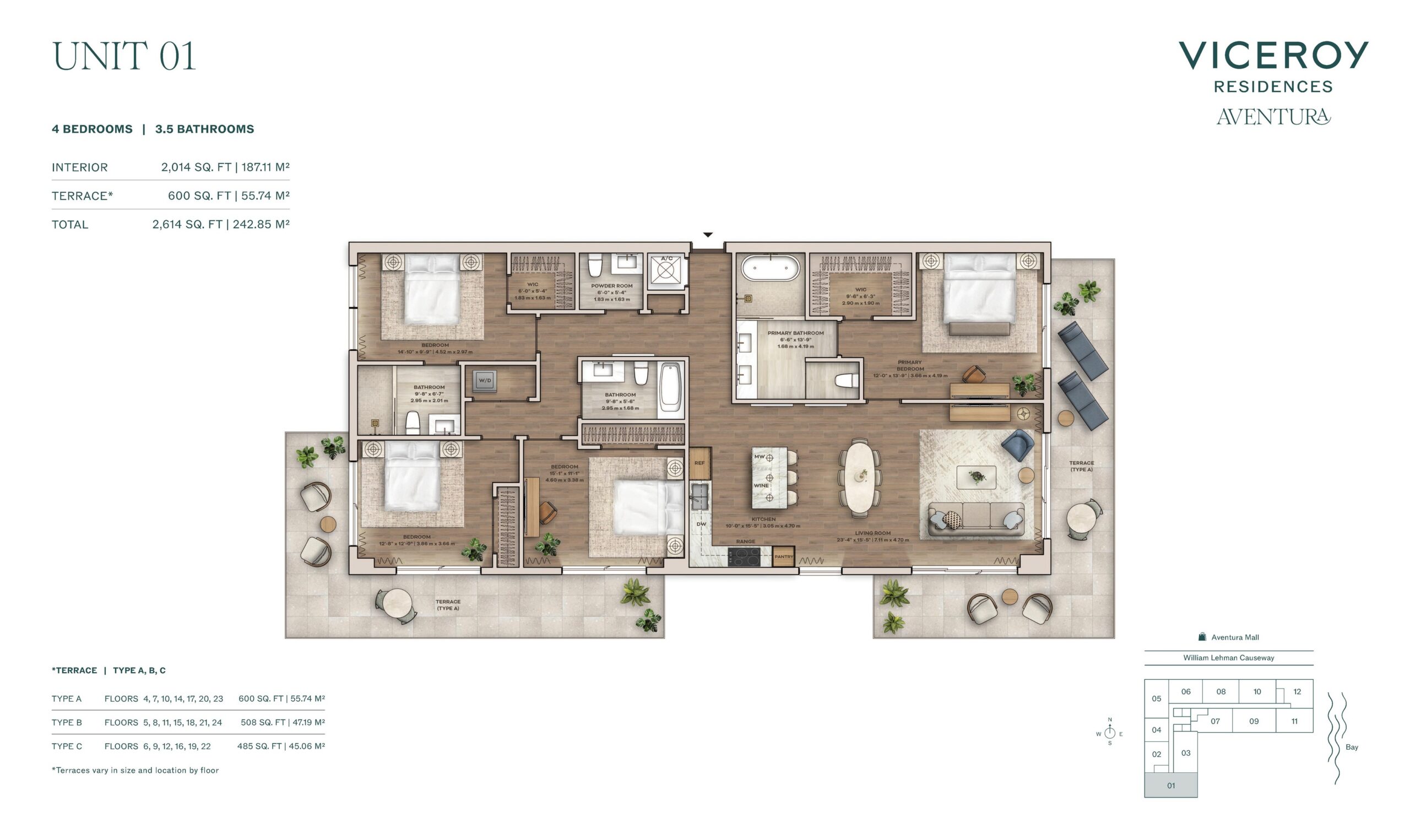 Viceroy Aventura introduces a refined residential tower that brings the globally recognized Viceroy lifestyle to one of South Florida’s most established destinations. Rising 28 stories, the building will feature 274 one to four bedroom residences and is scheduled for completion in 2028. Developed by The Related Group in partnership with BH Group and designed by Arquitectonica, the tower is defined by a luminous glass façade accented with crisp white detailing that reflects a modern, resort inspired sensibility. Viceroy Aventura is positioned within the heart of Aventura, a community known for its balance of upscale living, convenience, and connectivity. Residences are offered in spacious layouts ranging from approximately 1,016 square feet to over 2,600 square feet, with pricing beginning around the mid nine hundreds, appealing to both end users and long term lifestyle focused buyers.The residences at Viceroy Aventura are designed with versatility, comfort, and elevated detailing in mind. Open floorplans are paired with wide, expansive balconies that extend living areas outdoors and frame city and water views. Interiors feature porcelain flooring throughout, generous walk in closets, and airy kitchens appointed with Italian cabinetry, top tier Miele appliance packages, and wine refrigeration. Full size washers and dryers are standard, while spa inspired bathrooms are finished with custom fluted Italian vanities, freestanding tubs, and walk in showers. Keyless entry, high speed WiFi, and energy efficient windows reinforce the building’s modern approach, while thoughtful layouts allow residences to adapt seamlessly to everyday living and entertainment.