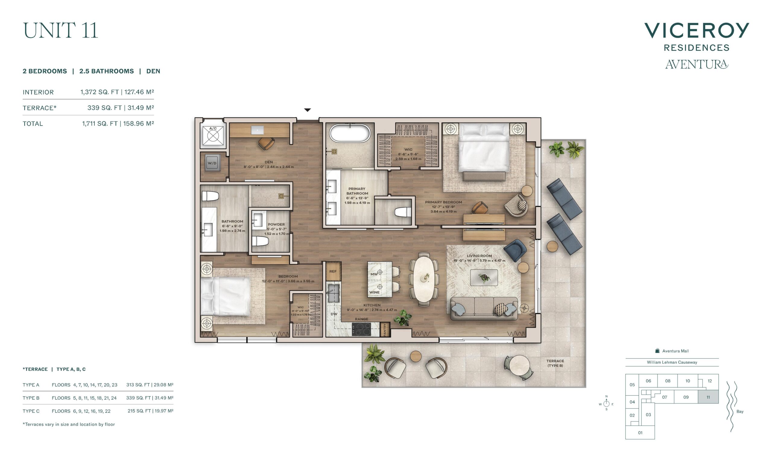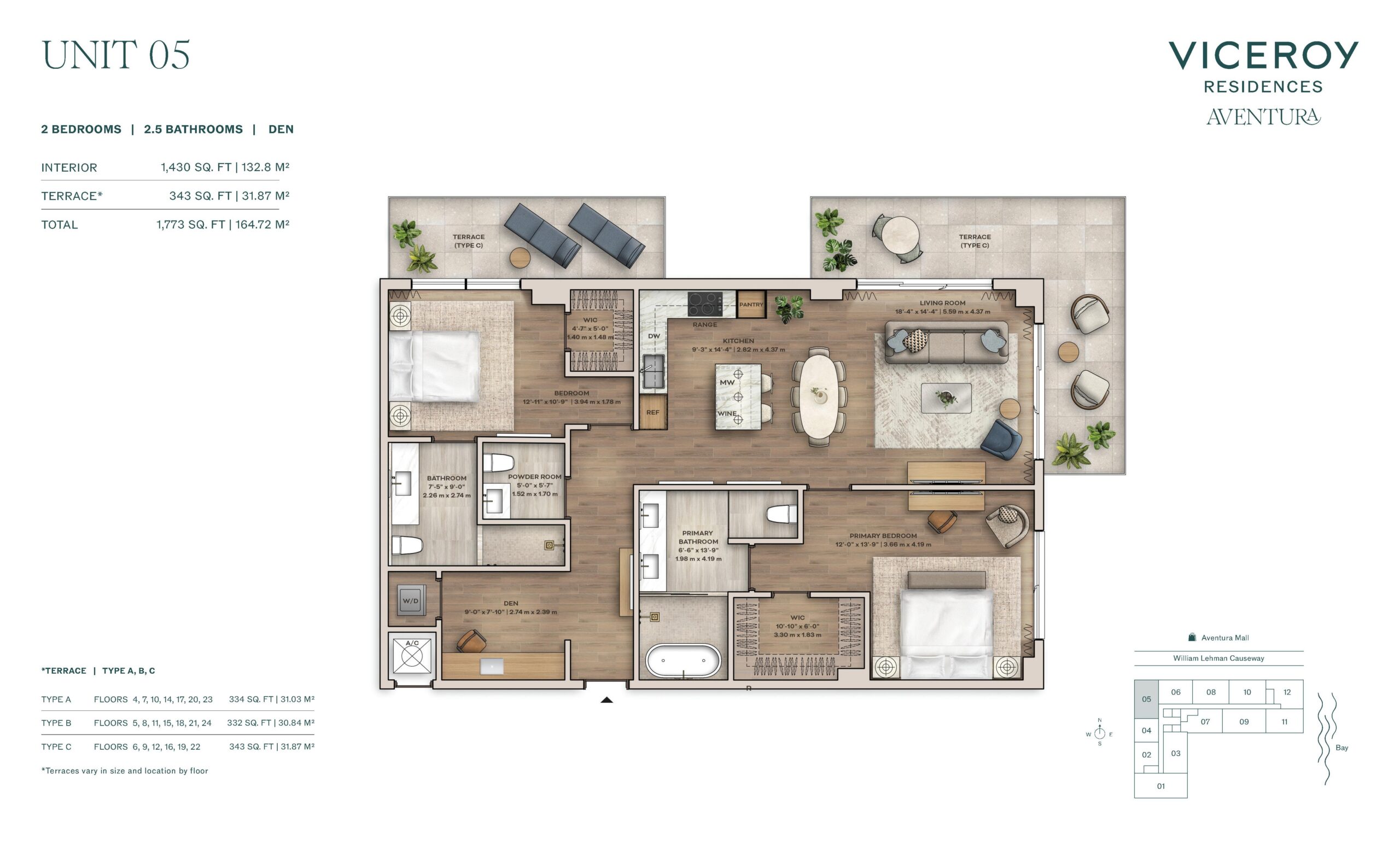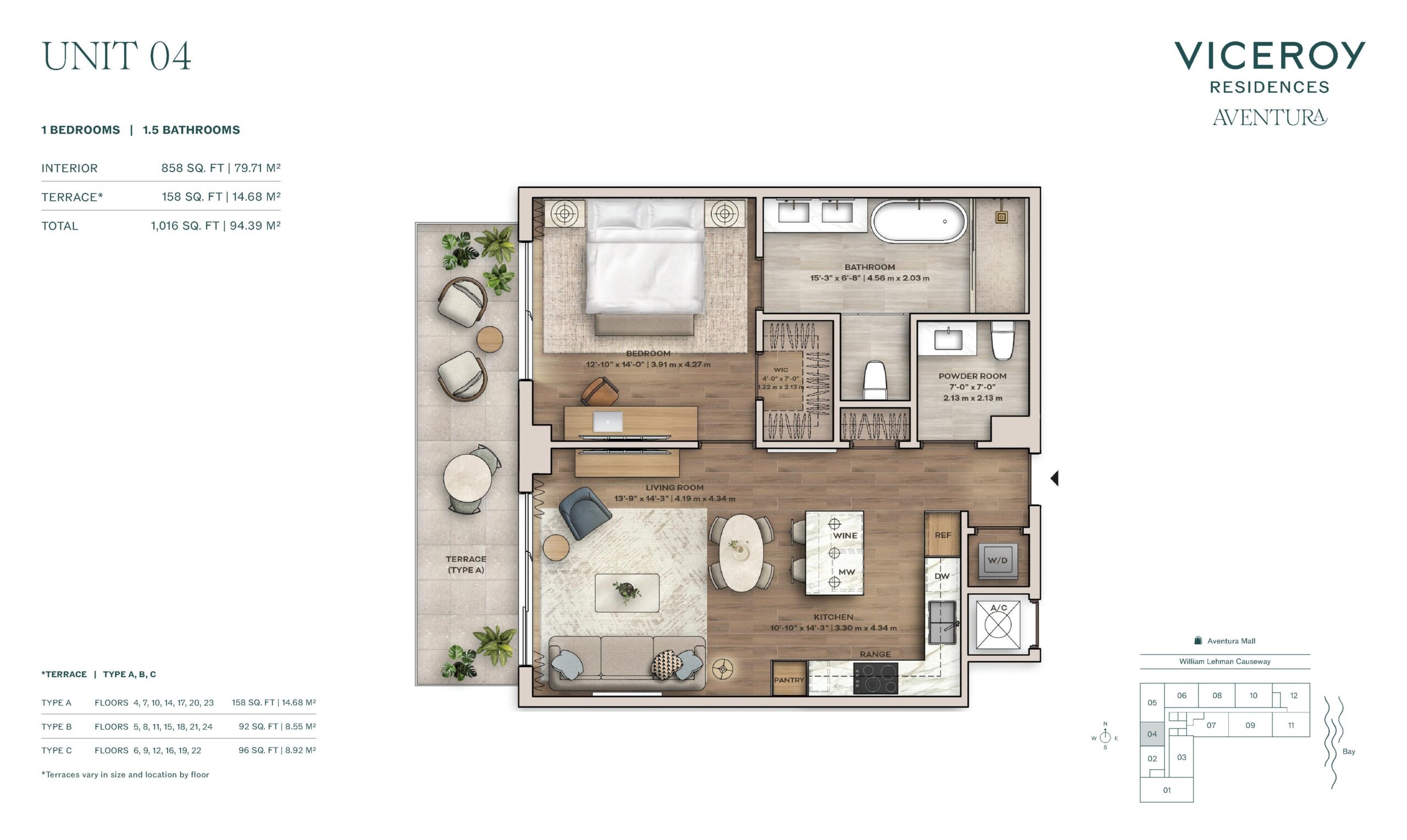 Amenities at Viceroy Aventura are extensive and curated to reflect the brand’s signature blend of hospitality, wellness, and social engagement. Residents enjoy access to a landscaped pool deck with private cabanas, daybeds, summer kitchen, and poolside bar, complemented by a full service cabana experience. Indoor offerings include a state of the art fitness center with private training studio, world class spa with sauna and hot and cold plunge, golf simulator, gaming lounge, rock climbing wall, half basketball court, pickleball court, and a thoughtfully designed children’s playroom. Social and work focused spaces include a co-working center with private offices, coffee and juice bar, rooftop lounge and garden terrace, and the Hemingway Rooftop Bar. Viceroy residential services elevate daily life with 24 hour front desk, valet, security, concierge programming, and a full calendar of curated experiences.Aventura provides an ideal backdrop for the Viceroy lifestyle, offering a sophisticated yet approachable environment defined by convenience and quality of life. Residents are minutes from Aventura Mall, waterfront parks, marinas, golf courses, and a wide selection of dining and entertainment options. The neighborhood’s central location allows for easy access to Sunny Isles Beach, Bal Harbour, Miami Beach, and major highways connecting Downtown Miami and Fort Lauderdale. With its combination of world class amenities, spacious residences, and a trusted luxury brand, Viceroy Aventura offers a compelling opportunity to enjoy resort style living within one of South Florida’s most desirable and well established communities.