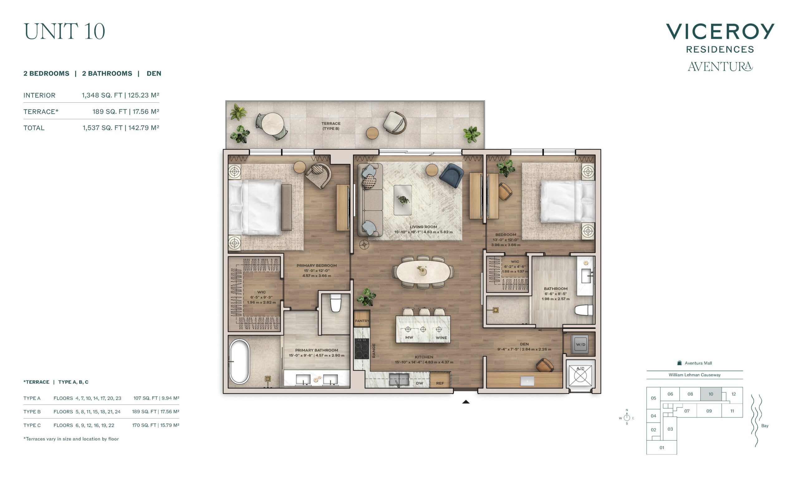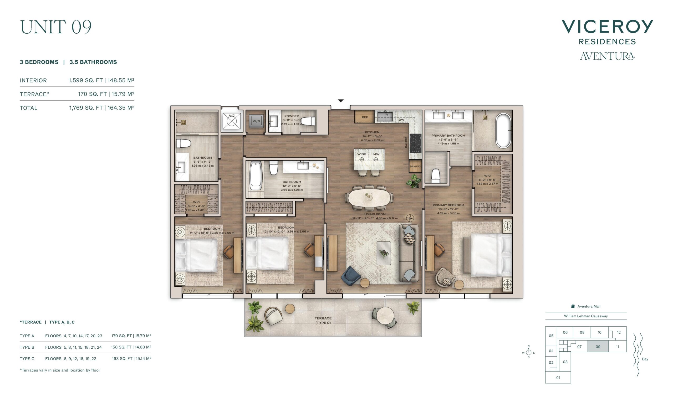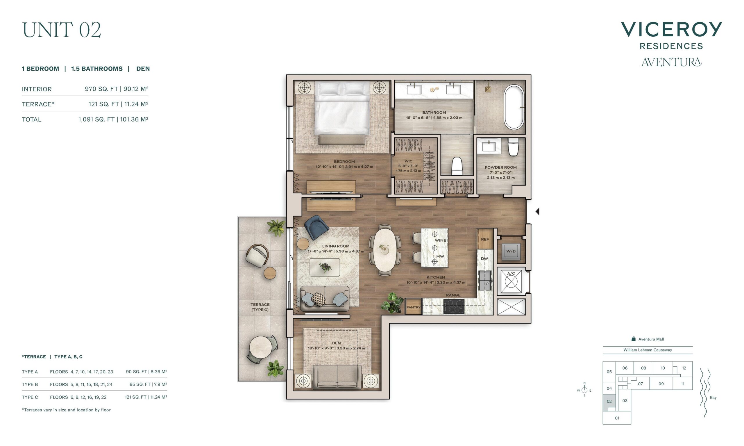 Amenities at Viceroy Aventura are extensive and curated to reflect the brand’s signature blend of hospitality, wellness, and social engagement. Residents enjoy access to a landscaped pool deck with private cabanas, daybeds, summer kitchen, and poolside bar, complemented by a full service cabana experience. Indoor offerings include a state of the art fitness center with private training studio, world class spa with sauna and hot and cold plunge, golf simulator, gaming lounge, rock climbing wall, half basketball court, pickleball court, and a thoughtfully designed children’s playroom. Social and work focused spaces include a co-working center with private offices, coffee and juice bar, rooftop lounge and garden terrace, and the Hemingway Rooftop Bar. Viceroy residential services elevate daily life with 24 hour front desk, valet, security, concierge programming, and a full calendar of curated experiences.Aventura provides an ideal backdrop for the Viceroy lifestyle, offering a sophisticated yet approachable environment defined by convenience and quality of life. Residents are minutes from Aventura Mall, waterfront parks, marinas, golf courses, and a wide selection of dining and entertainment options. The neighborhood’s central location allows for easy access to Sunny Isles Beach, Bal Harbour, Miami Beach, and major highways connecting Downtown Miami and Fort Lauderdale. With its combination of world class amenities, spacious residences, and a trusted luxury brand, Viceroy Aventura offers a compelling opportunity to enjoy resort style living within one of South Florida’s most desirable and well established communities.