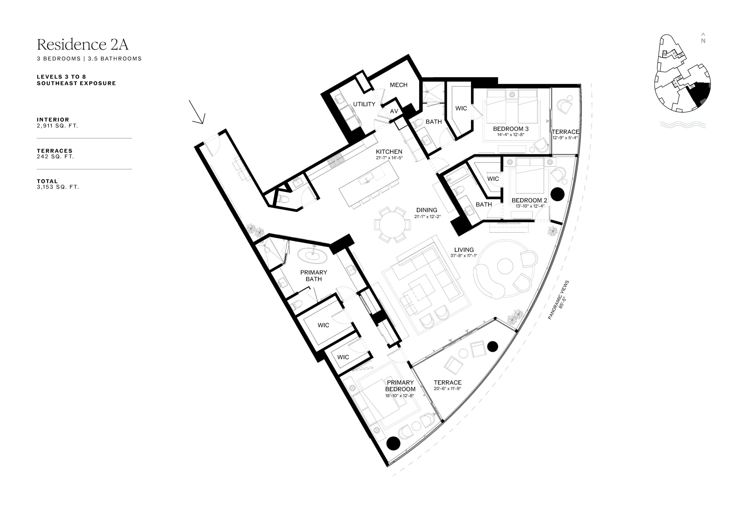 Viceroy Residences Clearwater Beach presents an exclusive collection of fully serviced luxury condominiums set directly on the white sands of Clearwater Beach. Designed by Randall Stofft Architects, the development consists of two refined nine story towers housing just 86 private Gulf front residences, including a limited penthouse collection. Homes range from two to five bedrooms with interiors generally spanning approximately 2,078 to 3,443 square feet, while select penthouses extend well beyond that range. The intimate scale of the property creates a sense of privacy and distinction, enhanced by sweeping sunset views across the Gulf of Mexico and a calm, residential atmosphere that feels purposefully removed from larger resort environments.Each residence is designed to emphasize light, openness, and seamless indoor outdoor living. Ten foot ceilings and expansive walls of glass allow natural light to flow throughout the interiors, while sliding doors open to generous private terraces overlooking the water. Kitchens feature premium Italian cabinetry designed by Steven G., paired with European quartz countertops and a natural gas appliance suite by Sub Zero and Wolf, complemented by refined Kallista fixtures. Flooring throughout the residences includes Italian porcelain surfaces, and eight foot entry and interior doors reinforce the clean, contemporary aesthetic. Primary suites offer spa inspired bathrooms with Italian cabinetry, limestone finishes, glass wall partitions, and Toto fixtures, while guest baths maintain the same elevated level of design and material quality.