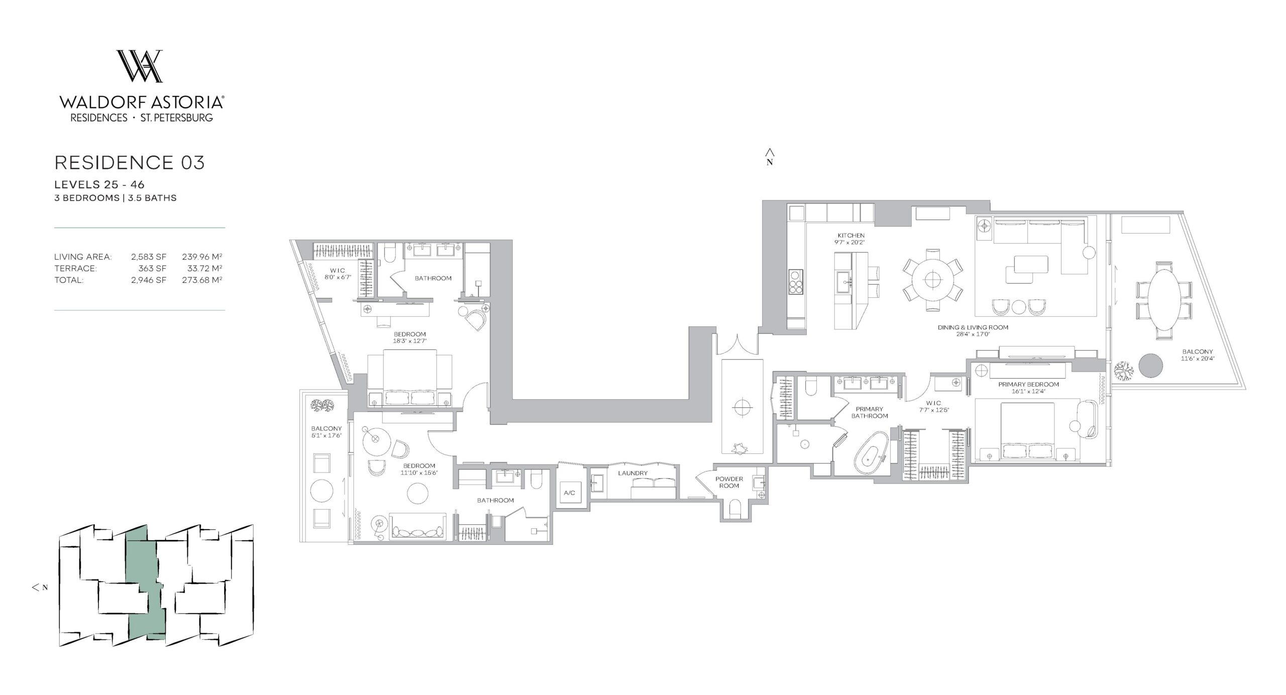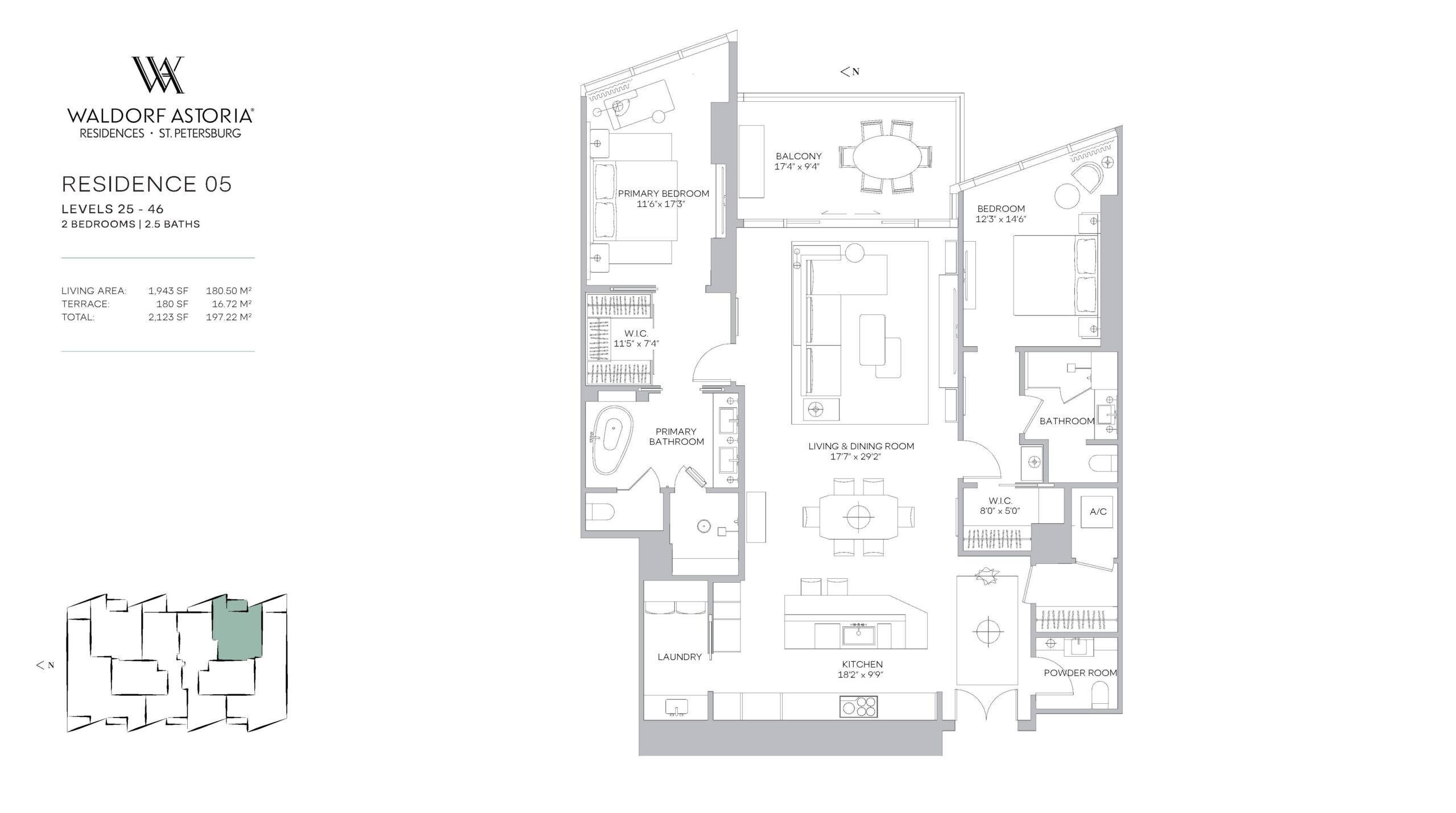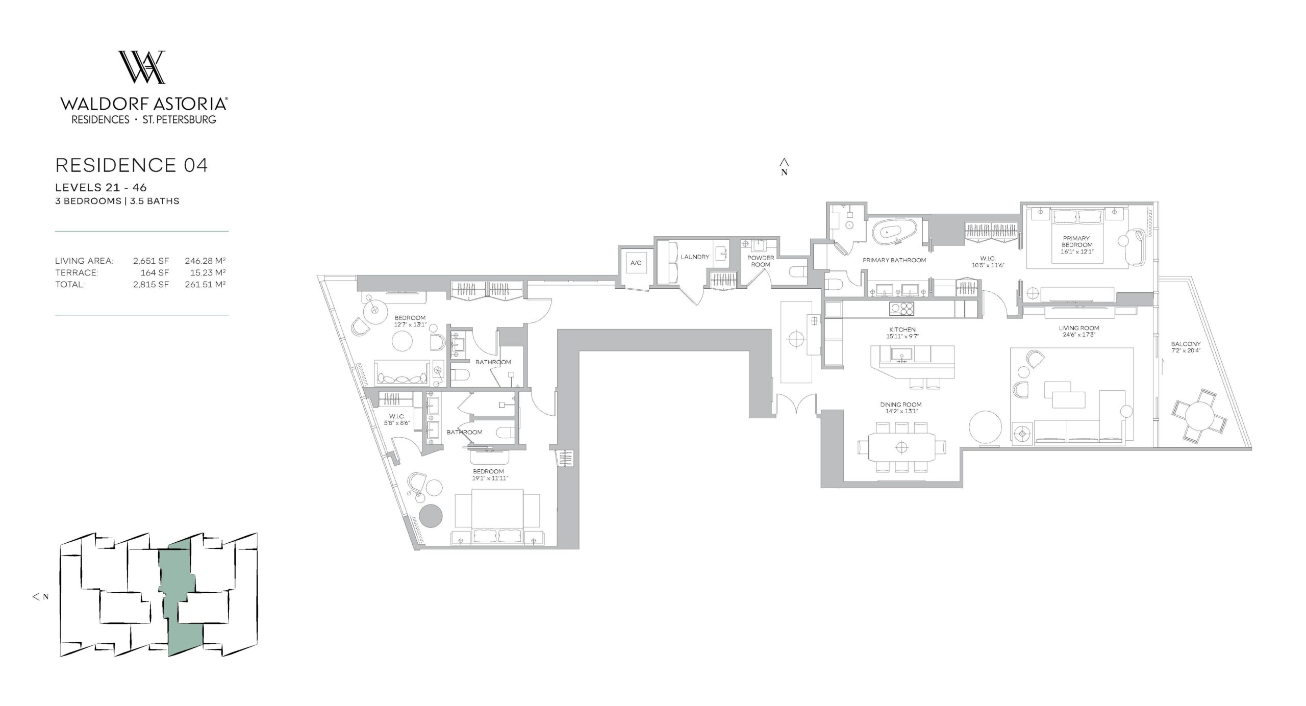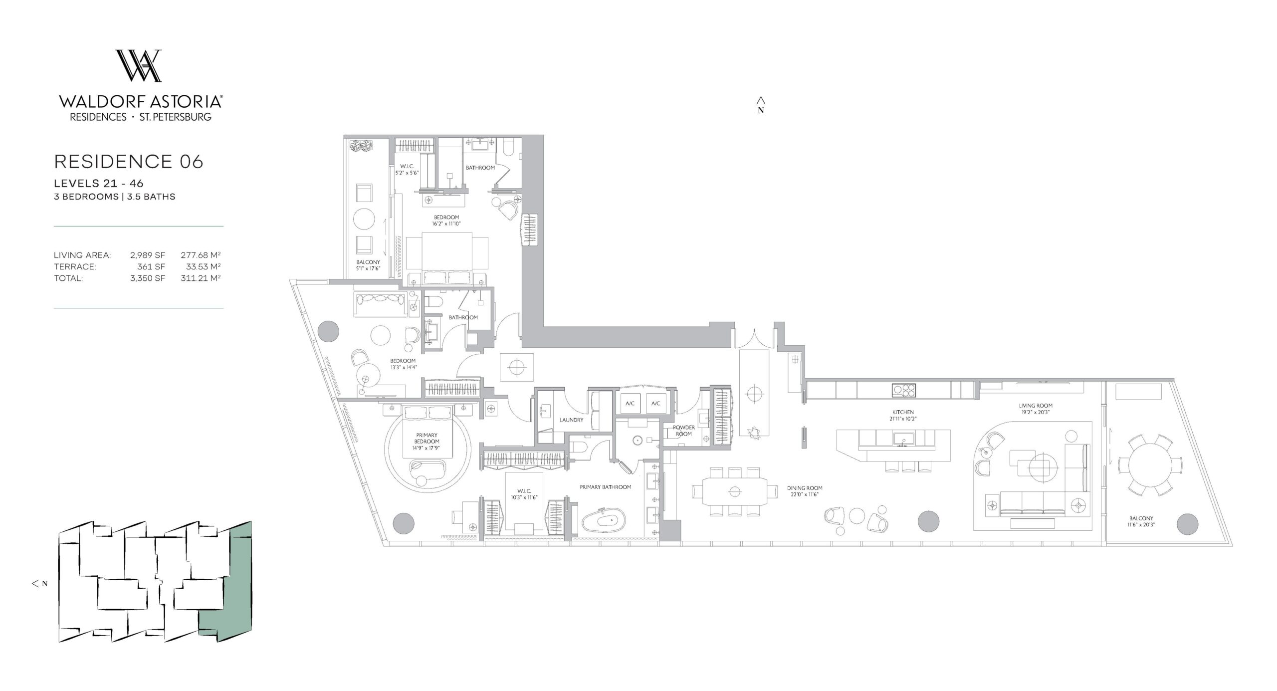 Waldorf Astoria Residences St. Petersburg introduces a refined new standard of bayfront living, rising 50 stories along Tampa Bay at 150 2nd Avenue South. Developed by Property Markets Group and Feldman Equities, the tower will feature just 163 fully finished private residences designed for discerning buyers seeking a permanent luxury address in the heart of downtown. The offering includes two and three bedroom layouts with interior living spaces ranging from approximately 1,943 to 3,408 square feet, complemented by expansive private terraces that capture sweeping views of the bay and city skyline. Rooted in the timeless legacy of the Waldorf Astoria brand, the property blends classic elegance with the relaxed sophistication that defines St. Petersburg’s waterfront lifestyle.Interiors are curated by the acclaimed design firm BAMO and delivered fully finished, offering a seamless move in experience defined by craftsmanship and understated luxury. Each residence features a private entry foyer, floor to ceiling glass, and panoramic vistas that bring the surrounding water and skyline into daily living. Kitchens are custom designed with Italian cabinetry, natural stone countertops and backsplashes, and fully integrated Sub Zero and Wolf appliance packages. Primary bathrooms are conceived as spa inspired retreats with custom Italian vanities, Waterworks fixtures, walk-in showers, freestanding soaking tubs, and private water closets. Additional highlights include custom built out closets, contemporary lighting with dimmers and controls, dedicated laundry rooms with top of the line washers and dryers, and smart home capability supported by high speed internet and Wi Fi.